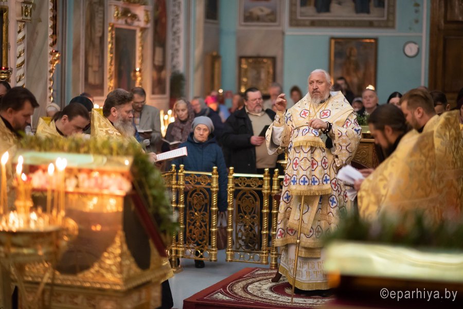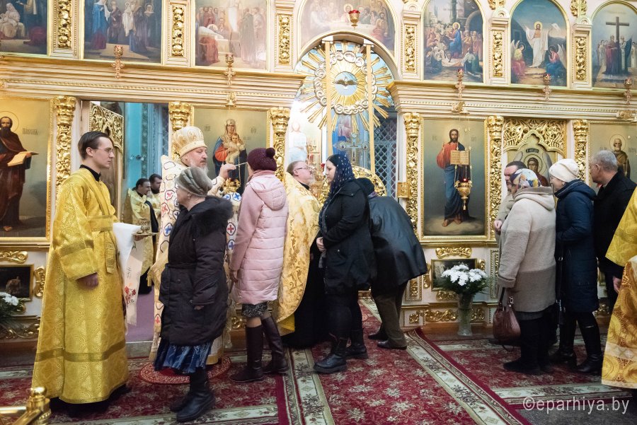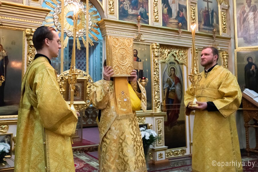 Вечернее богослужение с чтением акафиста на распев в Петро-Павловском кафедральном соборе г.Гомеля 17 ноября 2019г. совершил Высокопреосвященнейший Стефан архиепископ Гомельский и Жлобинский в сослужении духовенства собора. По окончании богослужения Владыка обратился к молящимся со словами Архипастырского назидания. |