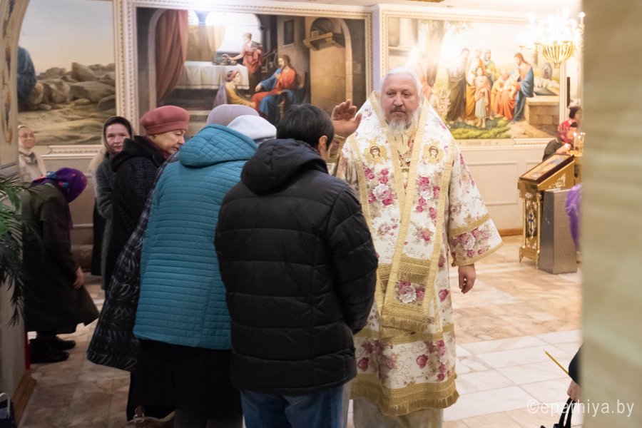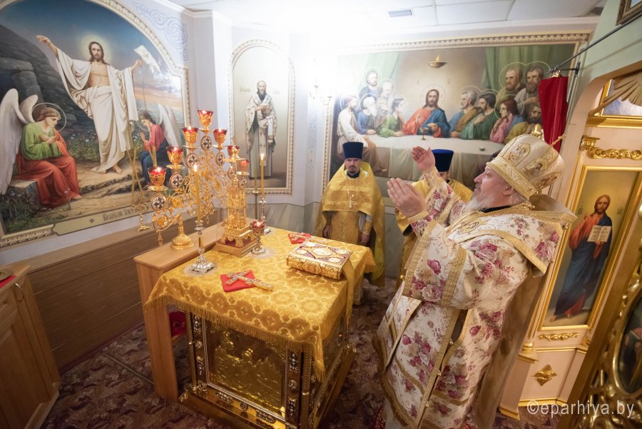 Божественную литургию в криптовом храме Петро-Павловского кафедрального собора г.Гомеля, освященного в честь Святой равноапостольной Марии Магдалины 18 ноября 2019г. в понедельник 23-й седмицы по Пятидесятнице совершил Высокопреосвященнейший Стефан архиепископ Гомельский и Жлобинский в сослужении духовенства собора. По окончании Литургии Владыка Стефан поздравил причастников с принятием Святых Христовых Таин и обратился к молящимся со словами Архипастырского назидания. |