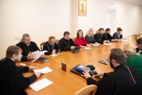 Очередное заседание Координационного совета под председательством секретаря Гомельской епархии протоиерея Георгия Алампиева состоялось в здании Гомельского епархиального управления 22 ноября 2019г. В ходе заседания были заслушаны отчеты председателей отделов, а также обсуждалась подготовка Рождественских мероприятий, и планы работы на будущий год. |
