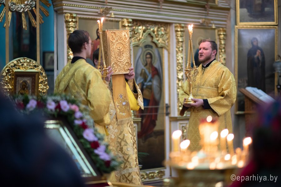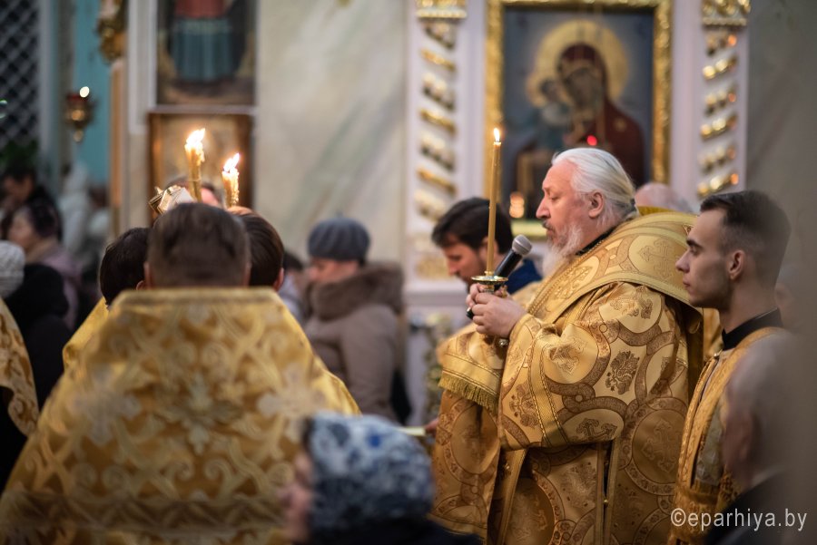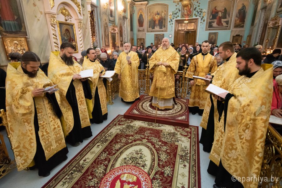 Вечернее богослужение с чтением акафиста на распев в Петро-Павловском кафедральном соборе г.Гомеля 24 ноября 2019г. совершил Высокопреосвященнейший Стефан архиепископ Гомельский и Жлобинский в сослужении духовенства собора. По окончании богослужения Владыка обратился к молящимся со словами Архипастырского назидания |