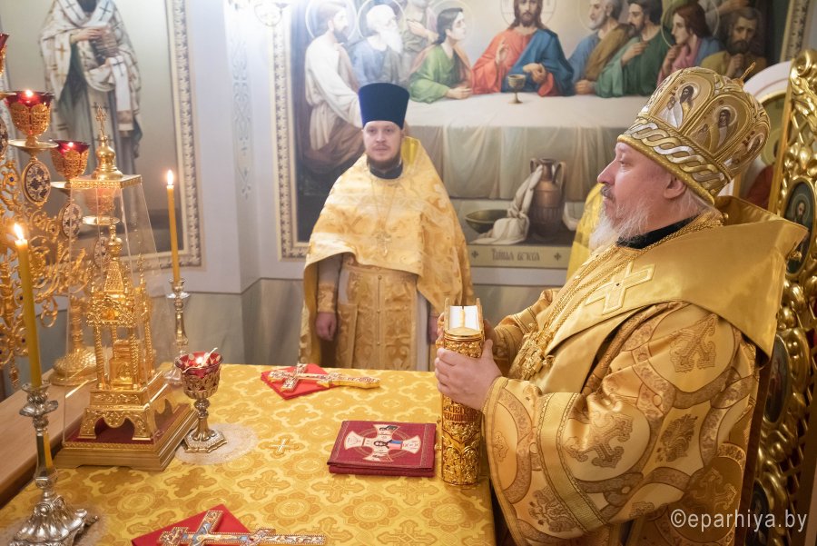 Божественную литургию в криптовом храме Петро-Павловского кафедрального собора г.Гомеля, освященного в честь Святой равноапостольной Марии Магдалины 25 ноября 2019г. в понедельник 24-й седмицы по Пятидесятнице совершил Высокопреосвященнейший Стефан архиепископ Гомельский и Жлобинский в сослужении духовенства собора. По окончании Литургии Владыка Стефан поздравил причастников с принятием Святых Христовых Таин и обратился к молящимся со словами Архипастырского назидания. |