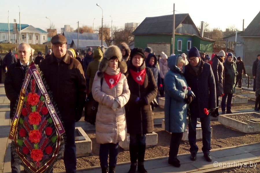 В мае 2019 года в нашей стране стартовала международная акция памяти «Во славу общей Победы» по забору земли с мест захоронений воинов освободителей. Цель акции – вспомнить тех людей, которые отдали свои жизни за наше мирное небо, и напомнить молодому поколению о том, какой ценой завоевана эта Победа. 25 ноября на Новобелицком братском кладбище прошел митинг, посвященный 75-летию со дня освобождения Беларуси от немецко-фашистских захватчиков и 76- летию со дня освобождения г. Гомеля. В мероприятии приняли участие руководство Новобелицкого района г. Гомеля, ветераны – участники Великой Отечественной войны, представители районных общественных организаций, трудовая и педагогическая общественность, школьники. Окропить святой водой землю, собранную с братской могилы, был приглашен настоятель прихода храма св. блгв. кн. Александра Невского в г. Гомеле протоиерей Владимир Силенко. Капсула с землей будет помещена в крипту Храма-Памятника в честь Всех Святых в Минске для вечной молитвенной памяти. Участники митинга почтили память героев, павших в боях, минутой молчания и возложили цветы к могилам воинов. Материал предоставлен приходом храма св. блгв. кн. Александра Невского в г. Гомеле |