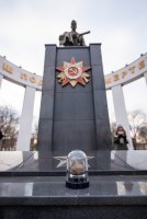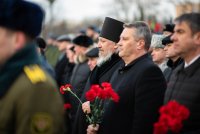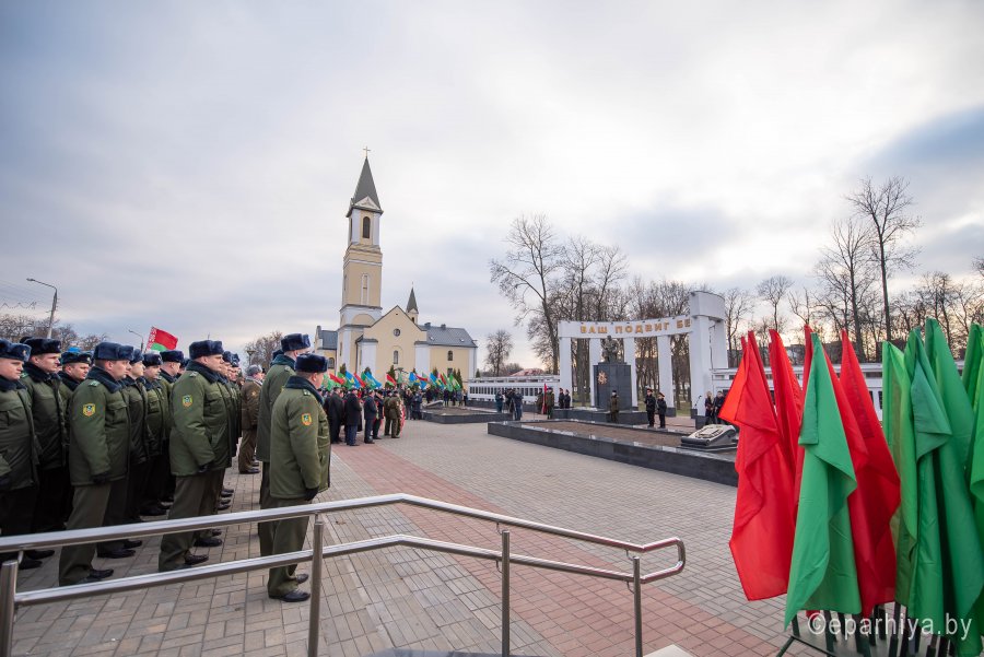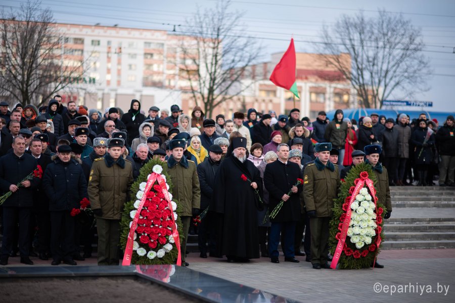 Высокопреосвященнейший Стефан, архиепископ Гомельский и Жлобинский 25 ноября 2019г. принял участие в торжественном митинге посвященном 76-й годовщине освобождения Гомеля от немецко-фашистских захватчиков. В мероприятии приняли участие руководство области и города, ветераны Великой Отечественной Войны, военнослужащие, представители трудовых коллективов, общественных организация и учебных заведений. В рамках республиканской патриотической акции «Во славу общей победы», во время торжественного митинга была запечатана капсула с землей с мест воинских захоронений. В дальнейшем она будет помещена в крипту Храма-Памятника в честь Всех Святых в Минске для вечной молитвенной памяти. И спустя 76 лет в сердцах благодарных потомков живет память о величии подвига их дедов и прадедов, которые отдали все ради победы. В завершении митинга присутствующие возложили венки и цветы к мемориальному комплексу на Аллее Героев. |