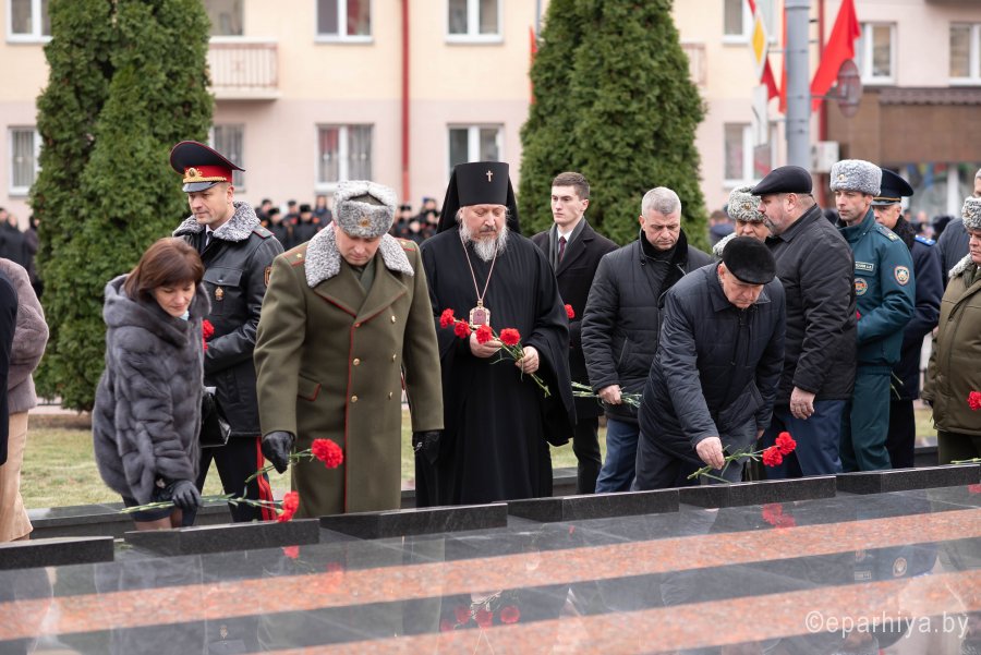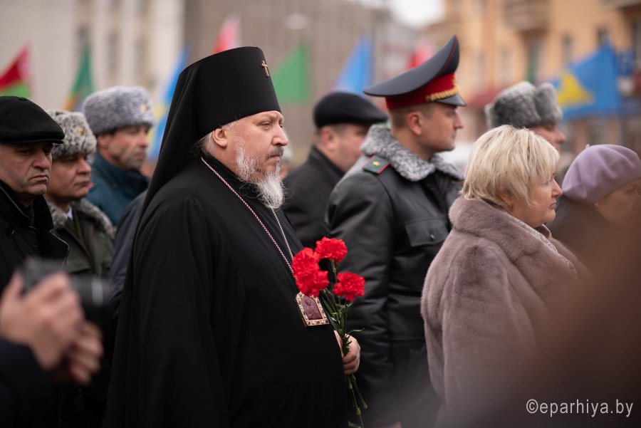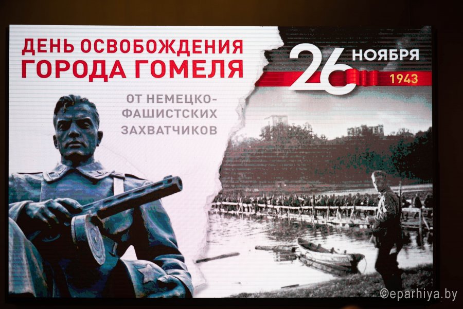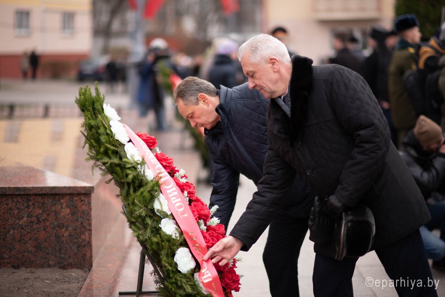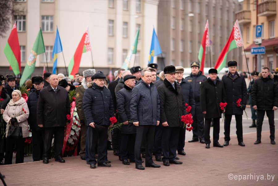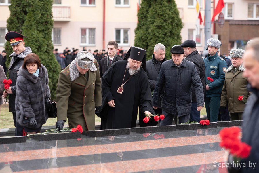 26 ноября 2019г. Высокопреосвященнейший Стефан, архиепископ Гомельский и Жлобинский принял участие в торжественном митинге, посвященном 76-й годовщине освобождения Гомеля от немецко-фашистских захватчиков. В торжественном митинге также принимали участие руководство области и города, ветераны Великой Отечественной войны, в подполье и партизанских отрядах ковавшие победу, представители предприятий и общественных организаций. Высокопреосвященный Стефан возложил цветы к монументу в память о погибших защитниках отечества. Светлую память героев, освободивших Гомель, горожане почтили минутой молчания. По окончании митинга в Общественно-культурном центре состоялся праздничный концерт. |