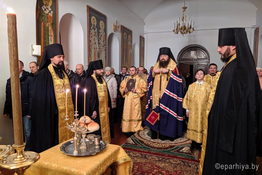 Субботним вечером 24-ой седмицы по Пятидесятнице епископ Светлогорский Амвросий совершил всенощное бдение с благословением хлебов и елеопомазанием в храме святителя Николая Чудотворца монастырского комплекса. Братия обители в священном сане сослужила викарному архиерею. Пресс-служба Никольского монастыря |