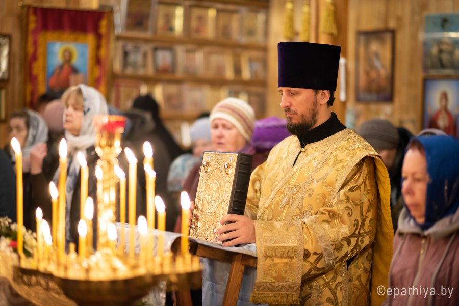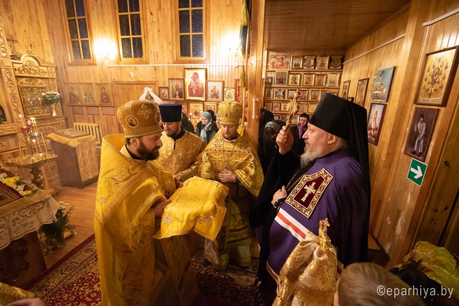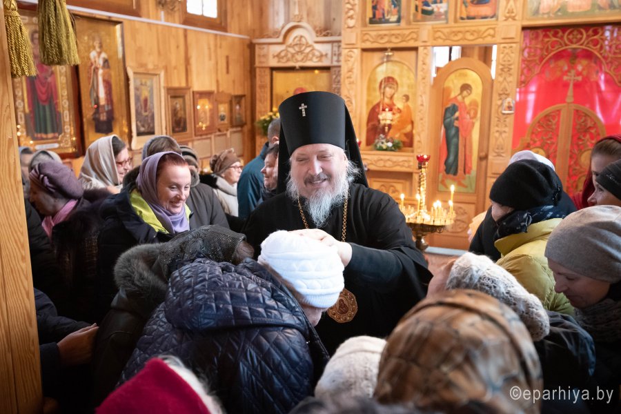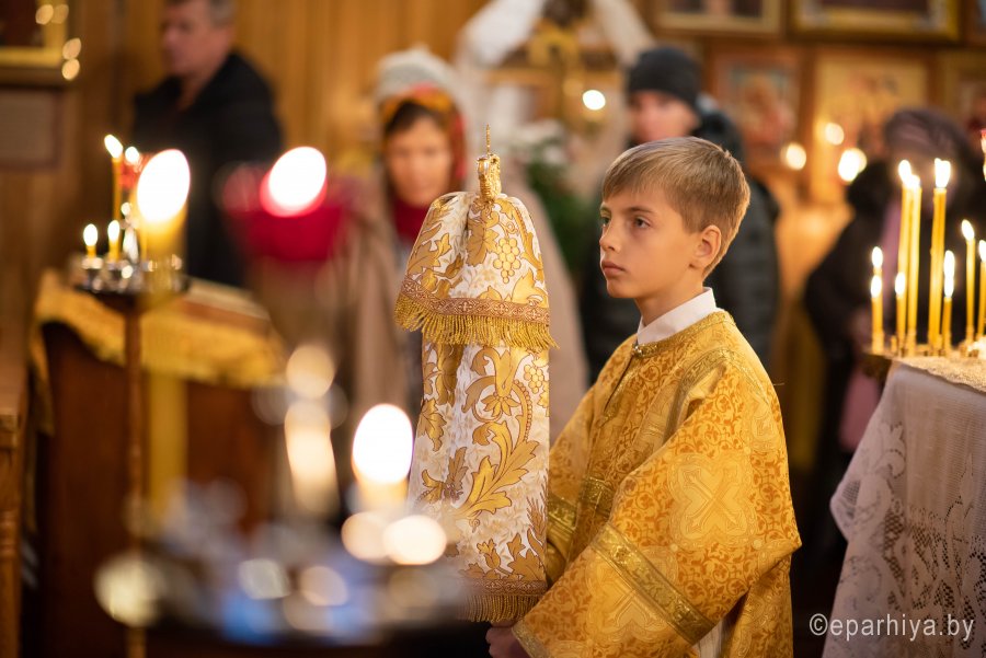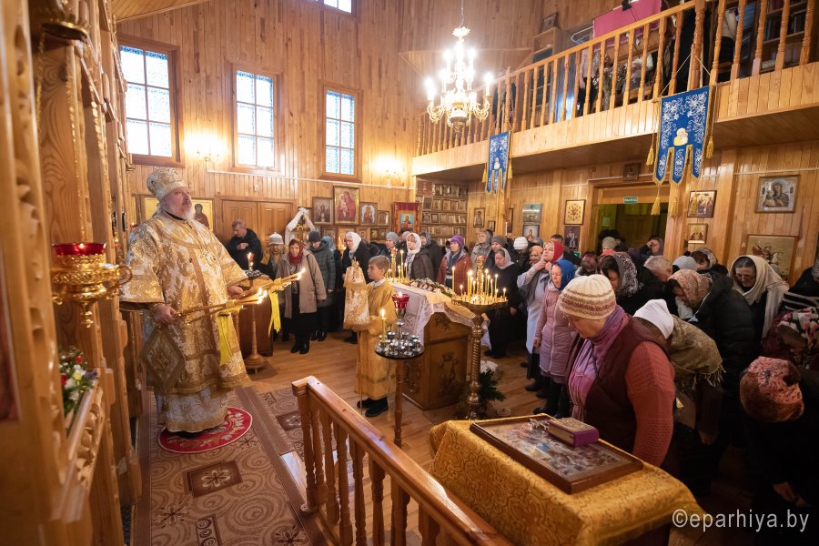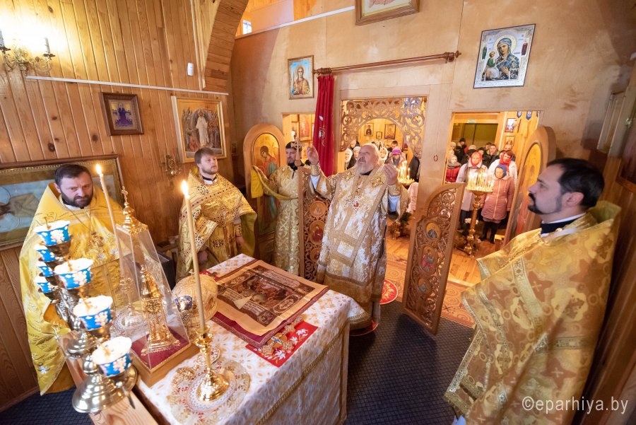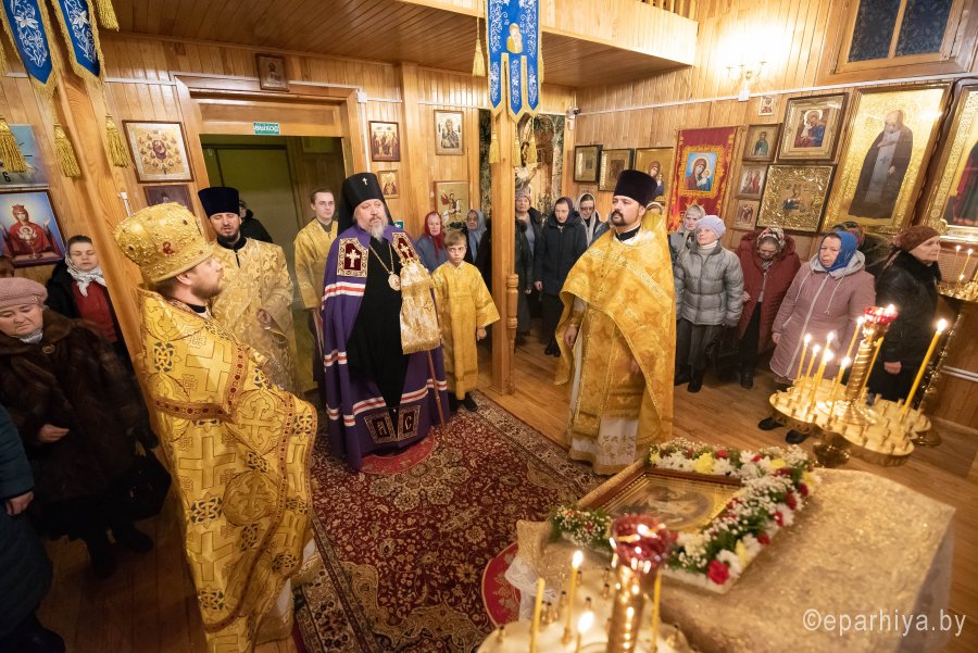 Божественную литургию в Неделю 24-ю по Пятидесятнице в приходе храма Тихвинской иконы Божией Матери п. Ченки 1 декабря 2019г. совершил Высокопреосвященнейший Стефан, архиепископ Гомельский и Жлобинский. Высокопреосвященнейшему сослужили: секретарь Гомельской епархии протоиерей Георгий Алампиев, благочинный Гомельского районного округа протоиерей Артемий Кривицкий, настоятель прихода протоиерей Иоанн Лендел и духовенство епархии. По окончании богослужения Владыка Стефан поздравил причастников с принятием Святых Христовых Таин, обратился к молящимся со словами Архипастырского назидания и на молитвенную память раздал всем присутствующим иконки. |