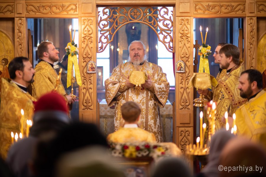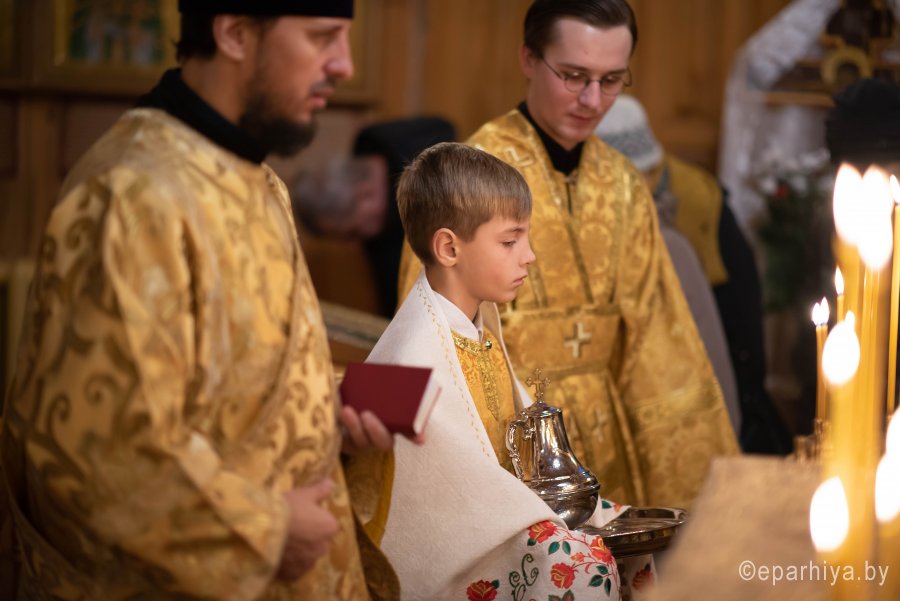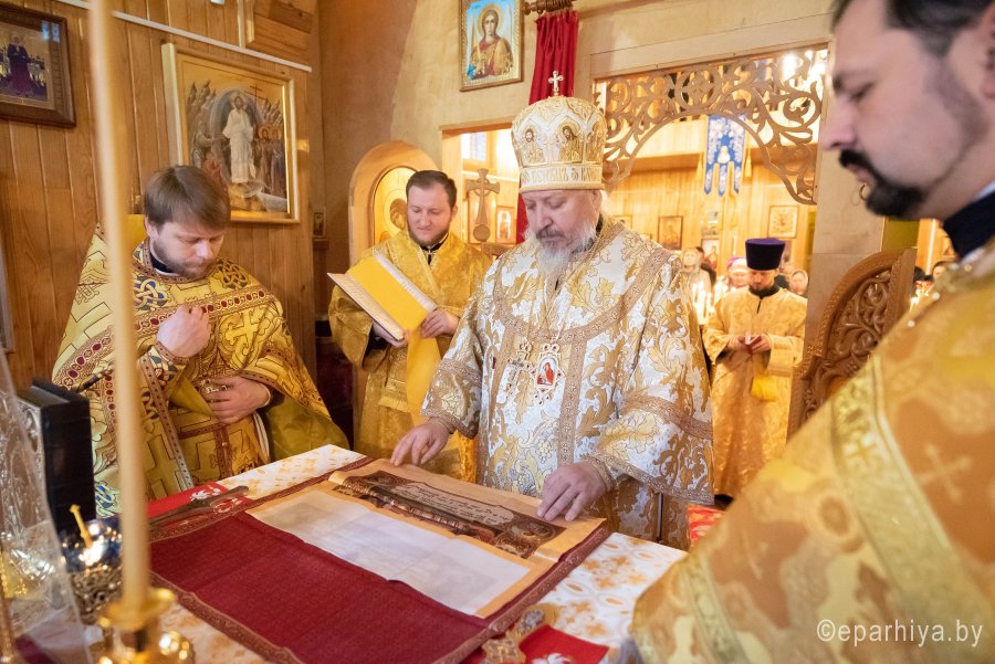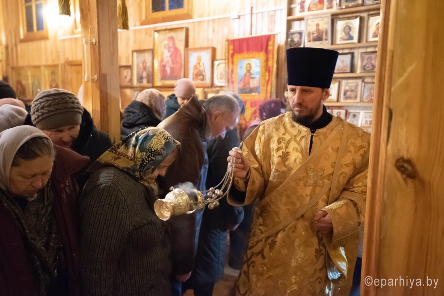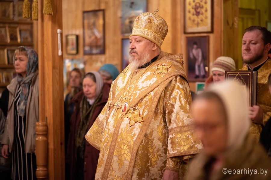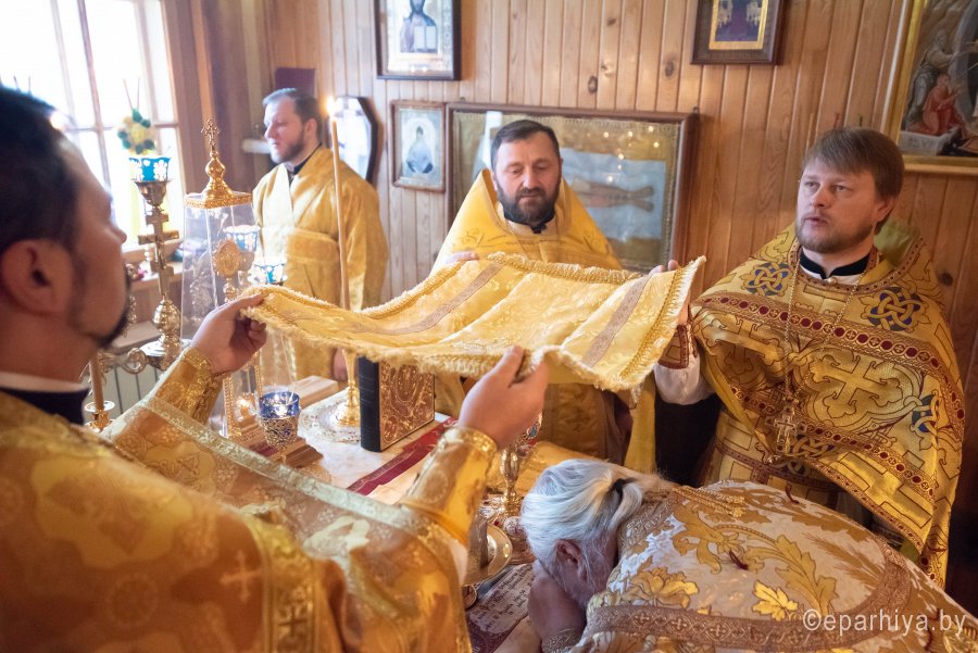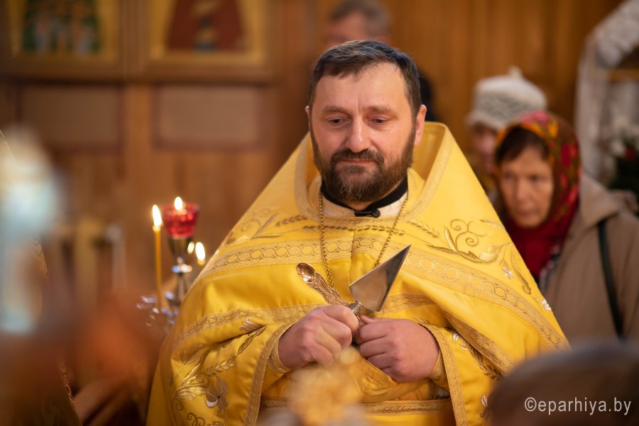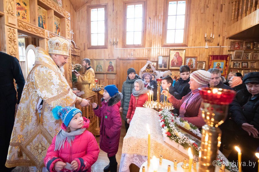 Божественную литургию в Неделю 24-ю по Пятидесятнице в приходе храма Тихвинской иконы Божией Матери п. Ченки 1 декабря 2019г. совершил Высокопреосвященнейший Стефан, архиепископ Гомельский и Жлобинский. Высокопреосвященнейшему сослужили: секретарь Гомельской епархии протоиерей Георгий Алампиев, благочинный Гомельского районного округа протоиерей Артемий Кривицкий, настоятель прихода протоиерей Иоанн Лендел и духовенство епархии. По окончании богослужения Владыка Стефан поздравил причастников с принятием Святых Христовых Таин, обратился к молящимся со словами Архипастырского назидания и на молитвенную память раздал всем присутствующим иконки. |