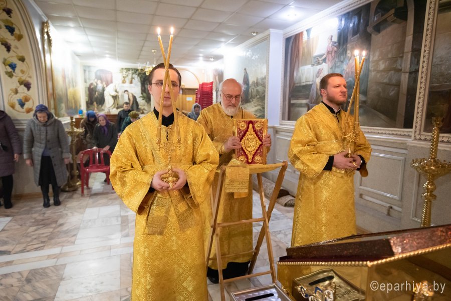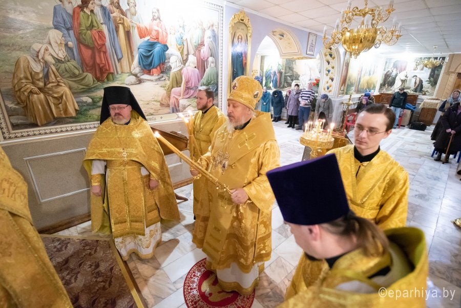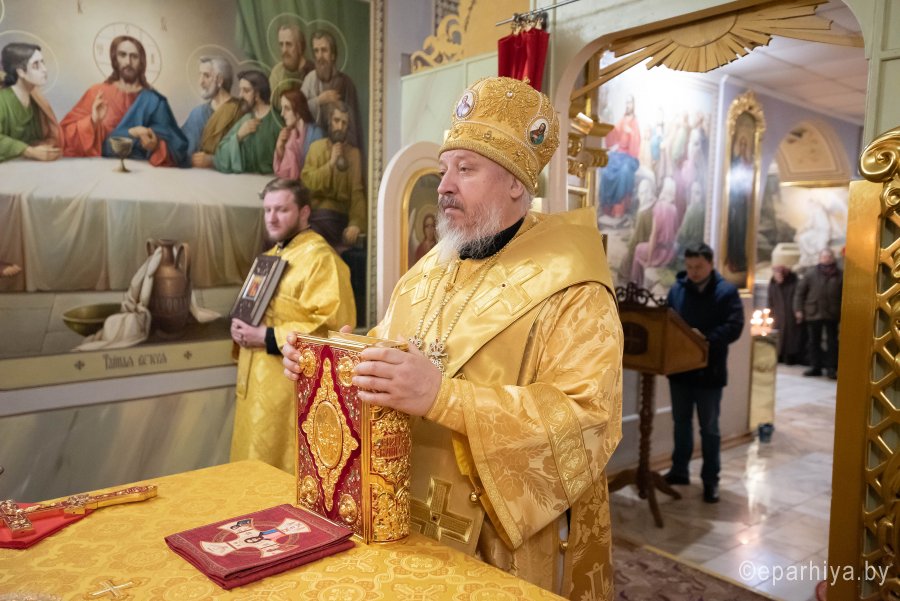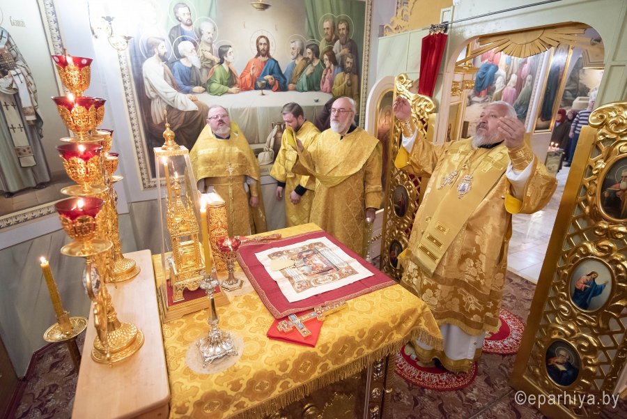 Божественную литургию в криптовом храме Петро-Павловского кафедрального собора г.Гомеля, освященного в честь Святой равноапостольной Марии Магдалины 2 декабря 2019г. в понедельник 25-й седмицы по Пятидесятнице совершил Высокопреосвященнейший Стефан архиепископ Гомельский и Жлобинский в сослужении духовенства собора. По окончании Литургии Владыка Стефан поздравил причастников с принятием Святых Христовых Таин и обратился к молящимся со словами Архипастырского назидания. |
