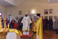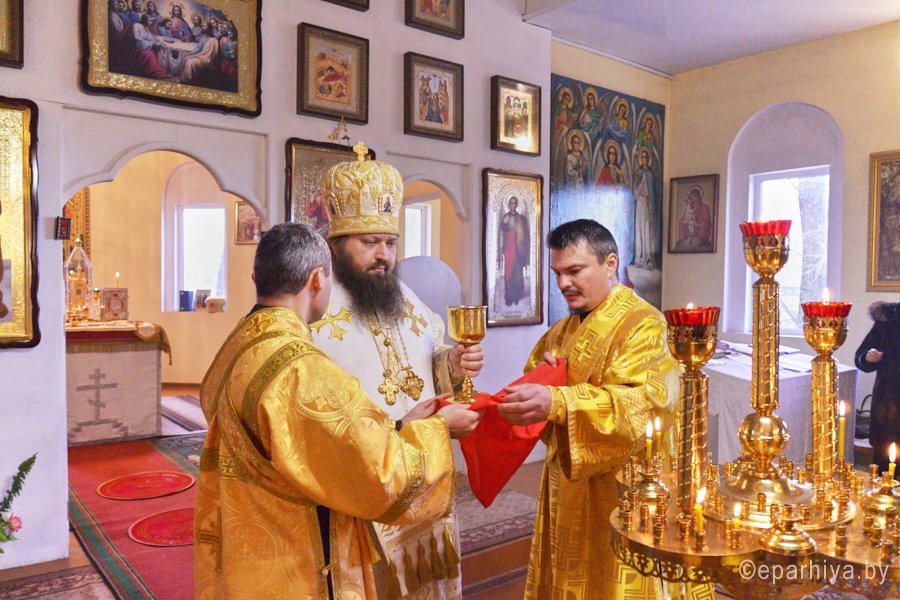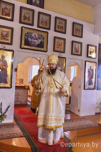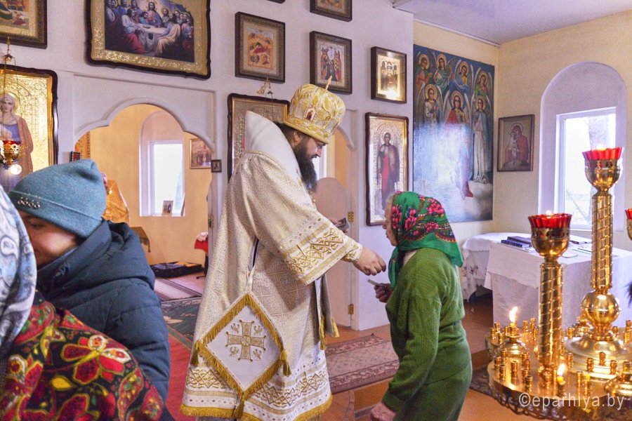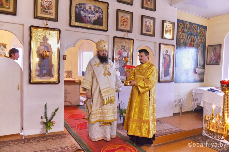 1 декабря, в Неделю 24-ю по Пятидесятнице, епископ Светлогорский Амвросий, викарий Гомельской епархии, совершил Божественную литургию в приходе храма Архистратига Михаила в д. Широкое (Буда-Кошелевский округ). Преосвященнейшему сослужили: благочинный Буда-Кошелевского церковного округа протоиерей Сергий Пешко, настоятель прихода иерей Александр Асадчий и духовенство епархии. По окончании богослужения владыка Амвросий поздравил причастников с принятием Святых Христовых Таин, обратился к молящимся со словами архипастырского назидания и на молитвенную память раздал всем присутствующим иконки. Пресс-служба монастыря |