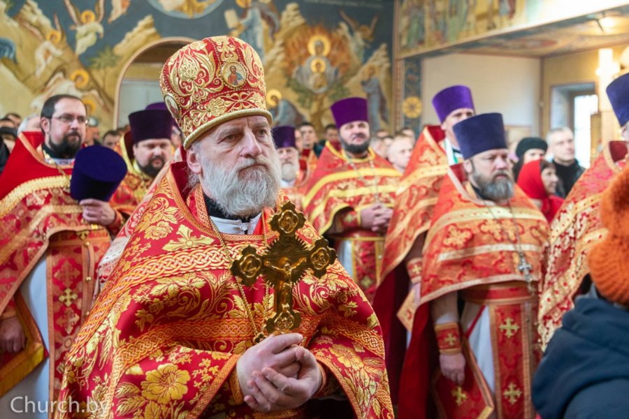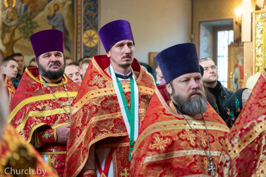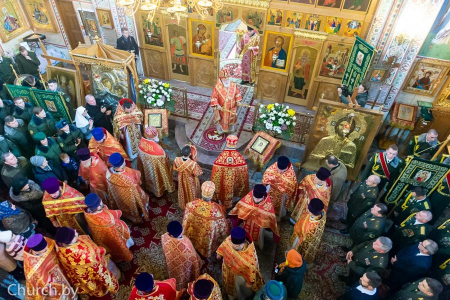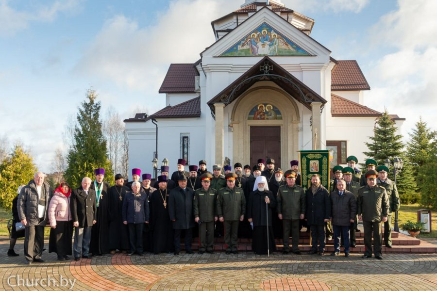 30 ноября 2019 года Патриарший Экзарх всея Беларуси, совершил Божественную литургию в храме в честь Рождества Пресвятой Богородицы деревни Тарасово Минского района. Патриаршему Экзарху сослужили настоятель храма, председатель Синодального отдела Белорусской Православной Церкви по взаимодействию с Вооруженными Силами Республики Беларусь протоиерей Сергий Кузьменков, секретарь Минской епархии протоиерей Андрей Волков, настоятели войсковых храмов и священнослужители, ответственные за духовное окормление пограничных войск. Гомельскую епархию представлял председатель отдела по взаимодействию с Вооруженными Силами и правоохранительными органами протоиерей Игорь Ольшанов. На богослужении присутствовали: председатель Государственного пограничного комитета Республики Беларусь генерал-майор Анатолий Петрович Лаппо, генерал-лейтенант Александр Алексеевич Павловский, генерал-майор Игорь Анатольевич Рачковский, полковник Александр Дмитриевич Боечко, а также курсанты ГУО «Институт пограничной службы Республики Беларусь». Затем митрополит Минский и Заславский Павел и генерал-майор Анатолий Петрович Лаппо вручили специальные нагрудные знаки Архистратига Божия Михаила и грамоты священнослужителям и военнослужащим. Владыка Экзарх освятил хоругвь с образом святого Архистратига Божия Михаила и передал ее личному составу государственного учреждения «Группа материально-технического обеспечения органов пограничной службы» (войсковая часть 1463). Государственному учреждению образования «Институт пограничной службы Республики Беларусь» владыка Павел передал икону святого Архангела Михаила, изготовленную ко дню памяти небесного покровителя пограничных войск. По окончании богослужения митрополит Павел, генерал-майор Анатолий Петрович Лаппо, духовенство и военнослужащие возложили цветы на месте захоронения погибших участников Великой Отечественной войны. Днем ранее состоялся Координационный совет Синодального отдела по рассмотрению годовых отчетов и планов, совместных мероприятий и отдельных мероприятий Экзархата с Вооруженными Силами и другими воинскими формированиями Республики Беларусь. Информация предоставлена отделом по взаимодействию с ВС и ПО по материалам сайта church.by |