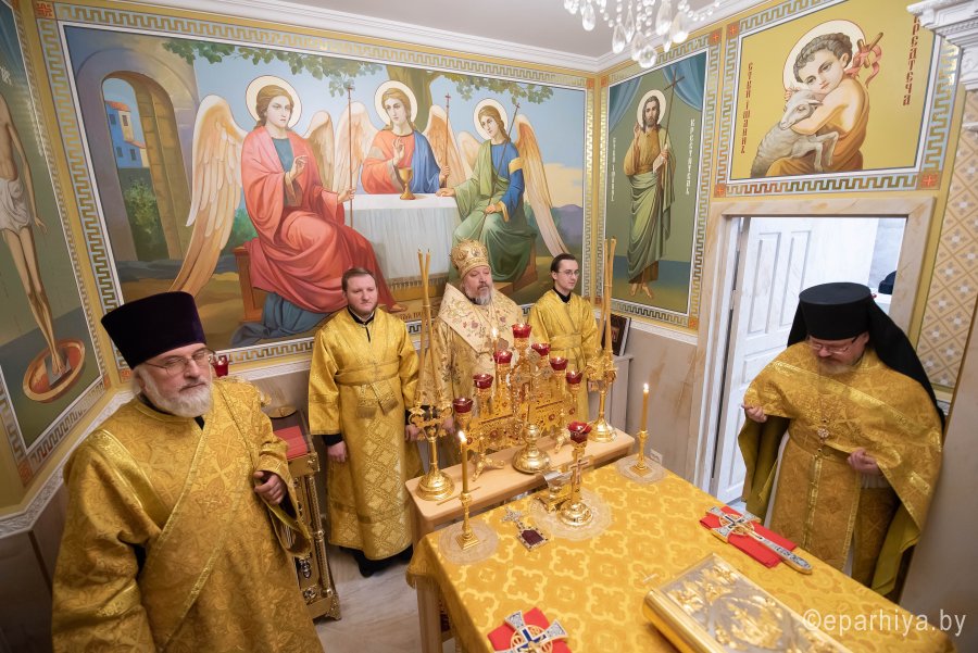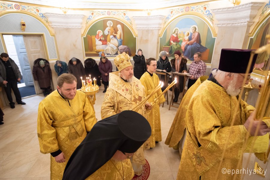 Божественную литургию во вторник 25-й седмицы по Пятидесятнице 3 декабря 2019г. Высокопреосвященнейший Стефан, архиепископ Гомельский и Жлобинский в сослужении духовенства собора совершил в крестильном храме Петро-Павловского кафедрального собора г.Гомеля. По окончании богослужения Владыка Стефан поздравил причастников с принятием Святых Христовых Таин и обратился к молящимся со словами Архипастырского назидания. |