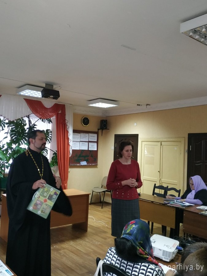 Далее преподаватель воскресной школы прихода храма святого Архангела Михаила в г. Гомеле Инна Владимировна Калицкая сделала презентацию нового методического пособия под редакцией диакона Ильи Кокина «Приходская школа «под ключ». Пособие состоит из 4-х курсов: 1 курс «Основы христианской нравственности» рассчитан на детей 5-7 лет; 2 курс «Библейская история Ветхого Завета» для 8-10 лет; 3 курс «Жизнь и учение Господа Иисуса Христа» для 11-13 лет; 4 курс «Закон Божий» для 14-17 лет. Кроме рабочих тетрадей, методических пособий и учебников пособие входит диск со справочным материалом, где размещены рабочие тетради, интернет ресурсы, сценарии праздников, наглядные пособия, игры и квесты, нормативные документы, библиография.