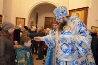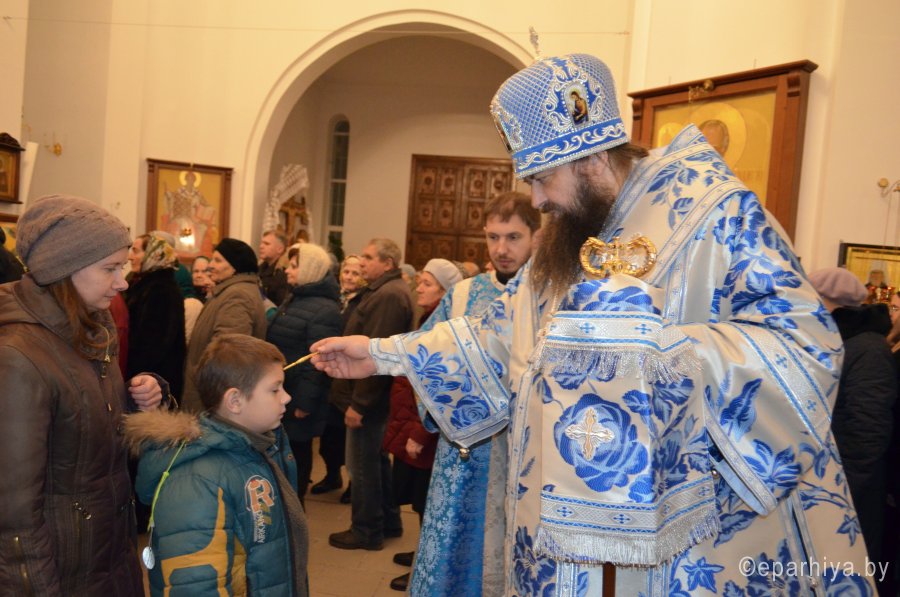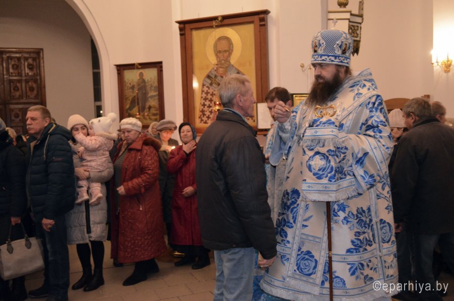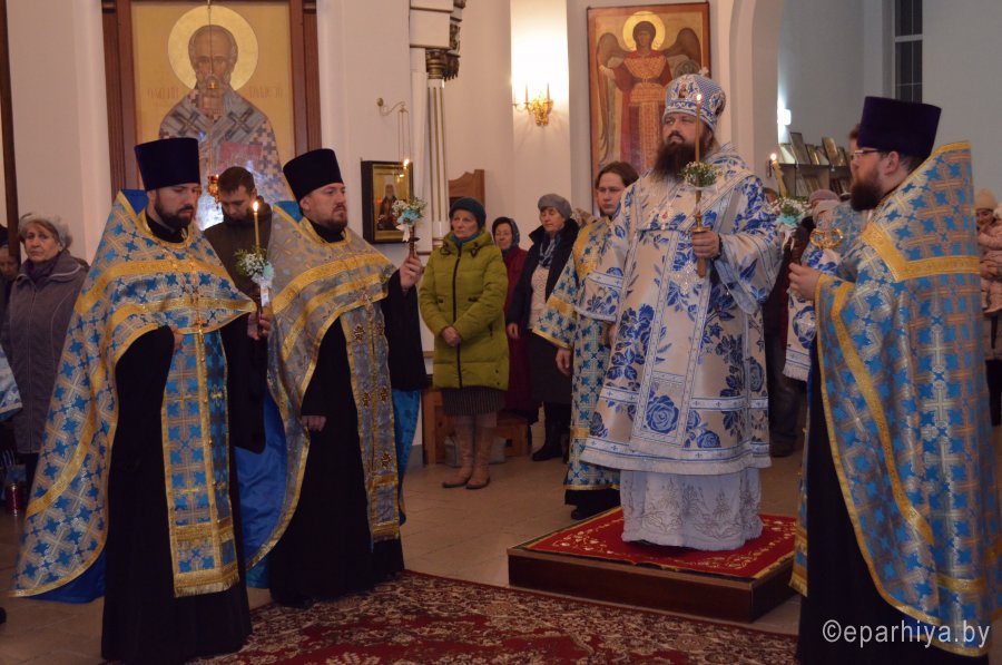 Всенощное бдение в канун праздника Введения во храм Пресвятой Богородицы 3 декабря 2019 г. епископ Светлогорский Амвросий, викарий Гомельской епархии, совершил в храме Преображения Господня в г. Светлогорске. Его Преосвященству сослужили: благочинный Светлогорского округа протоиерей Александр Кисель и духовенство храма. По окончании богослужения Владыка обратился к молящимся со словами Архипастырского назидания. |