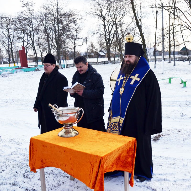 Освящение купола и креста на храм святителя Николая в д. Усохская Буда Добрушского района