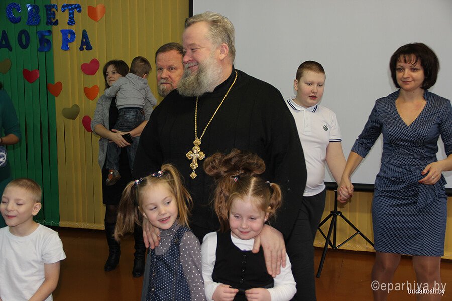 В качестве почетных гостей были приглашены: благочинный Буда-Кошелевского округа, протоиерей Сергий Пешко, а также клирик прихода храма Святителя Николая Чудотворца г. Буда-Кошелево, протоиерей Игорь Сильченко. Для всех приглашенных была показана увлекательная концертная программа, подготовленная воспитанниками центра совместно с педагогами.  Обращаясь к воспитателям центра и родителям, протоиерей Сергий выразил огромную благодарность за тот подвиг, который они ежедневно совершают и пожелал всем бодрости духа, помощи Божией в этом нелегком труде воспитания, а также с молитвой преодолевать все трудности.