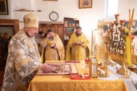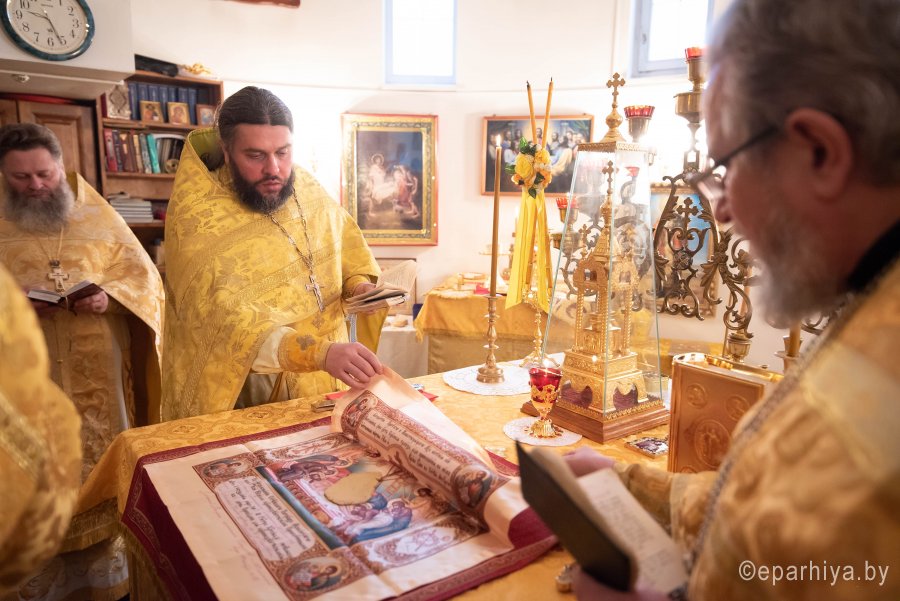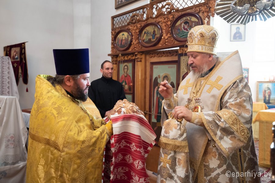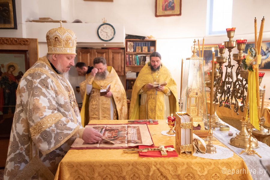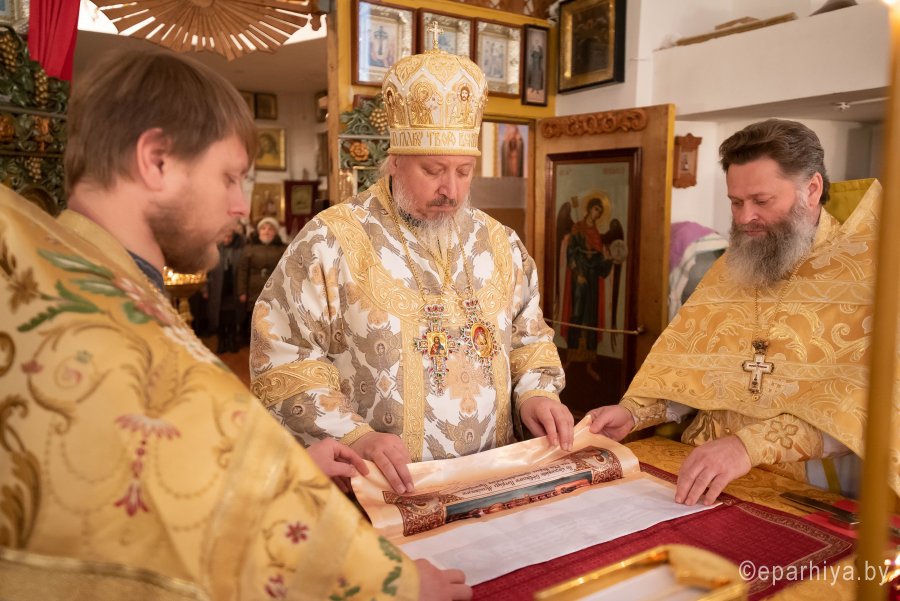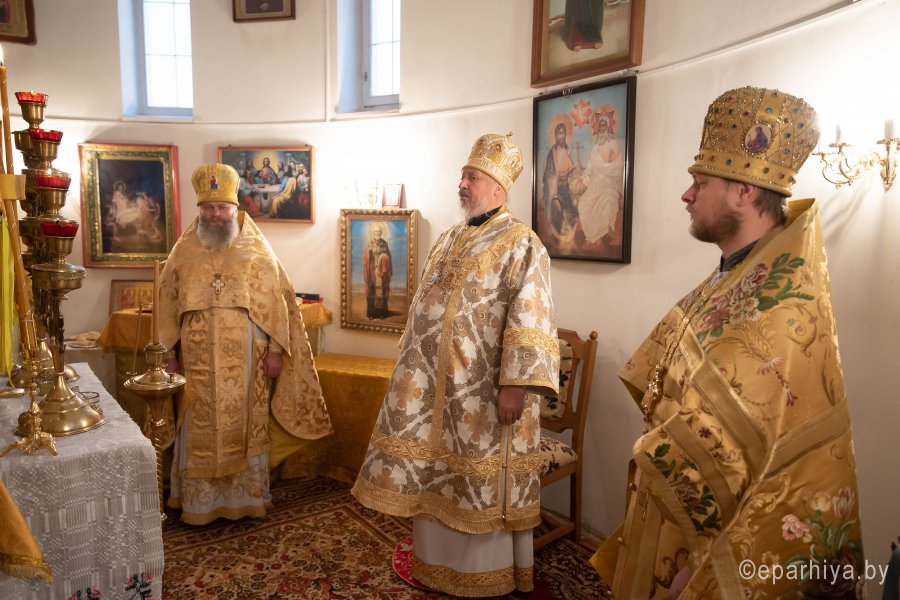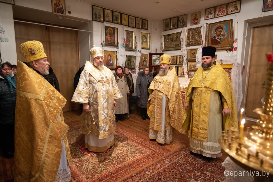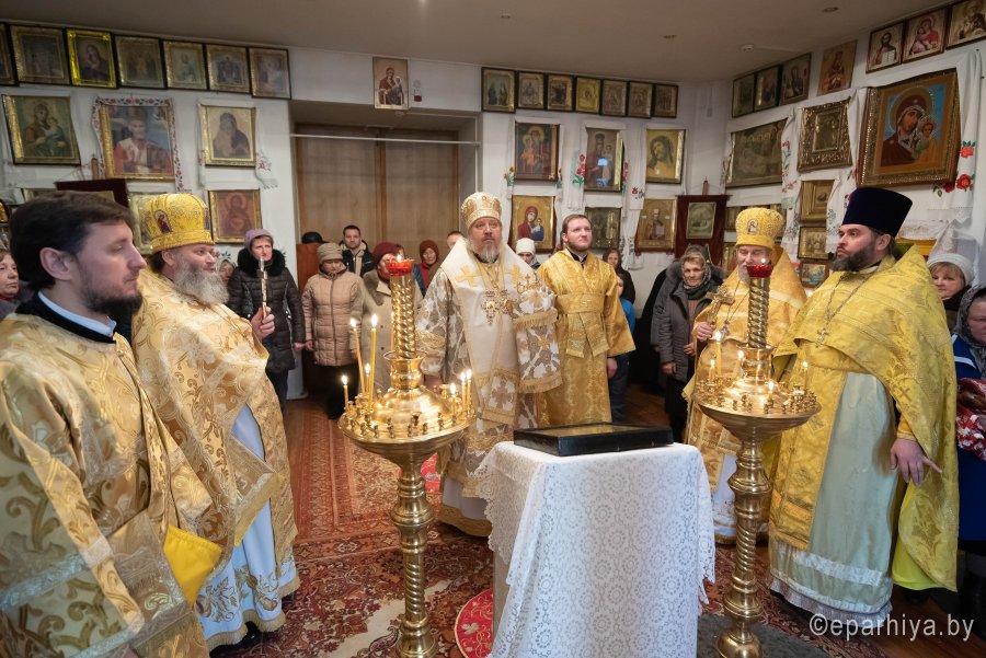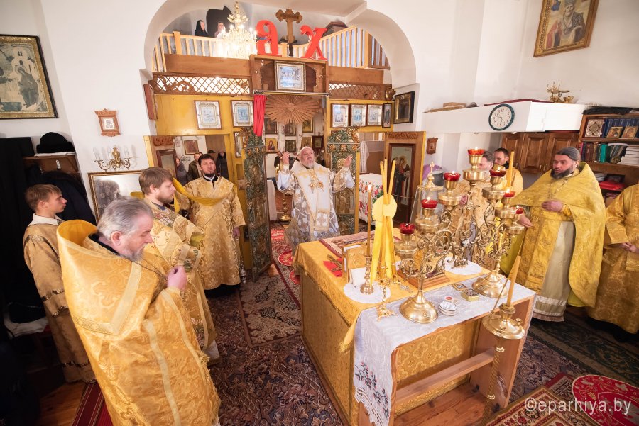 Божественную литургию в отдание праздника Введения во храм Пресвятой Богородицы 8 декабря 2019г. в храме свт. Николая Чудотворца д. Даниловичи совершил Высокопреосвященный Стефан архиепископ Гомельский и Жлобинский. Высокопреосвященнейшему сослужили: секретарь Гомельской епархии протоиерей Георгий Алампиев, благочинный Чечерского округа протоиерей Геннадий Хаткевич, настоятель прихода протоиерей Андрей Булацкий и духовенство епархии. По окончании богослужения Владыка поздравил причастников с принятием Святых Христовых Таин, обратился к молящимся со словами Архипастырского назидания и на память о совместной молитве вручил всем присутствующим иконки. |