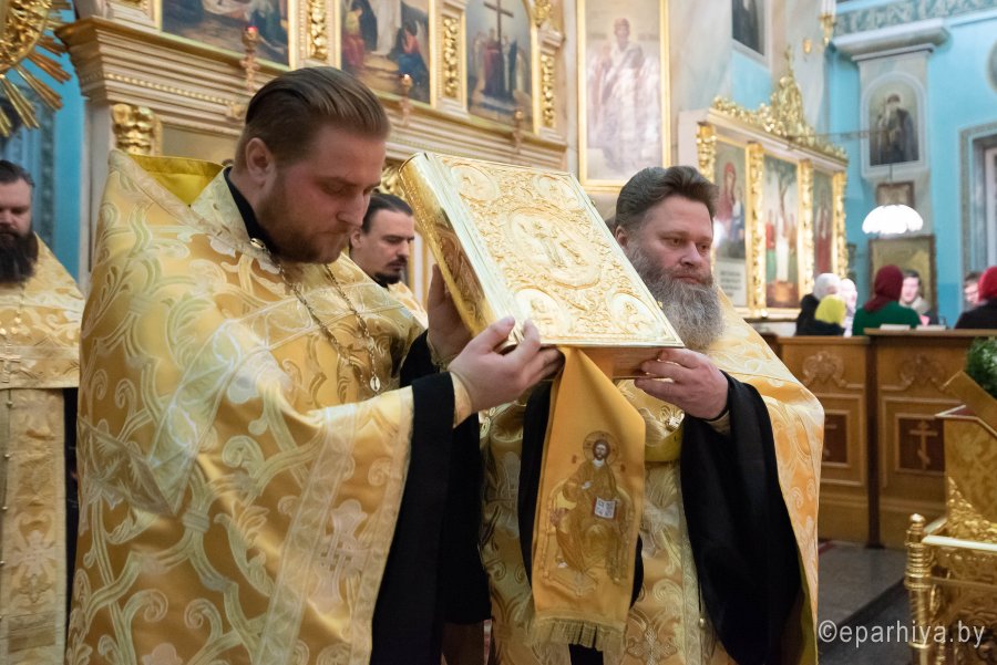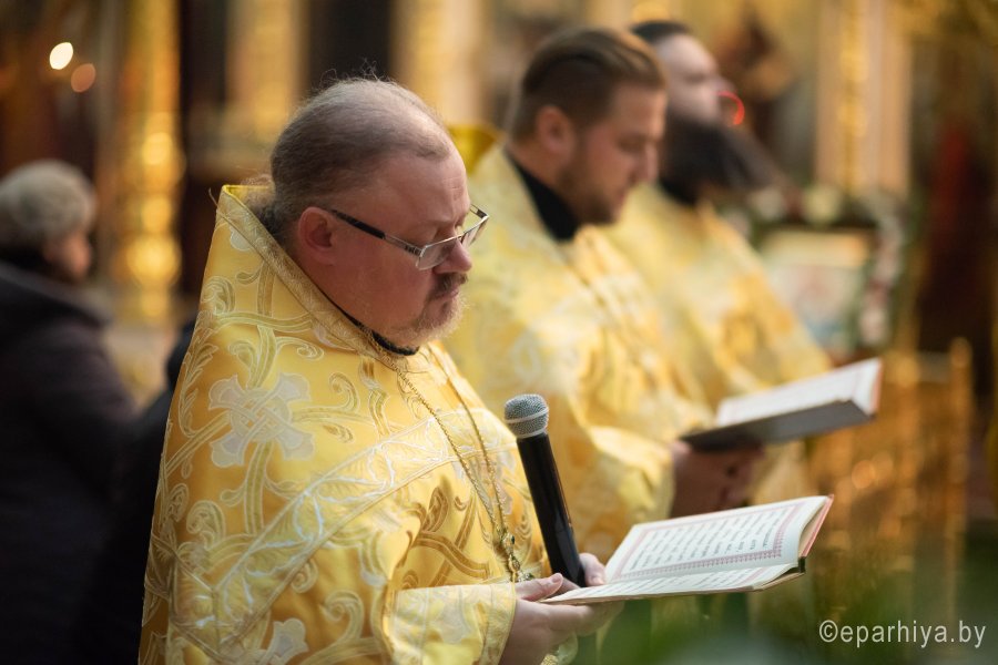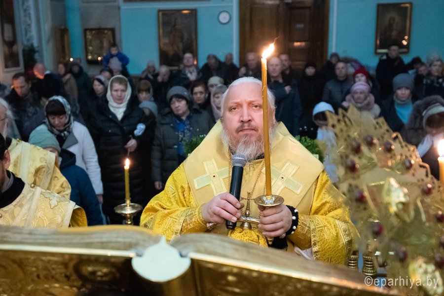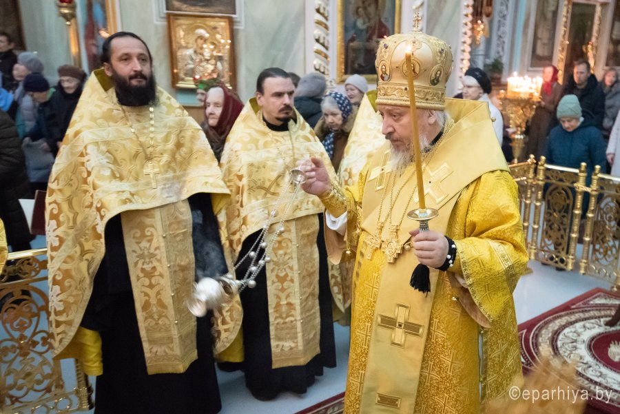 Вечернее богослужение с чтением акафиста на распев в Петро-Павловском кафедральном соборе г.Гомеля 8 декабря 2019г. совершил Высокопреосвященнейший Стефан архиепископ Гомельский и Жлобинский в сослужении духовенства собора. По окончании богослужения Владыка обратился к молящимся со словами Архипастырского назидания |