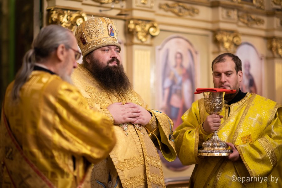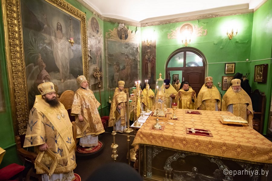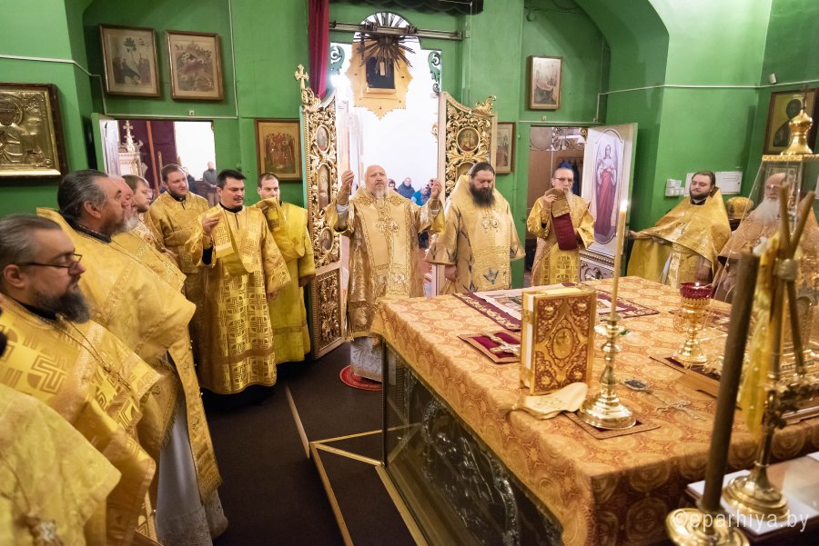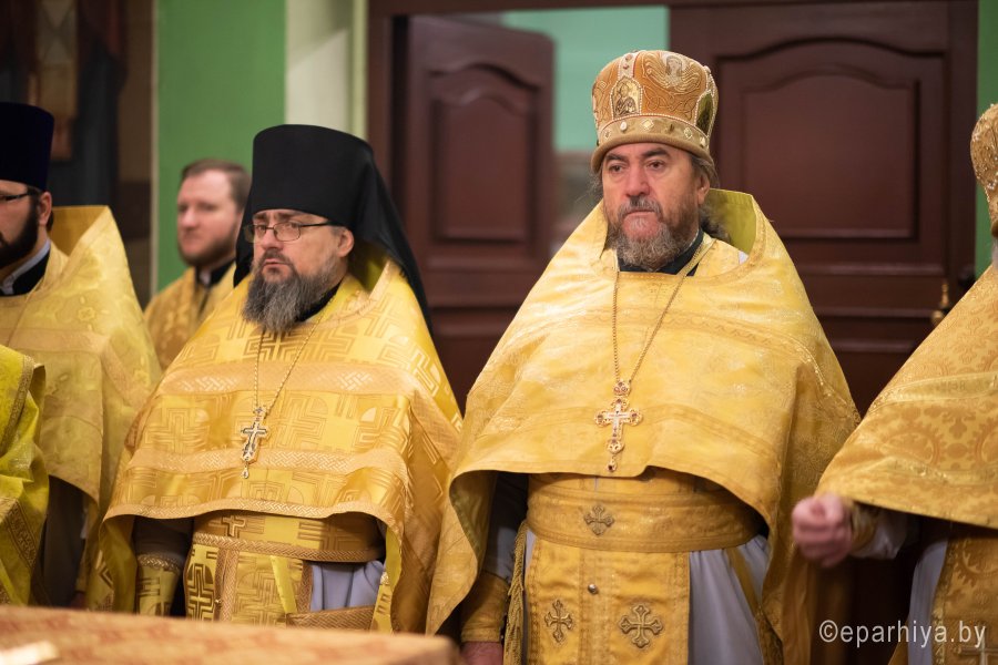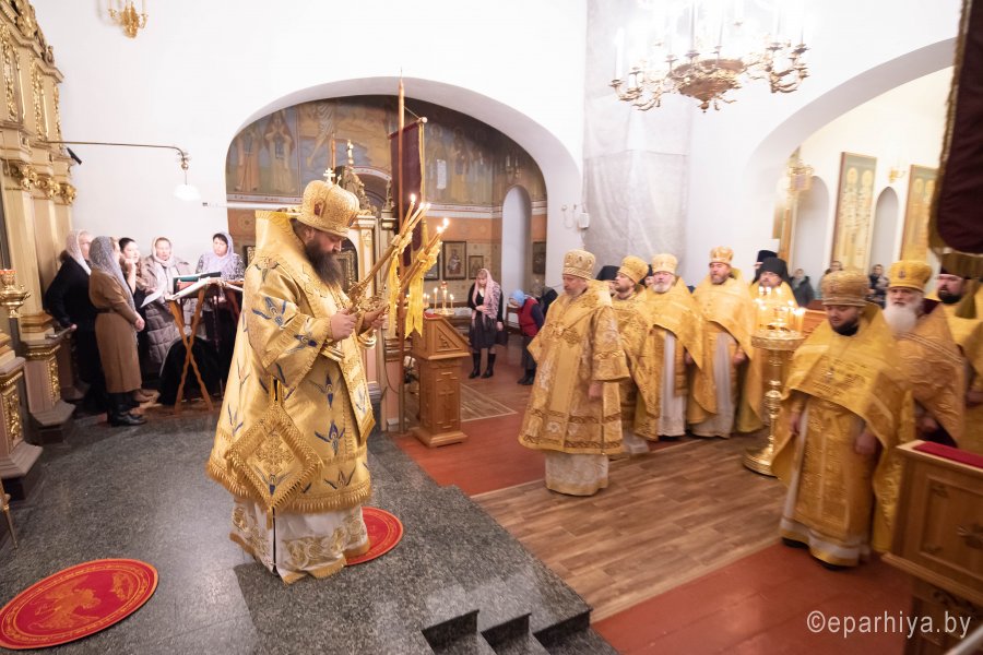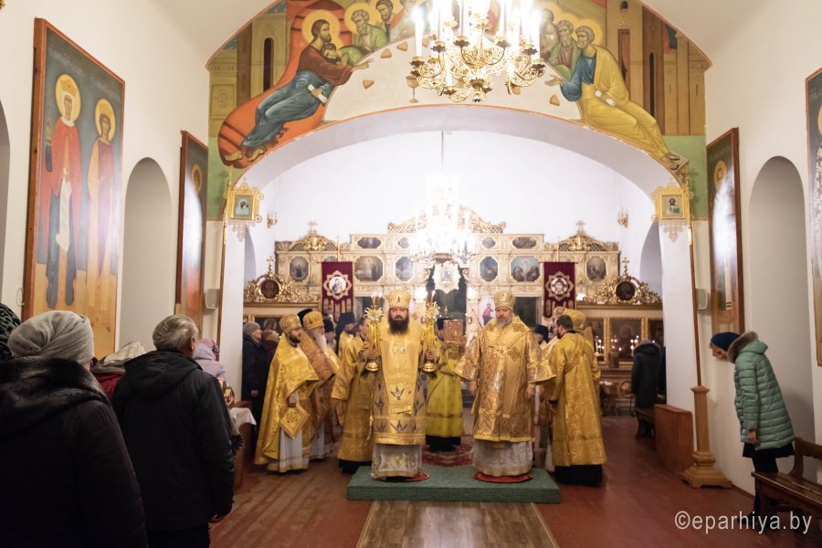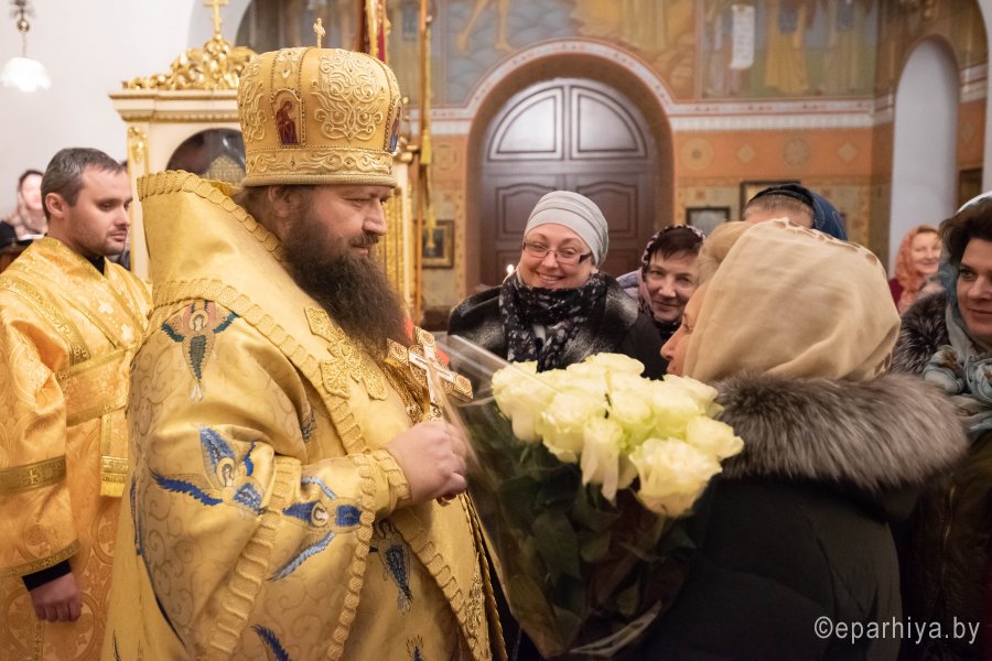 Божественную литургию в понедельник 26-й седмицы по Пятидесятнице в Никольском мужском монастыре города Гомеля 9 декабря 2019 г. совершили Высокопреосвященнейший Стефан архиепископ Гомельский и Жлобинский и епископ Светлогорский Амвросий, викарий Гомельской епархии. Архипастырям сослужили: секретарь Гомельской епархии протоиерей Георгий Алампиев, благочинный Гомельского городского округа протоиерей Игорь Ольшанов, председатели епархиальных отделов, настоятели приходов, братия монастыря в священном сане и духовенство епархии. По окончании богослужения Владыка Стефан поздравил епископа Амвросия с Днем рождения, пожелав крепости сил духовных и телесных на дальнейшем пути служения святой Церкви Христовой. По завершении богослужения Владыка Стефан поздравил причастников с принятием Святых Христовых Таин и обратился к молящимся со словами архипастырского назидания. |