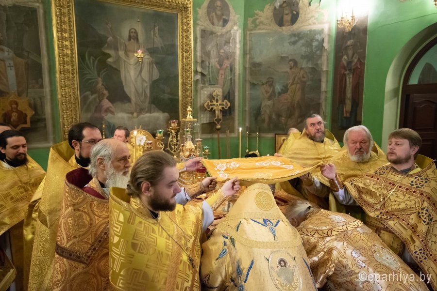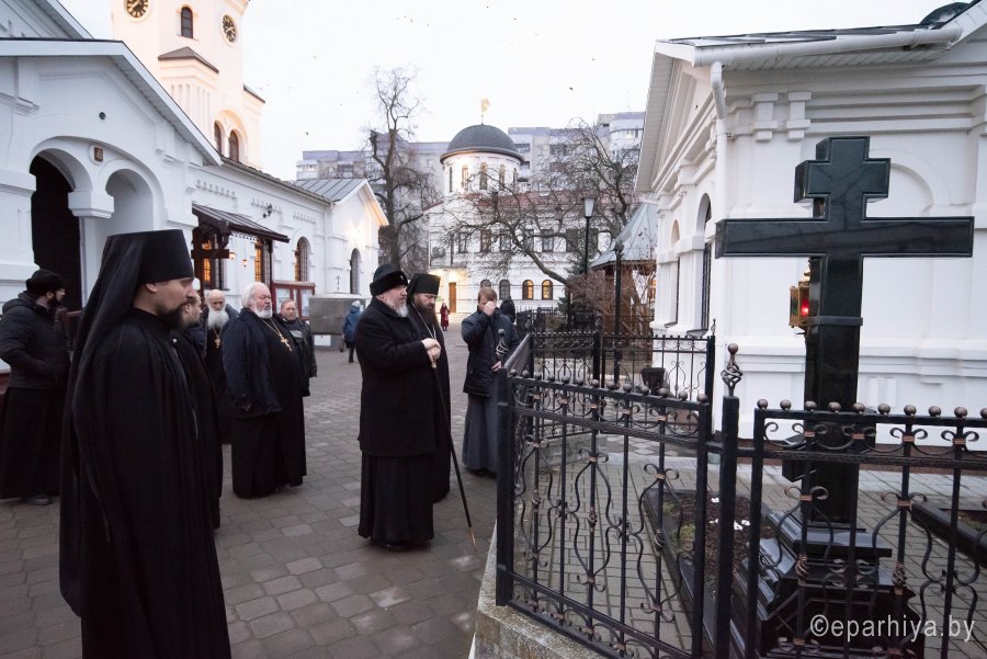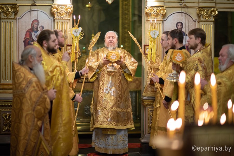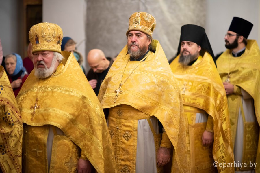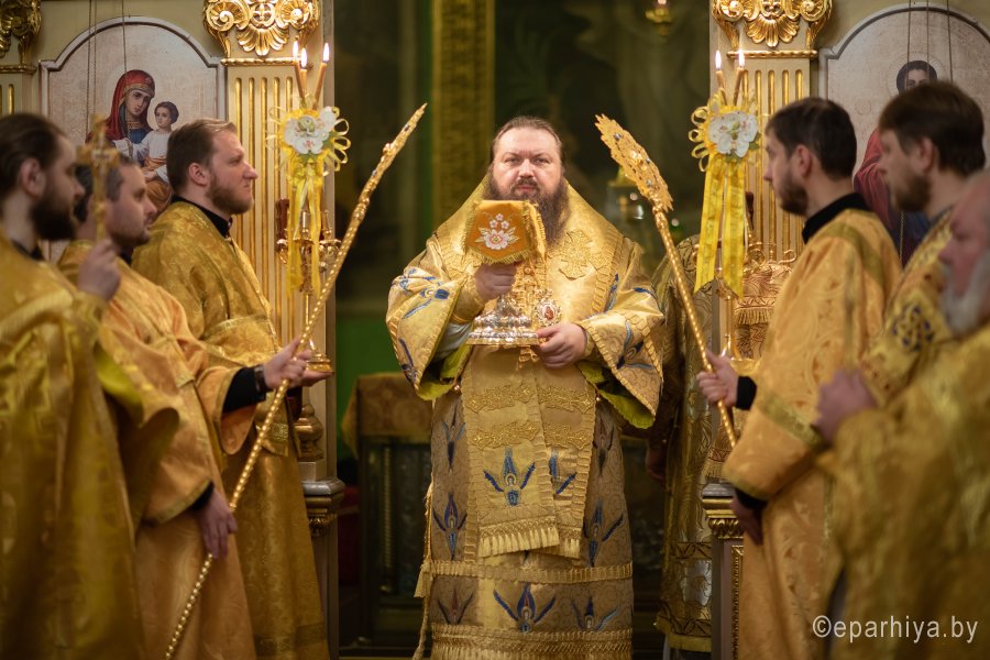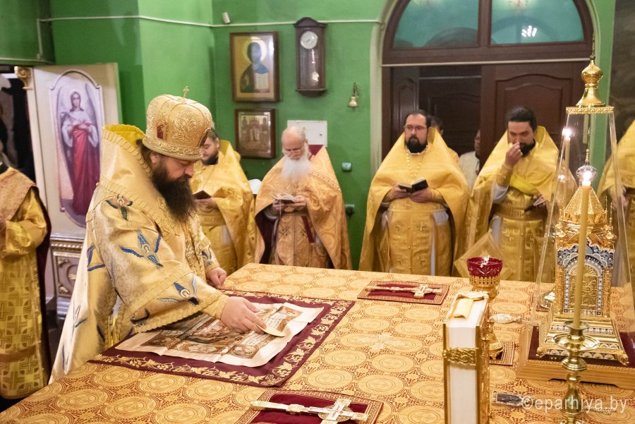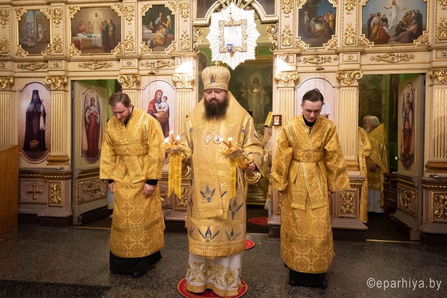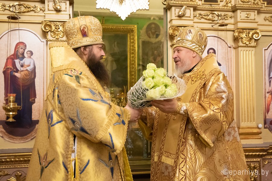 Божественную литургию в понедельник 26-й седмицы по Пятидесятнице в Никольском мужском монастыре города Гомеля 9 декабря 2019 г. совершили Высокопреосвященнейший Стефан архиепископ Гомельский и Жлобинский и епископ Светлогорский Амвросий, викарий Гомельской епархии. Архипастырям сослужили: секретарь Гомельской епархии протоиерей Георгий Алампиев, благочинный Гомельского городского округа протоиерей Игорь Ольшанов, председатели епархиальных отделов, настоятели приходов, братия монастыря в священном сане и духовенство епархии. По окончании богослужения Владыка Стефан поздравил епископа Амвросия с Днем рождения, пожелав крепости сил духовных и телесных на дальнейшем пути служения святой Церкви Христовой. По завершении богослужения Владыка Стефан поздравил причастников с принятием Святых Христовых Таин и обратился к молящимся со словами архипастырского назидания. |