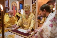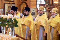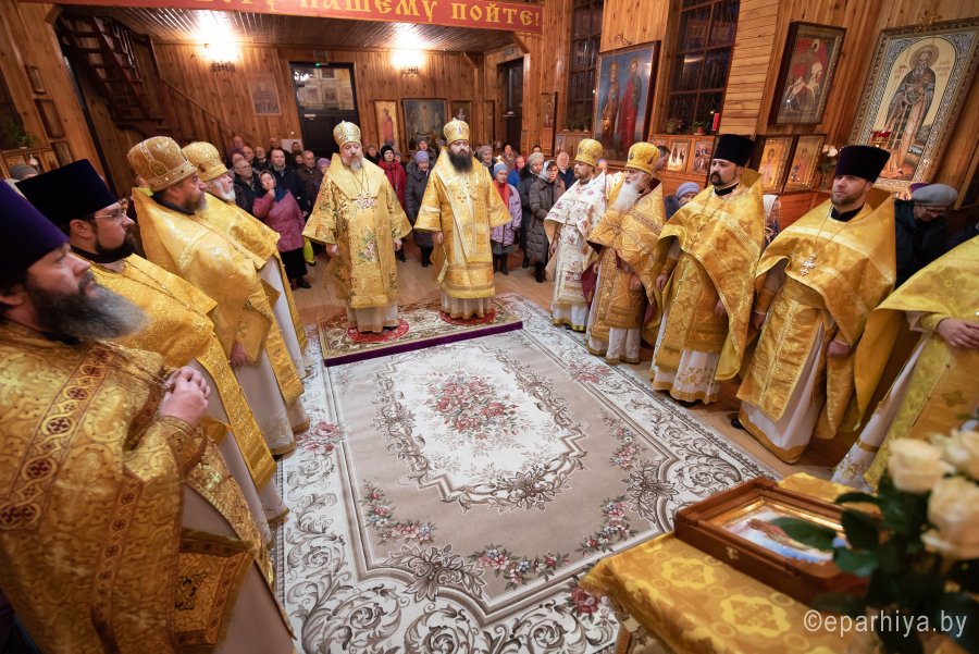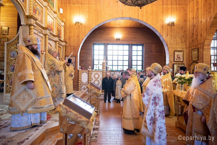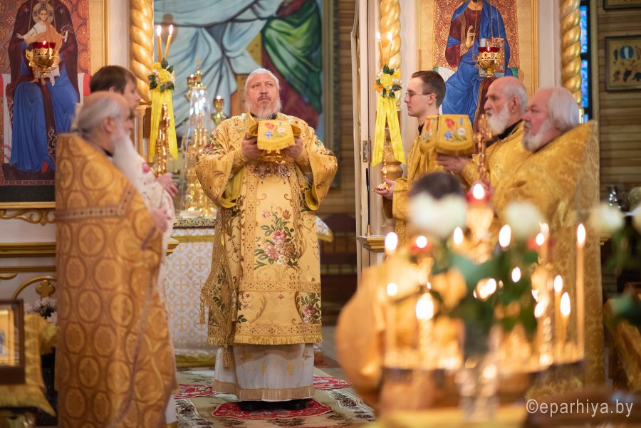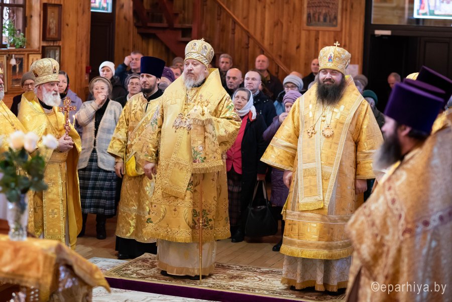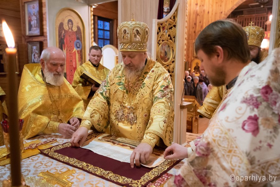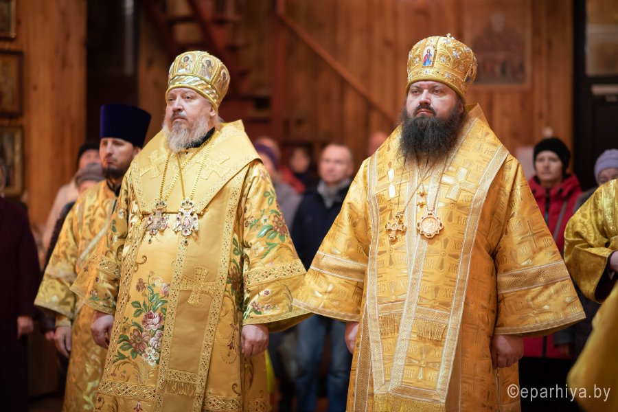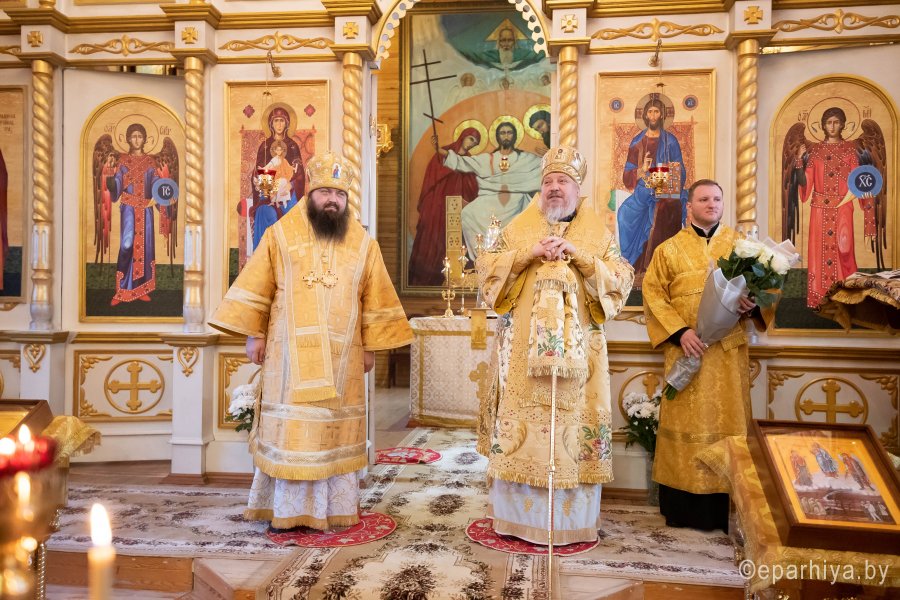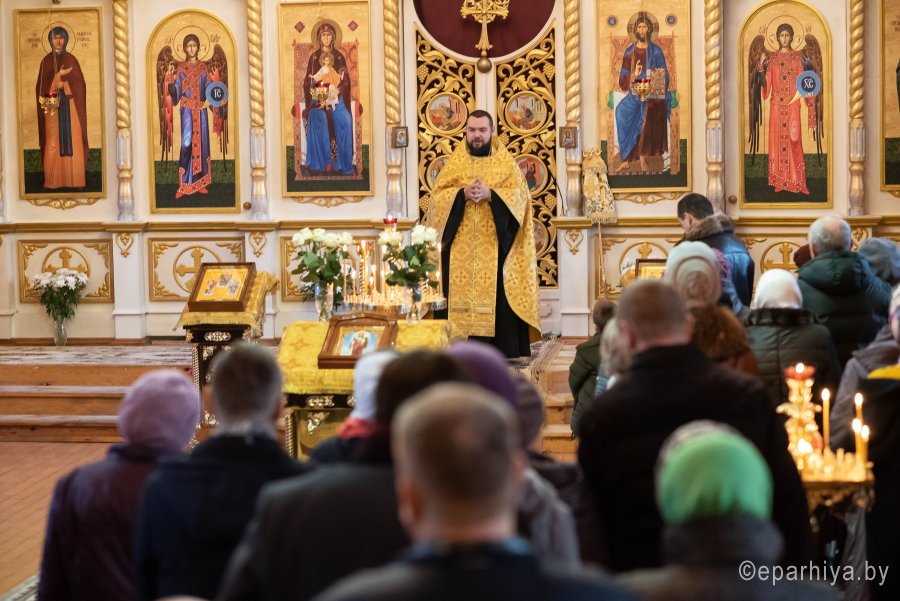 Божественную литургию в среду 26-й седмицы по Пятидесятнице в приходе храма Архангела Михаила г. Гомеля 11 декабря 2019 г. совершили Высокопреосвященнейший Стефан архиепископ Гомельский и Жлобинский и епископ Светлогорский Амвросий, викарий Гомельской епархии. Архипастырям сослужили: секретарь Гомельской епархии протоиерей Георгий Алампиев, духовник епархии протоирей Стефан Гладыщук, благочинный Гомельского городского округа, настоятель прихода протоиерей Игорь Ольшанов, благочинный Гомельского районного округа протоиерей Артемий Кривицкий, председатели епархиальных отделов, настоятели приходов и духовенство епархии. По окончании богослужения Владыка Стефан поздравил протоиерея Игоря Ольшанова с Днем рождения, пожелав крепости сил духовных и телесных на дальнейшем пути служения святой Матери Церкви. По завершении богослужения Владыка Стефан поздравил причастников с принятием Святых Христовых Таин и обратился к молящимся со словами архипастырского назидания. |
