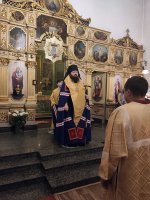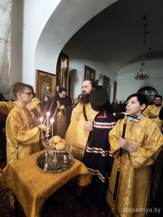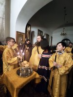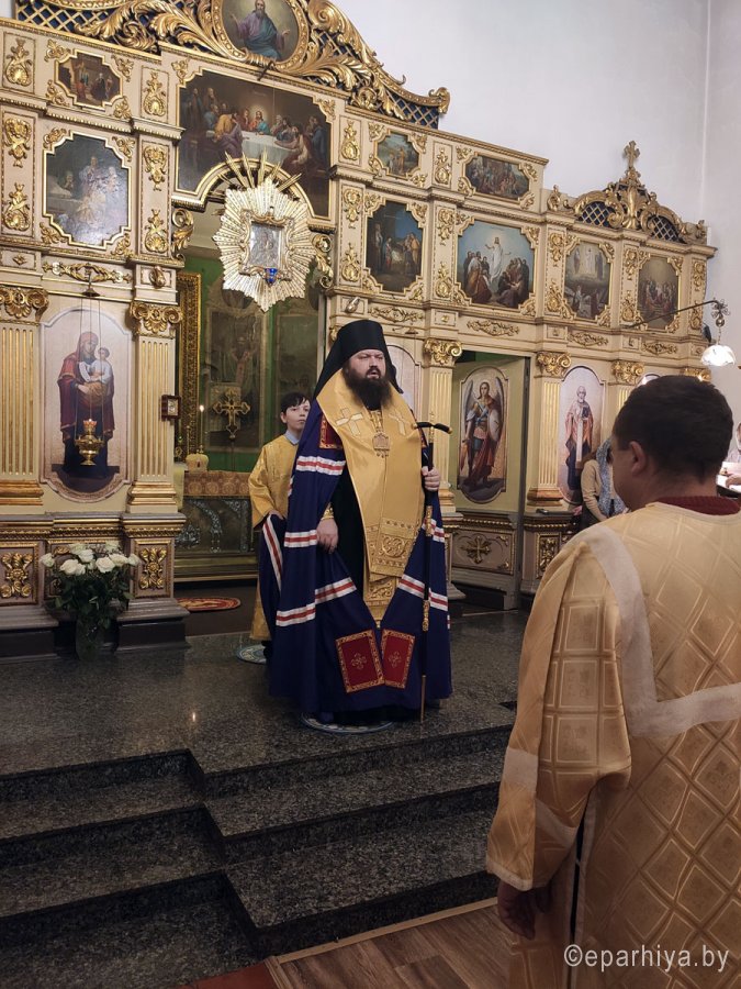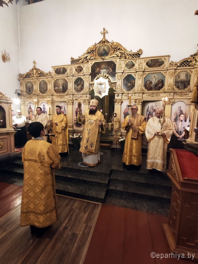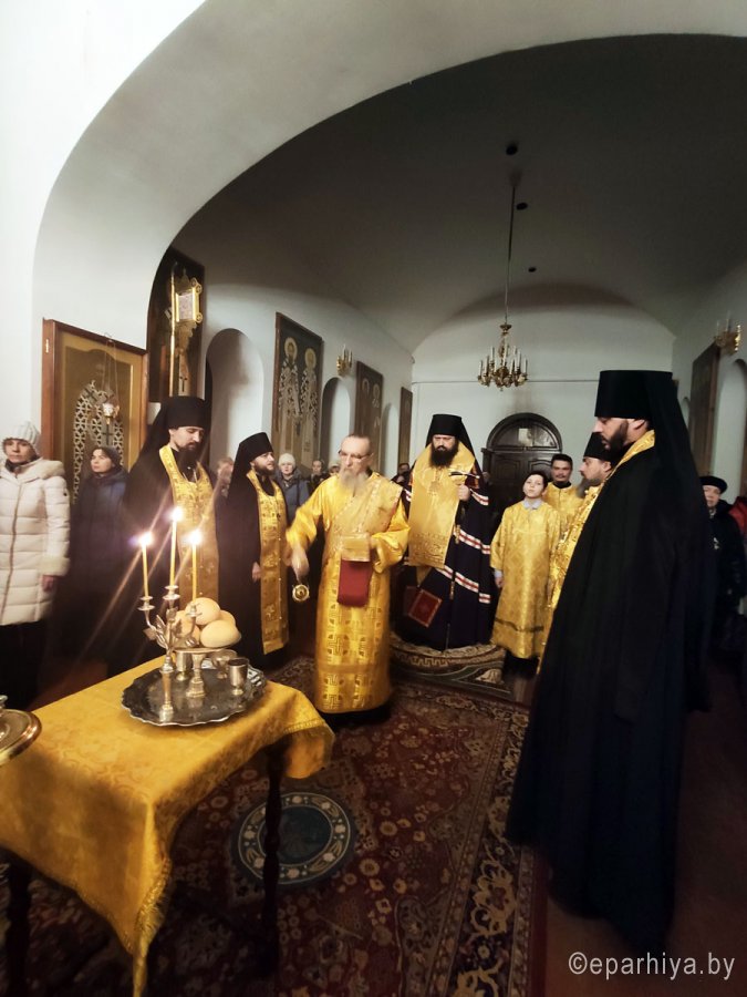 Субботним вечером, 14 декабря 26-ой седмицы по Пятидесятнице епископ Светлогорский Амвросий совершил всенощное бдение с благословением хлебов и елеопамазанием в храме святителя Николая Чудотворца монастырского комплекса. Братия обители в священном сане сослужила викарному архиерею. Пресс-служба Никольского монастыря |