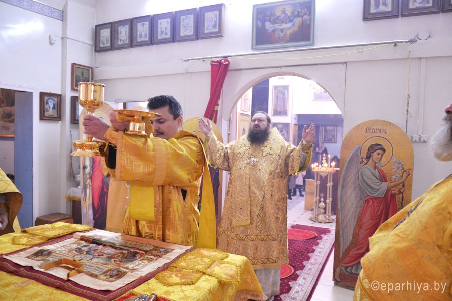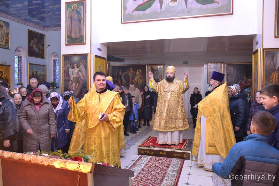 Епископ Светлогорский Амвросий, викарий Гомельской епархии, 15 декабря, в Неделю 26-ю по Пятидесятнице, совершил Божественную литургию в приходе храма Рождества Пресвятой Богородицы г.п. Уваровичи Буда-Кошелевского р-на. Преосвященнейшему сослужили: благочинный Буда-Кошелевского районного округа протоиерей Сергий Пешко, настоятель прихода иерей Михаил Борисенок и духовенство епархии. По окончании богослужения владыка Амвросий поздравил причастников с принятием Святых Христовых Тайн, обратился к молящимся со словами архипастырского назидания и на молитвенную память раздал всем присутствующим иконки «Спас нерукотворный». Пресс-служба Никольского монастыря |
