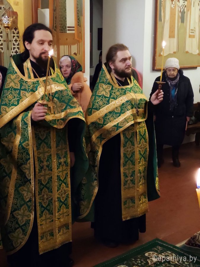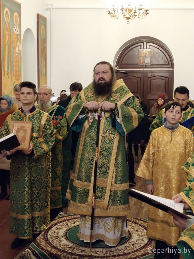 В воскресенье вечером 26-ой седмицы по Пятидесятнице, 15 декабря, епископ Светлогорский Амвросий, викарий Гомельской епархии, совершил вечернее богослужение с чтением акафиста святителю Николаю Чудотворцу в Никольском мужском монастыре города Гомеля. Его Преосвященству сослужила братия Никольской обители в священном сане. Традиция вечернего воскресного акафистного пения в честь святителя Николая утвердилась в обители много лет назад и прерывается исключительно для служения праздников церковного календаря. Пресс-служба Никольского монастыря |