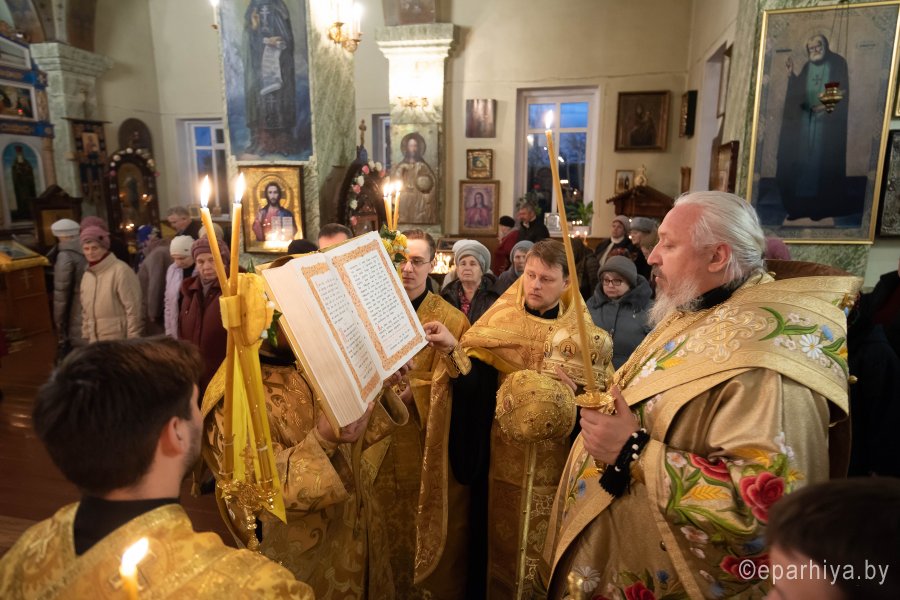 Святитель Николай Чудотворец особенно почитаем верующими. С древних времен в Православной Церкви ни одному из угодников Божиих не возводилось столько храмов и пределов. В канун дня памяти Святителя Николая, архиепископа Мир Ликийских, чудотворца 18 декабря 2019г. многочисленные верующие собрались для соборной молитвы в одноименном храме г.Добруша. Всенощное бдение совершил Высокопреосвященнейший Стефан, архиепископ Гомельский и Жлобинский. Высокопреосвященному сослужили: секретарь Гомельской епархии протоиерей Георгий Алампиев, благочинный Добрушского районного округа протоиерей Алексий Пилипенко и духовенство епархии. За богослужением архиепископ Стефан совершил праздничную литию и помазал молящихся освященным елеем. По окончании богослужения Владыка обратился к духовенству и молящимся с архипастырскими словами назидания. |