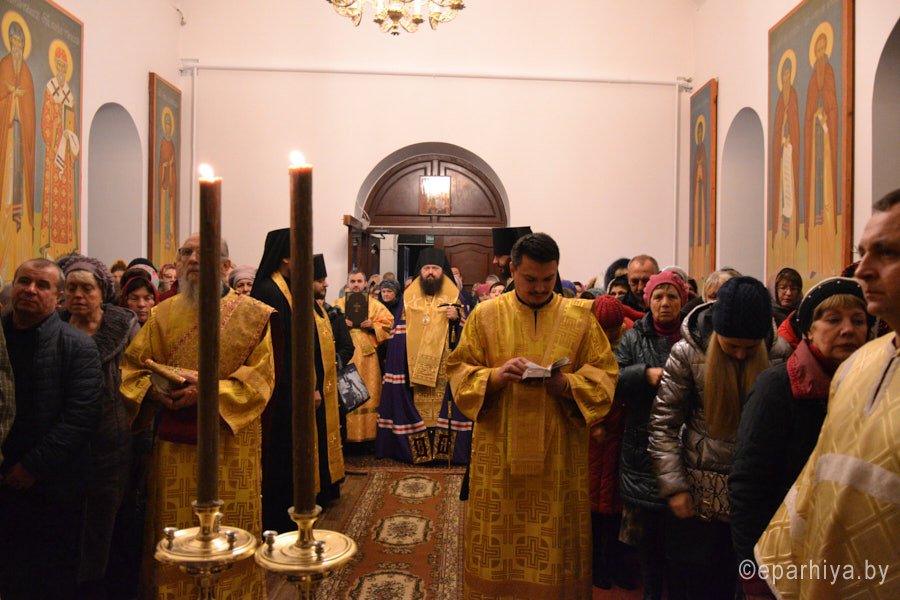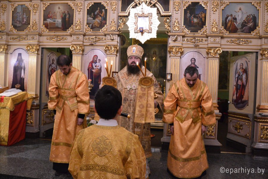 "Величаем тя, святителю отче Николае, и чтим святую память твою: ты бо молиши за нас Христа Бога нашего". В Свято-Никольском мужском монастыре начались торжества по случаю престольного праздника, дня памяти святителя Николая Чудотворца! Всенощное бдение в канун праздника возглавил епископ Светлогорский Амвросий, викарий Гомельской епархии и наместник Никольской мужской обители. Владыке сослужила братия в священном сане. Пресс-служба Никольского мужского монастыря |