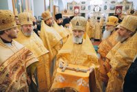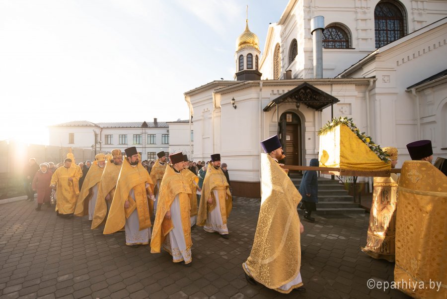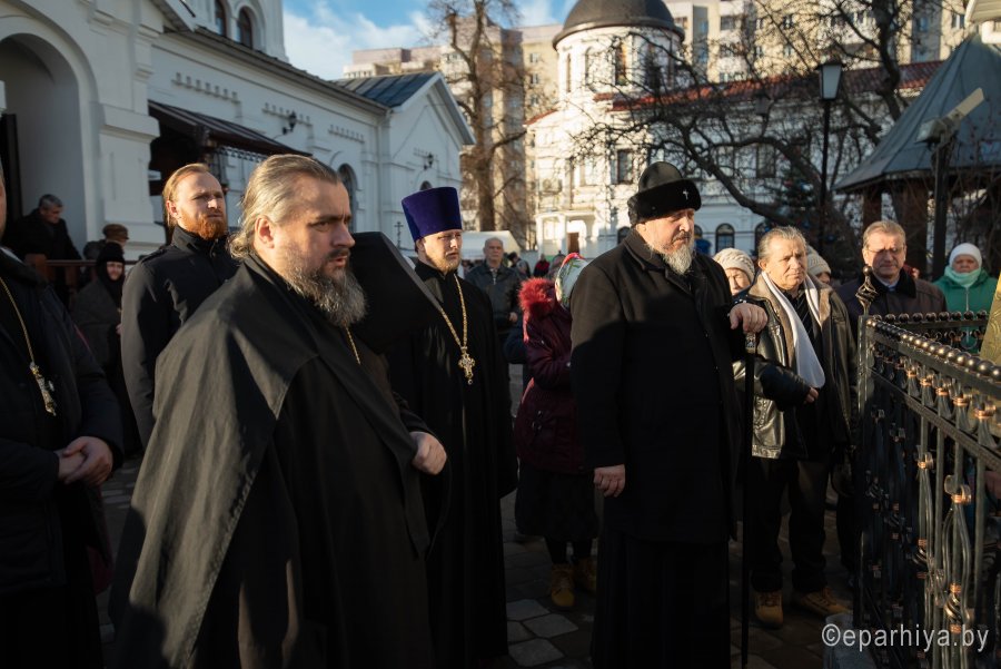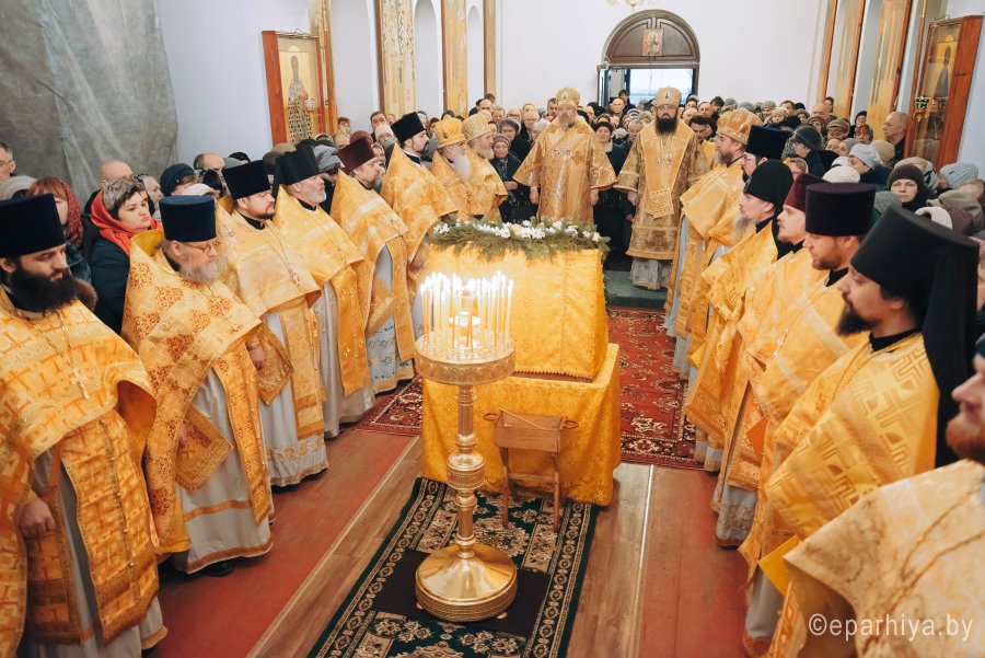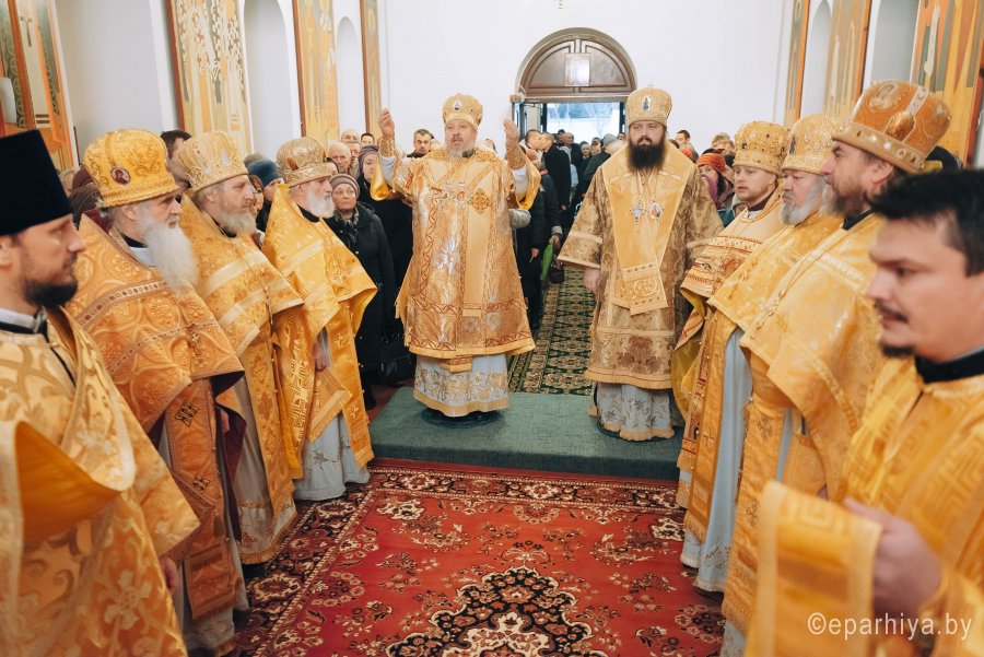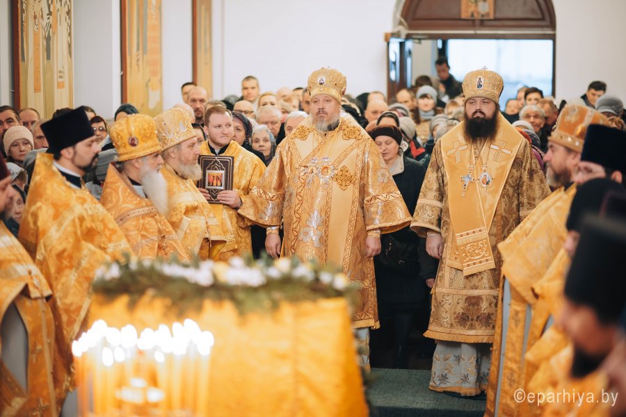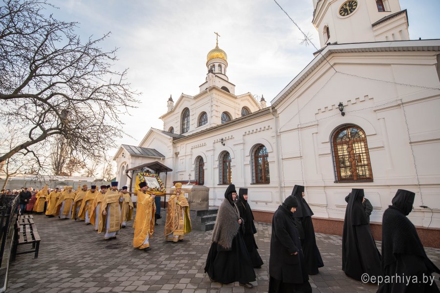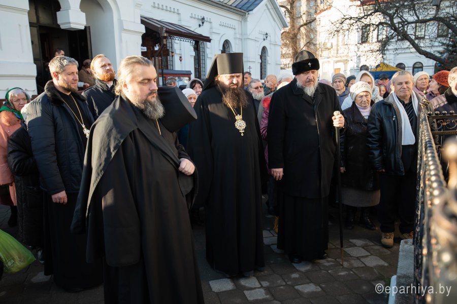 «Правило веры и образ кротости, воздержания учителя…» Один из особо почитаемых святых, имя которого призывается в каждой православной семье. Святой Николай Чудотворец является для нас примером служения Христу, примером кротости и смирения, милосердия и жертвенной любви. Божественную литургию в день памяти Святителя Николая, архиепископа Мир Ликийских, чудотворца в Никольском мужском монастыре г. Гомеля 19 декабря 2019г. совершили Высокопреосвященнейший Стефан архиепископ Гомельский и Жлобинский и епископ Светлогорский Амвросий, викарий Гомельской епархии. Архипастырям сослужили: секретарь Гомельской епархии протоиерей Георгий Алампиев, духовник епархии протоирей Стефан Гладыщук, благочинный Гомельского городского округа протоиерей Игорь Ольшанов, благочинный Гомельского районного округа протоиерей Артемий Кривицкий, председатели епархиальных отделов, настоятели приходов и братия монастыря в священном сане. За Божественной литургией молились настоятельницы монастырей Гомельской епархии: игуменья Иоанна (Ярец) с сестрами Успенского женского монастыря д. Казимирово, игуменья Вера (Афонькина) с сестрами Тихвинского женского монастыря г.Гомеля. По окончании богослужения Владыка Стефан поблагодарил всех за совместную молитву, поздравил духовенство и прихожан с престольным праздником, причастников с принятием Святых Христовых Таин и преподал всем архипастырское благословение. Архипастыри также посетили монастырский некрополь, где совершили литию на могилах приснопамятного архиепископа Аристарха (Станкевича) (+2012), архимандрита Антония (Кузнецова) (+2014) и монахини Серафимы (Павловой). |