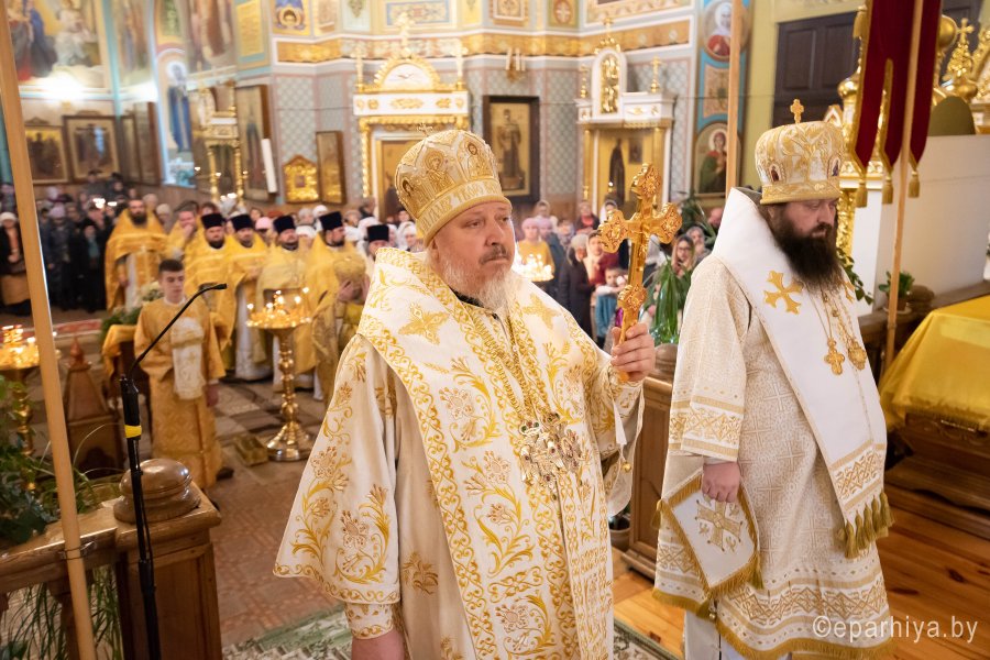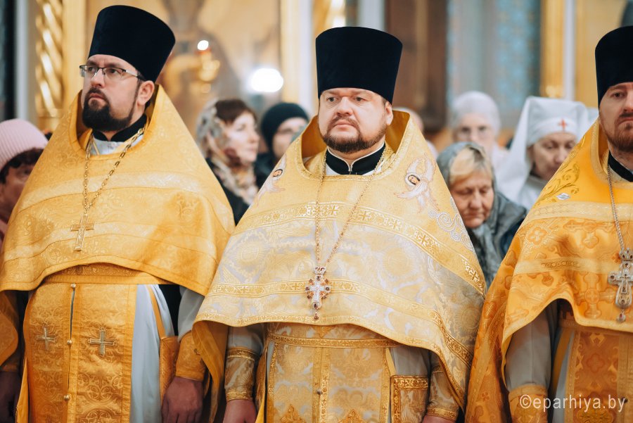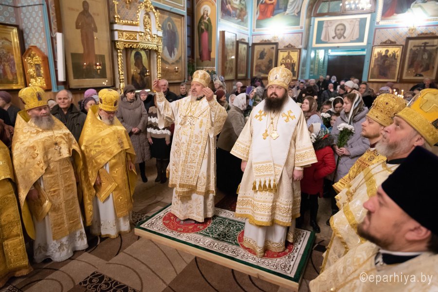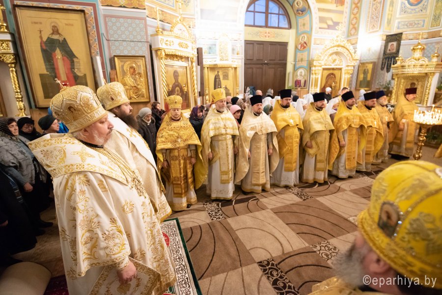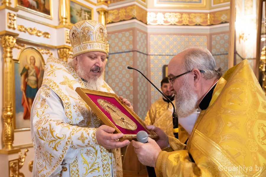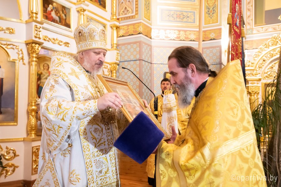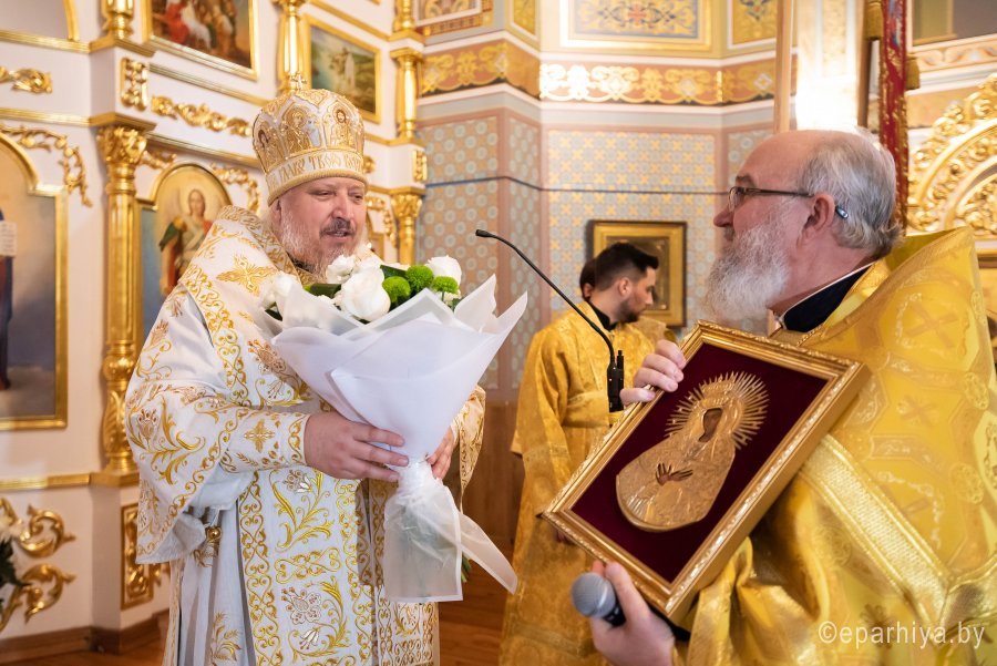 Божественную литургию в субботу 27-й седмицы по Пятидесятнице 21 декабря 2019г. в соборе Успения Пресвятой Богородицы г.Речицы совершили Высокопреосвященнейший Стефан архиепископ Гомельский и Жлобинский и епископ Светлогорский Амвросий, викарий Гомельской епархии. Архипастырям сослужили: секретарь Гомельской епархии протоиерей Георгий Алампиев, благочинный Речицкого округа протоиерей Алексий Пешко, благочинные округов Гомельской епархии, председатели епархиальных отделов, настоятели приходов и духовенство епархии. По окончании богослужения Владыка поздравил благочинного Речицкого округа протоиерея Алексия Пешко с 40-летним юбилеем священнической хиротонии и преподнес в дар икону Божией Матери. Также Высокопреосвященнейший Стефан поздравил с прошедшим Днем Ангела всех священнослужителей, носящих имя Николай, причастников с принятием Святых Христовых Таин и в память об этом дне раздал всем иконки. |