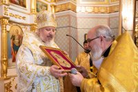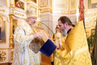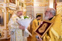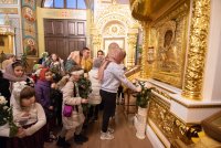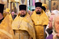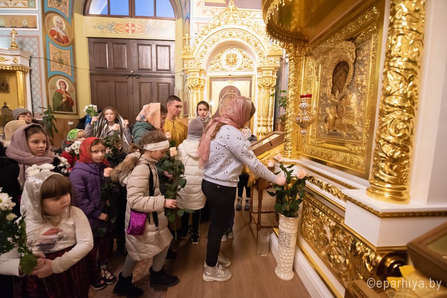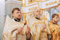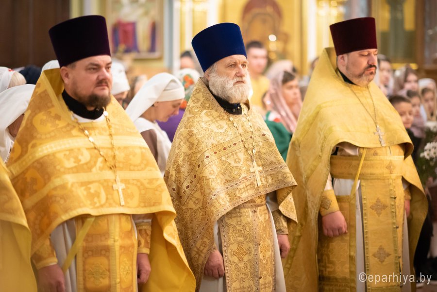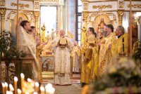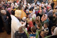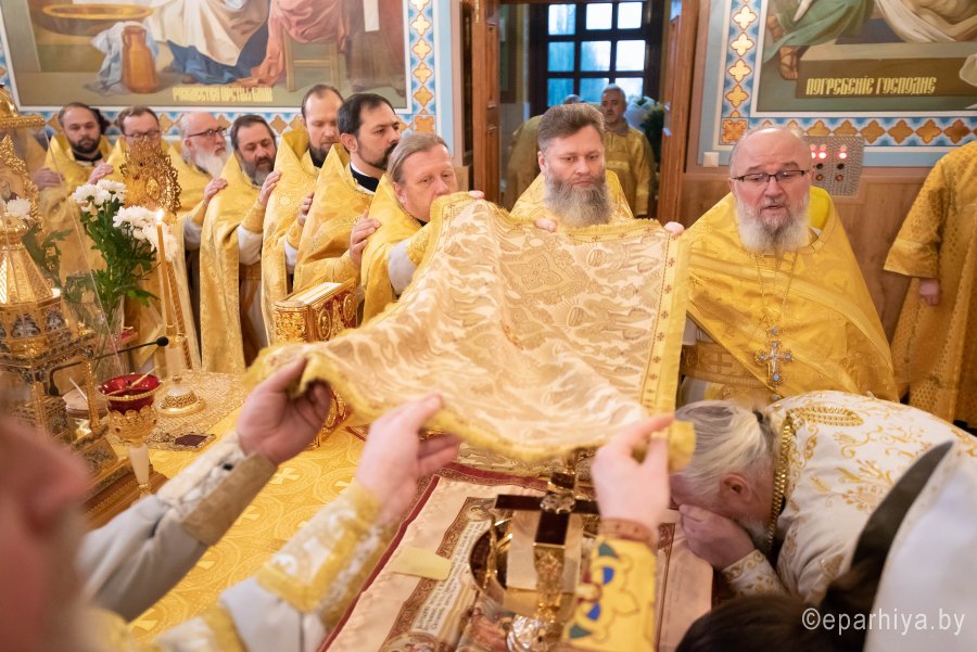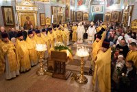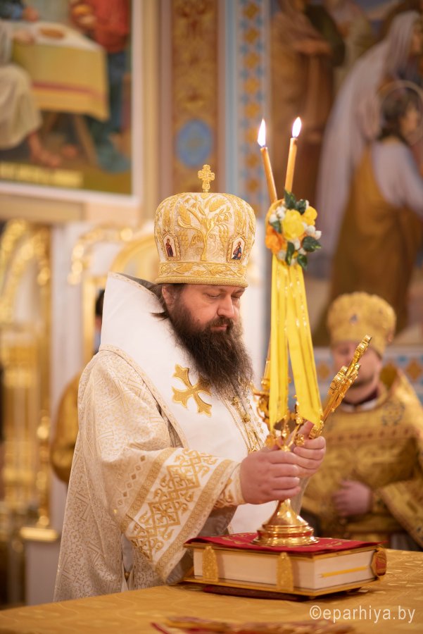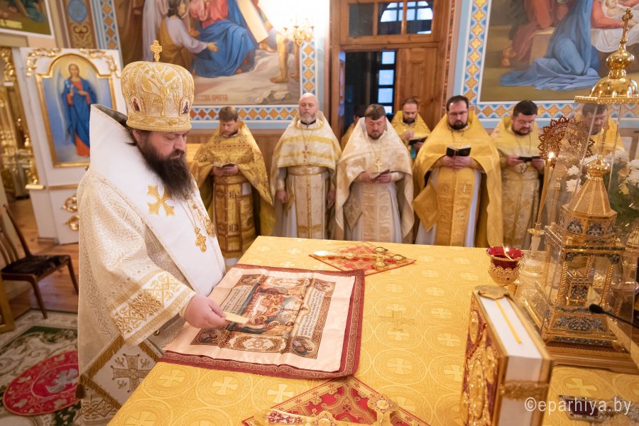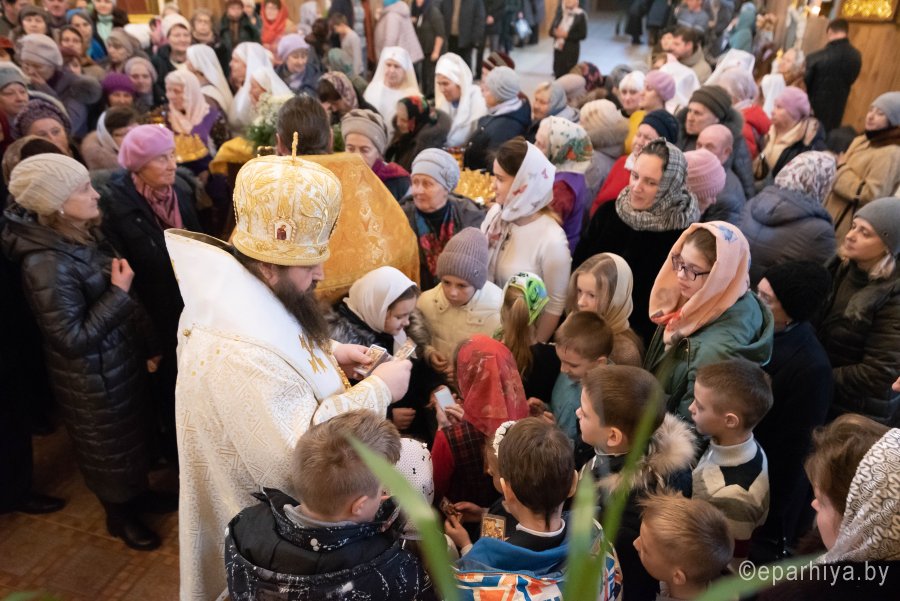 Божественную литургию в субботу 27-й седмицы по Пятидесятнице 21 декабря 2019г. в соборе Успения Пресвятой Богородицы г.Речицы совершили Высокопреосвященнейший Стефан архиепископ Гомельский и Жлобинский и епископ Светлогорский Амвросий, викарий Гомельской епархии. Архипастырям сослужили: секретарь Гомельской епархии протоиерей Георгий Алампиев, благочинный Речицкого округа протоиерей Алексий Пешко, благочинные округов Гомельской епархии, председатели епархиальных отделов, настоятели приходов и духовенство епархии. По окончании богослужения Владыка поздравил благочинного Речицкого округа протоиерея Алексия Пешко с 40-летним юбилеем священнической хиротонии и преподнес в дар икону Божией Матери. Также Высокопреосвященнейший Стефан поздравил с прошедшим Днем Ангела всех священнослужителей, носящих имя Николай, причастников с принятием Святых Христовых Таин и в память об этом дне раздал всем иконки. |