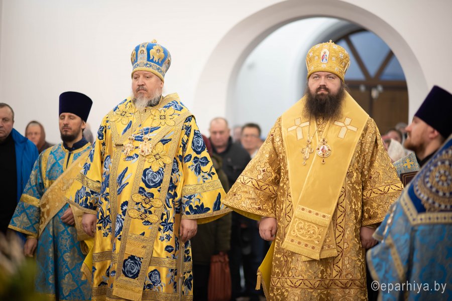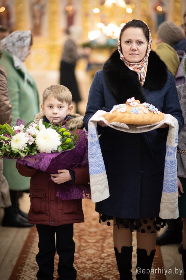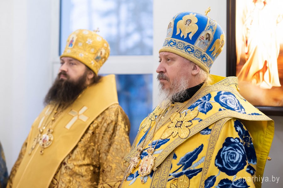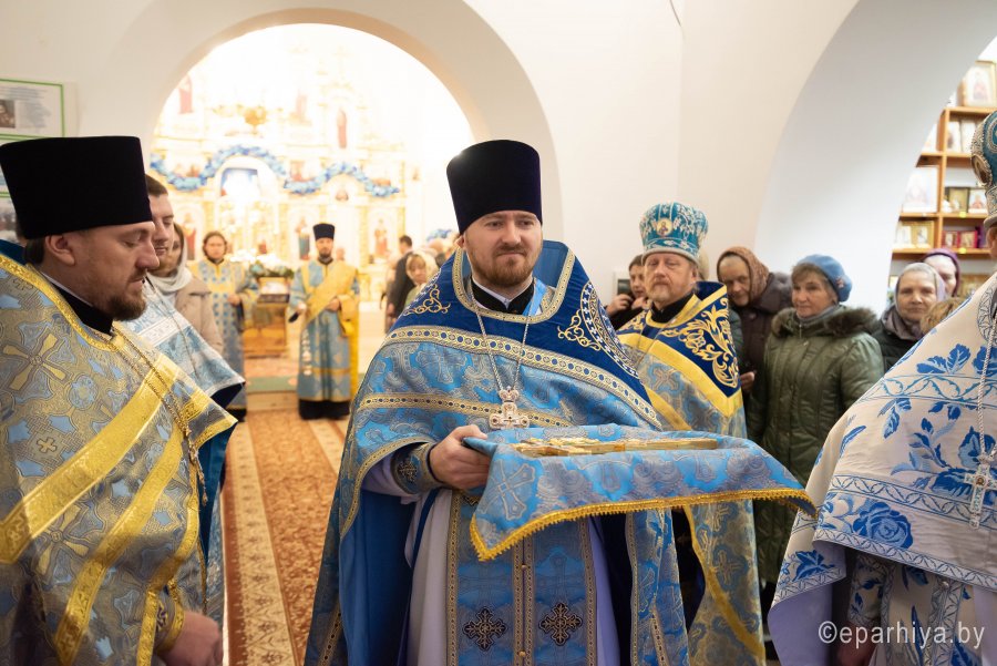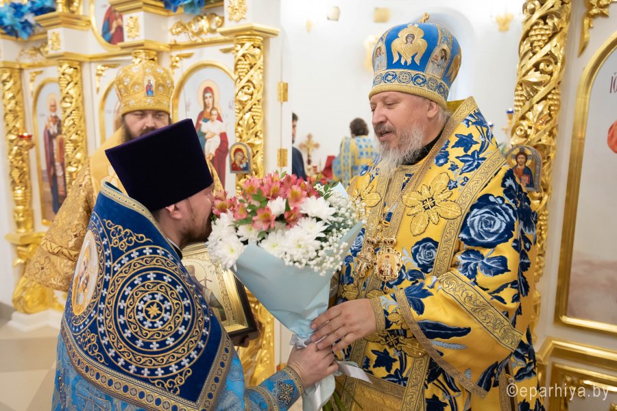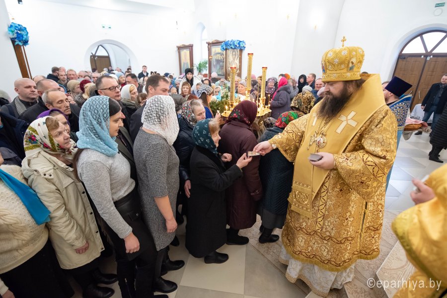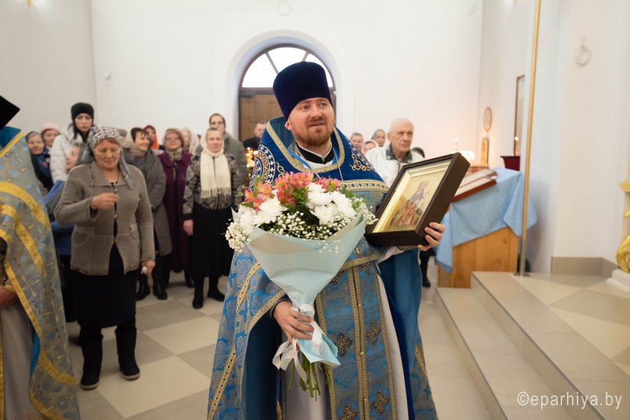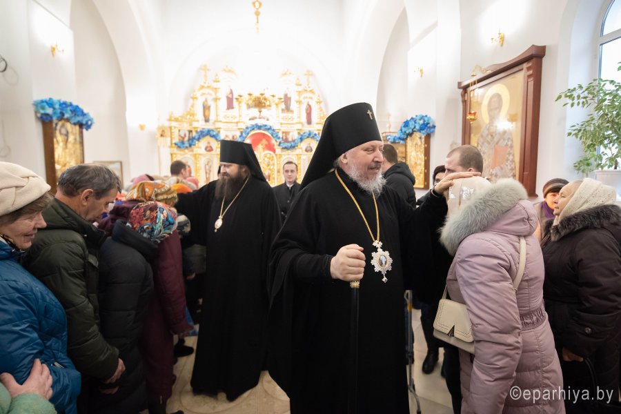 Божественную литургию в день празднования иконы Божией Матери «Нечаянная радость» в храме святителя Кирилла Туровского в г. Светлогорске 22 декабря 2019г. совершили Высокопреосвященнейший Стефан архиепископ Гомельский и Жлобинский и епископ Светлогорский Амвросий, викарий Гомельской епархии. Архипастырям сослужили: секретарь Гомельской епархии протоиерей Георгий Алампиев, благочинный Светлогорского округа протоиерей Александр Кисель, настоятель прихода Сергий Кисель и духовенство епархии. По окончании богослужения Преосвященные архипастыри поздравили протоиерея Сергия Киселя с Днем рождения, пожелав крепости сил духовных и телесных на дальнейшем пути служения святой Матери Церкви, преподнеся в дар святой Образ и цветы. По завершении богослужения Владыка поздравил причастников с принятием Святых Христовых Таин, обратился к духовенству и молящимся с архипастырскими словами назидания и на память о совместной молитве раздал всем присутствующим иконки. |