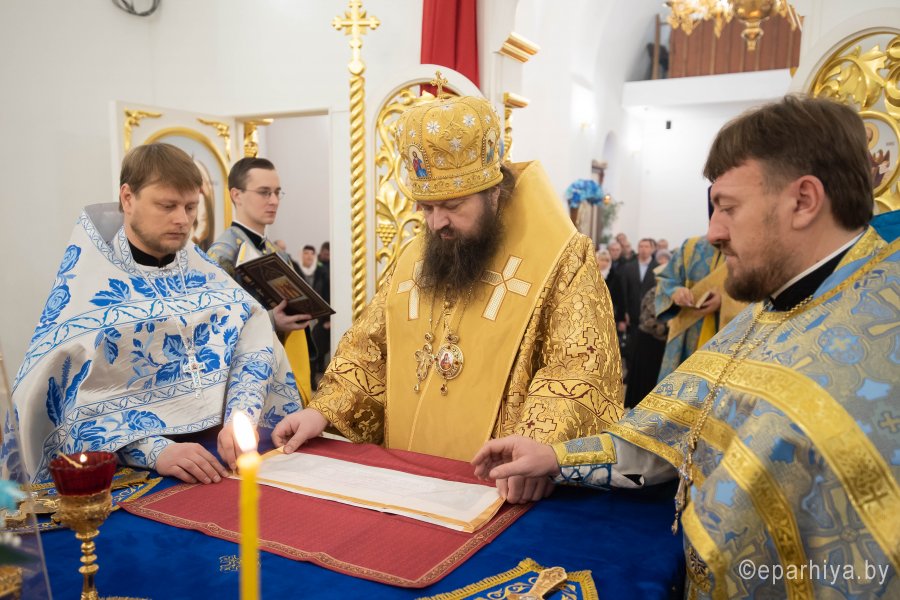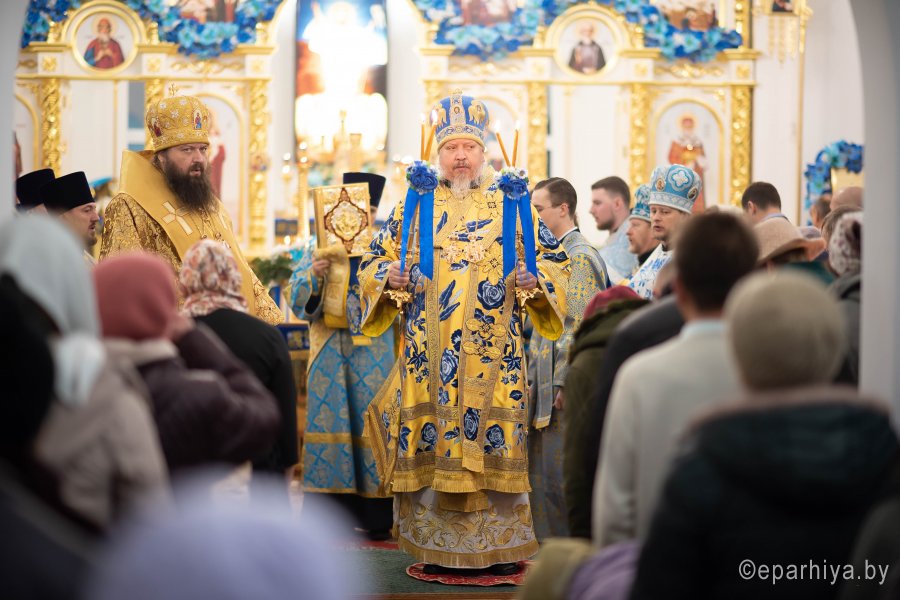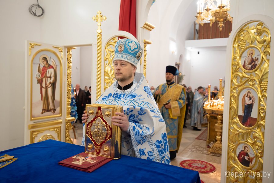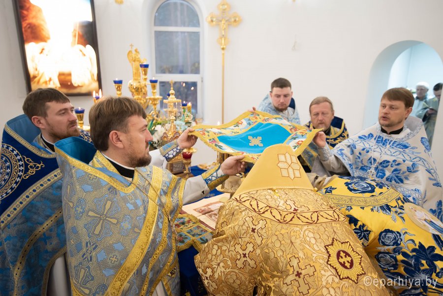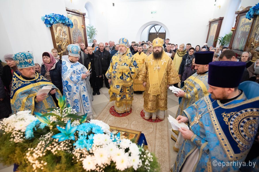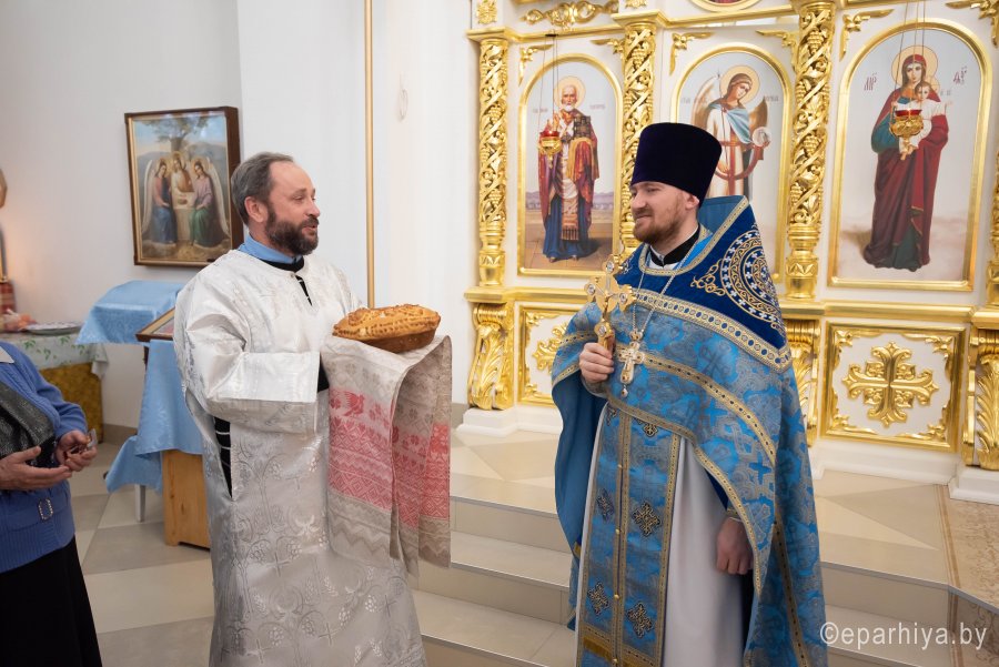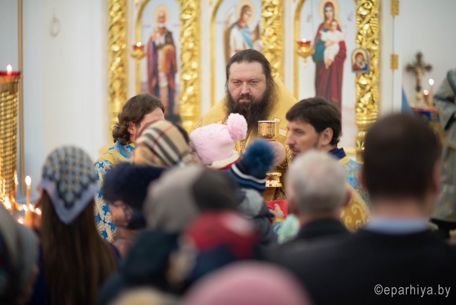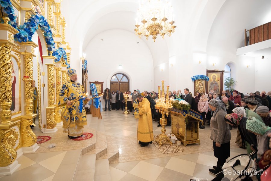Божественную литургию в день празднования иконы Божией Матери «Нечаянная радость» в храме святителя Кирилла Туровского в г. Светлогорске 22 декабря 2019г. совершили Высокопреосвященнейший Стефан архиепископ Гомельский и Жлобинский и епископ Светлогорский Амвросий, викарий Гомельской епархии. Архипастырям сослужили: секретарь Гомельской епархии протоиерей Георгий Алампиев, благочинный Светлогорского округа протоиерей Александр Кисель, настоятель прихода Сергий Кисель и духовенство епархии. По окончании богослужения Преосвященные архипастыри поздравили протоиерея Сергия Киселя с Днем рождения, пожелав крепости сил духовных и телесных на дальнейшем пути служения святой Матери Церкви, преподнеся в дар святой Образ и цветы. По завершении богослужения Владыка поздравил причастников с принятием Святых Христовых Таин, обратился к духовенству и молящимся с архипастырскими словами назидания и на память о совместной молитве раздал всем присутствующим иконки. |