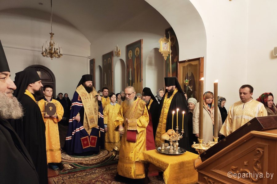 21 декабря, в субботу 27-й седмицы по Пятидесятнице, епископ Светлогорский Амвросий совершил всенощное бдение с благословением хлебов и елеопомазанием в храме святителя Николая Чудотворца монастырского комплекса. Братия обители в священном сане сослужила викарному архиерею. Пресс-служба Никольского монастыря |
