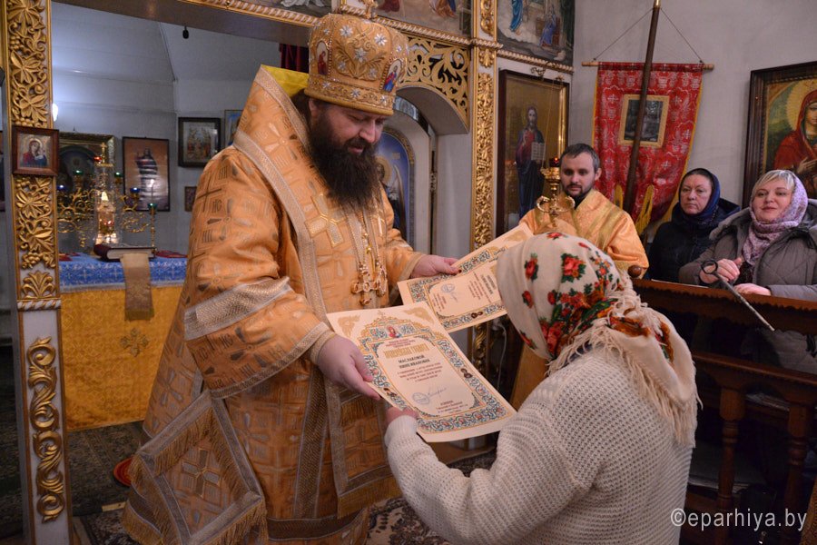25 декабря, в день памяти свт. Спиридона Тримифунтского, чудотворца, епископ Светлогорский Амвросий, викарий Гомельской епархии, совершил Божественную литургию в Гомельском храме иконы Божией Матери "Скоропослушница". Его Преосвященству сослужили: духовник Гомельской епархии протоиерей Стефан Гладыщук, благочинный Гомельского городского округа протоиерей Игорь Ольшанов, настоятель прихода игумен Мефодий (Казаков), духовенство храма и епархии. Богослужение сопровождалось переводом на язык жестов. Слабослышащие и глухие прихожане благодаря клирику храма иерею Александру Пранкевичу получили возможность участвовать в Литургии. По окончании богослужения владыка Амвросий поздравил духовенство и прихожан с праздником, вручил епархиальные награды особо потрудившимся на приходе, обратился к молящимся со словами архипастырского назидания и на память совместной молитве раздал иконки. Пресс-служба Никольского монастыря |