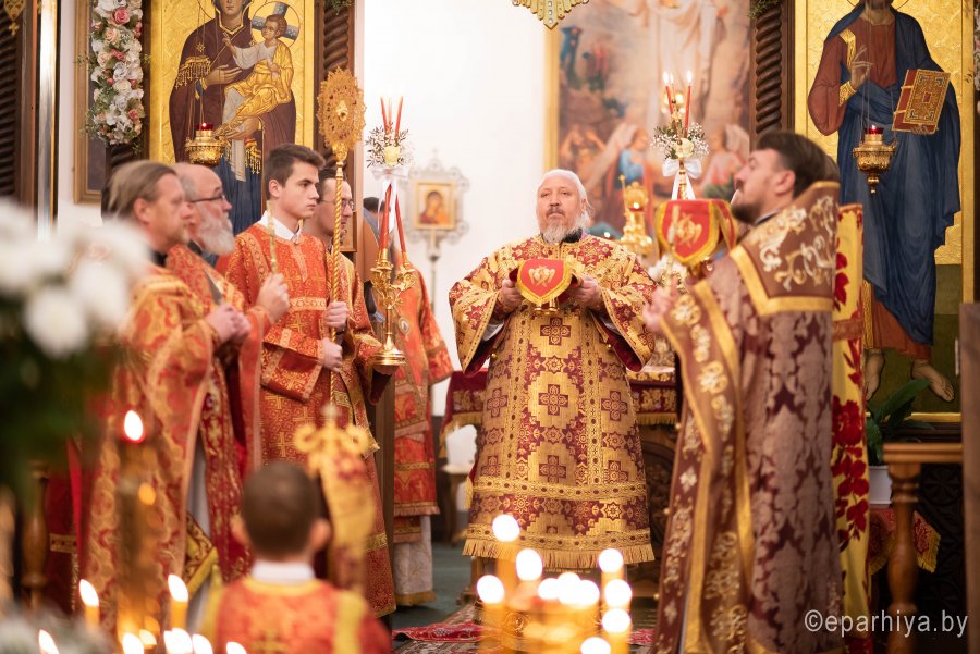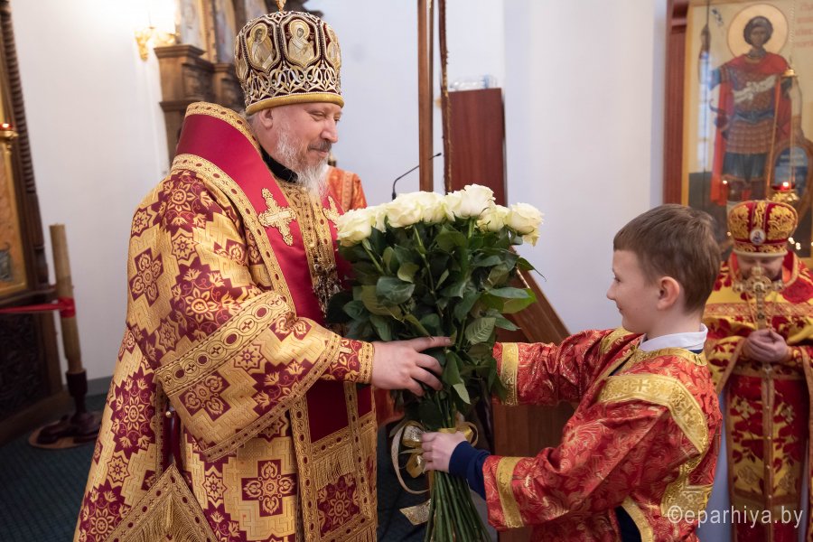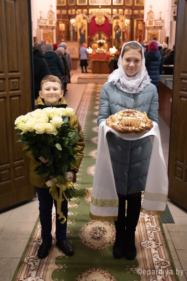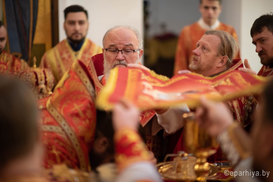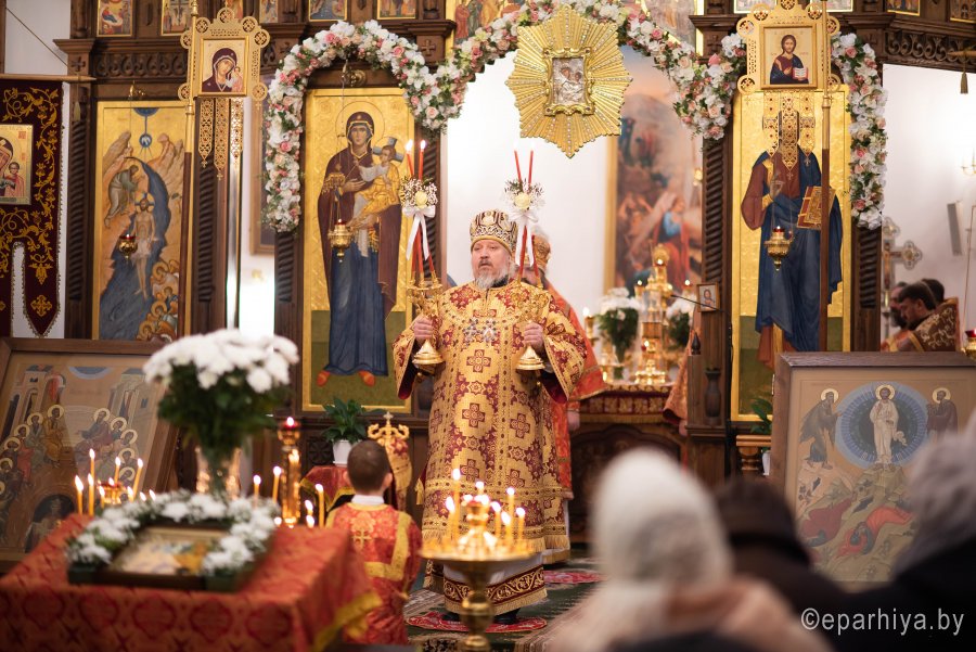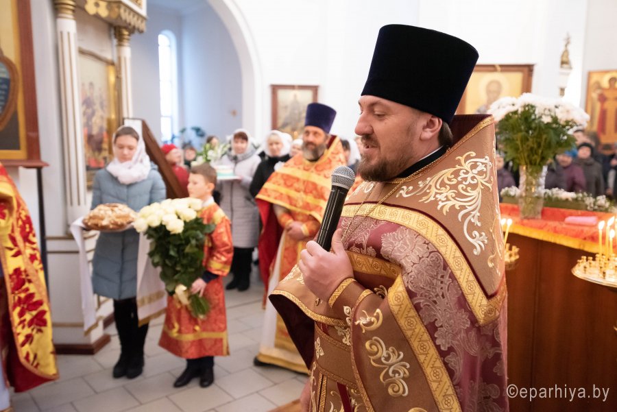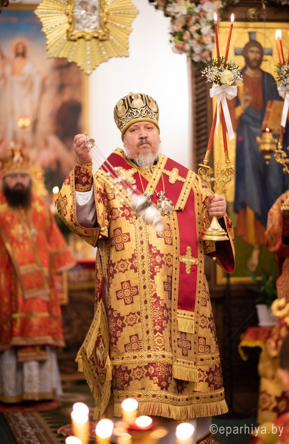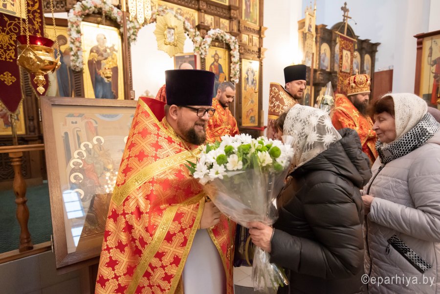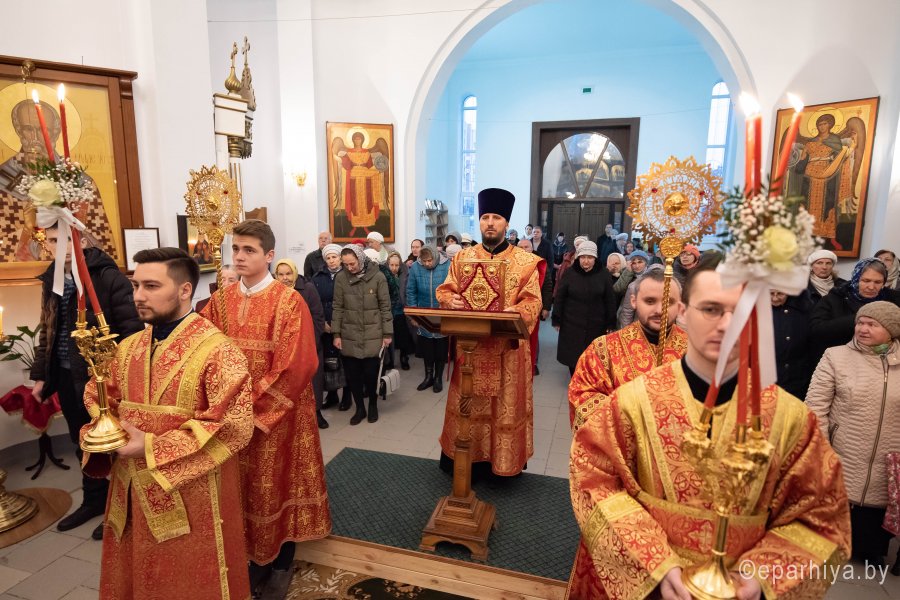 Божественную литургию в четверг 28-й седмицы по Пятидесятнице в храме Преображения Господня в г. Светлогорске 26 декабря 2019г. совершили Высокопреосвященнейший Стефан архиепископ Гомельский и Жлобинский и епископ Светлогорский Амвросий, викарий Гомельской епархии. Архипастырям сослужили: секретарь Гомельской епархии протоиерей Георгий Алампиев, благочинный Светлогорского округа протоиерей Александр Кисель, благочинный Речицкого округа протоиерей Алексий Пешко и духовенство епархии. По окончании богослужения Преосвященные архипастыри поздравили протоиерея Александра Киселя с 20-летием служения в священном сане и иерея Евгения Новика с Днем Ангела, пожелав пастырям помощи Божией в трудах, здравия телесного и духовной радости на многая лета во благо Святой Церкви Христовой. По окончании богослужения Владыка поздравил причастников с принятием Святых Христовых Таин и обратился к молящимся со словами архипастырского назидания и на память о совместной молитве раздал всем присутствующим иконки. |