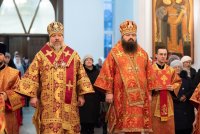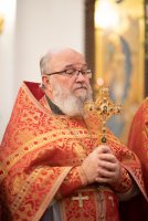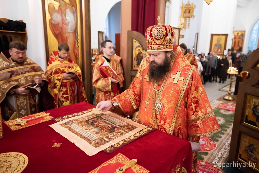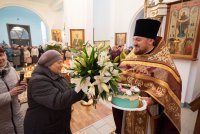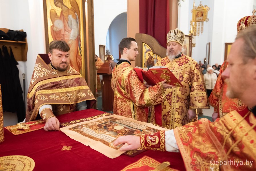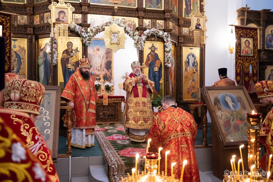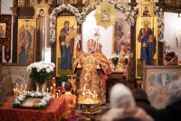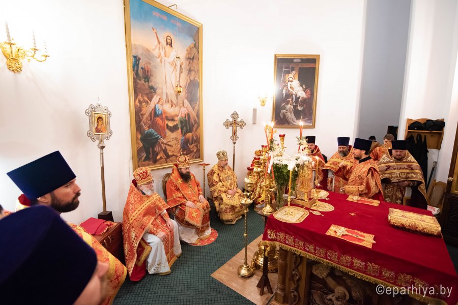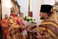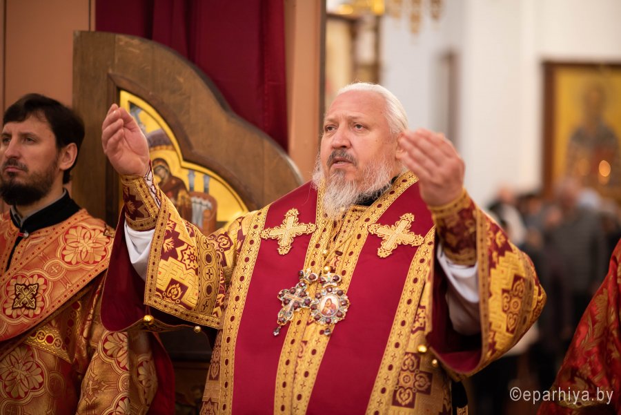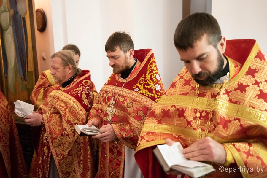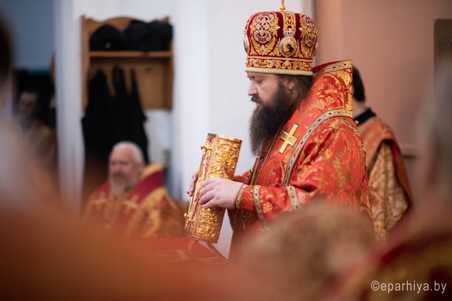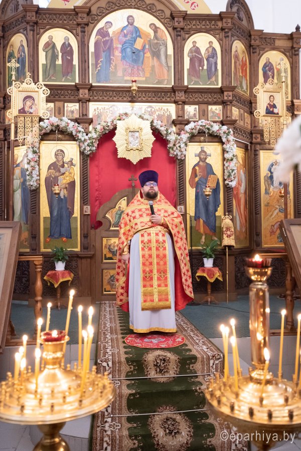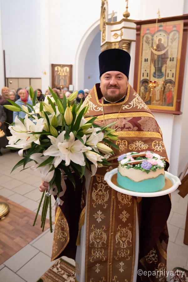 Божественную литургию в четверг 28-й седмицы по Пятидесятнице в храме Преображения Господня в г. Светлогорске 26 декабря 2019г. совершили Высокопреосвященнейший Стефан архиепископ Гомельский и Жлобинский и епископ Светлогорский Амвросий, викарий Гомельской епархии. Архипастырям сослужили: секретарь Гомельской епархии протоиерей Георгий Алампиев, благочинный Светлогорского округа протоиерей Александр Кисель, благочинный Речицкого округа протоиерей Алексий Пешко и духовенство епархии. По окончании богослужения Преосвященные архипастыри поздравили протоиерея Александра Киселя с 20-летием служения в священном сане и иерея Евгения Новика с Днем Ангела, пожелав пастырям помощи Божией в трудах, здравия телесного и духовной радости на многая лета во благо Святой Церкви Христовой. По окончании богослужения Владыка поздравил причастников с принятием Святых Христовых Таин и обратился к молящимся со словами архипастырского назидания и на память о совместной молитве раздал всем присутствующим иконки. |