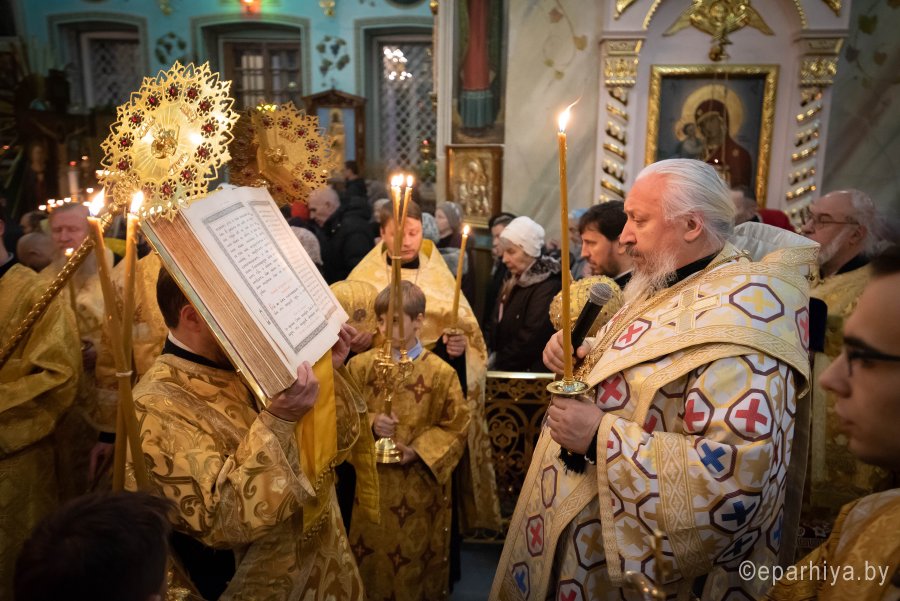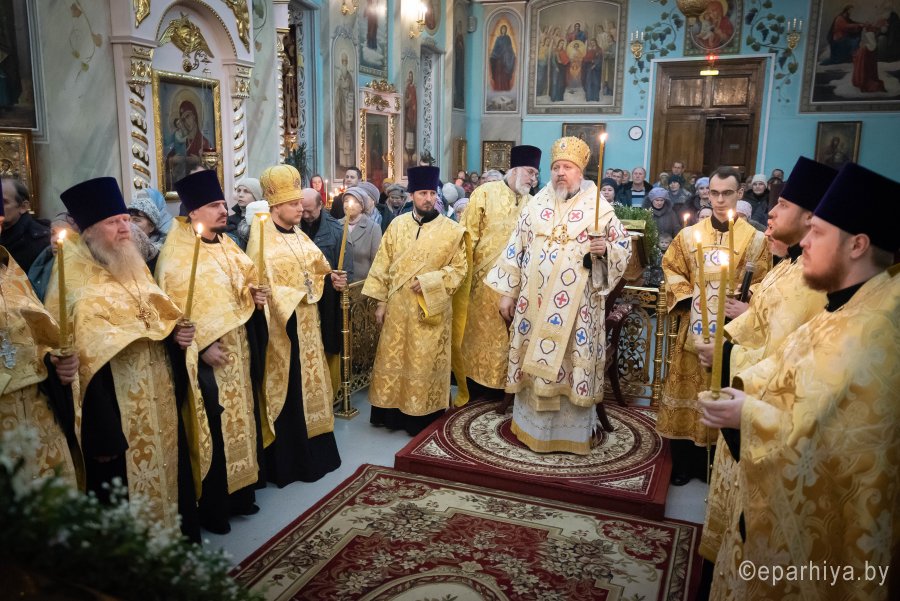 Всенощное бдение в канун Недели 28-й по Пятидесятнице 28 декабря 2019г. Высокопреосвященнейший Стефан, архиепископ Гомельский и Жлобинский совершил в Петро-Павловском кафедральном соборе г.Гомеля. Высокопреосвященнейшему сослужили: секретарь Гомельской епархии протоиерей Георгий Алампиев и духовенство собора. По окончании богослужения Владыка обратился к молящимся со словами Архипастырского назидания. |
