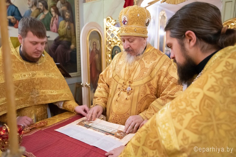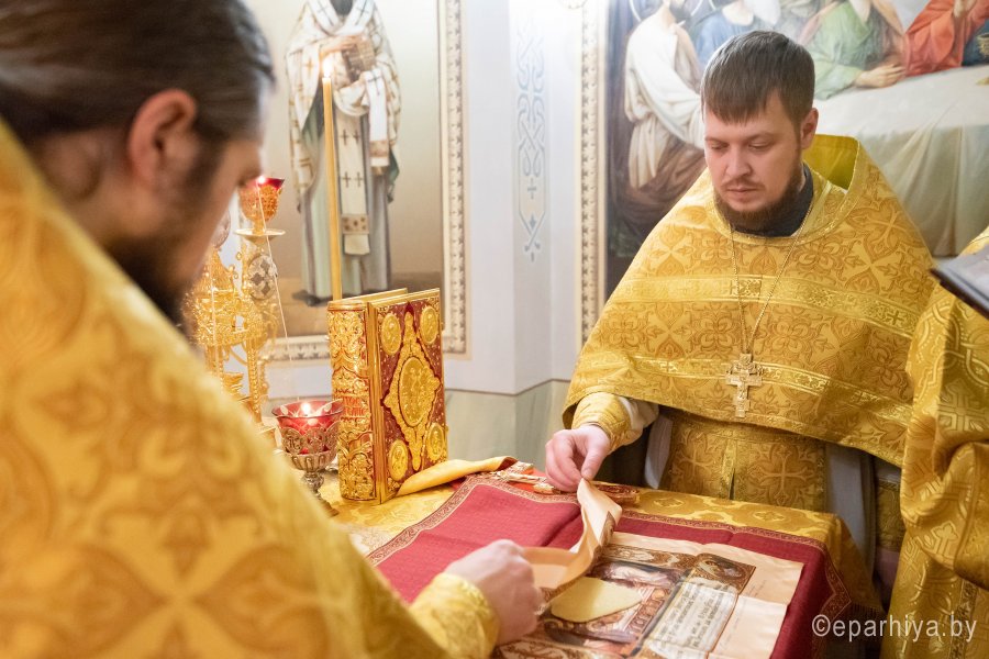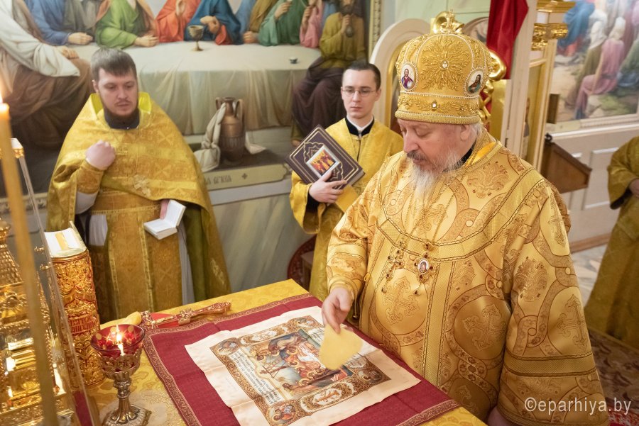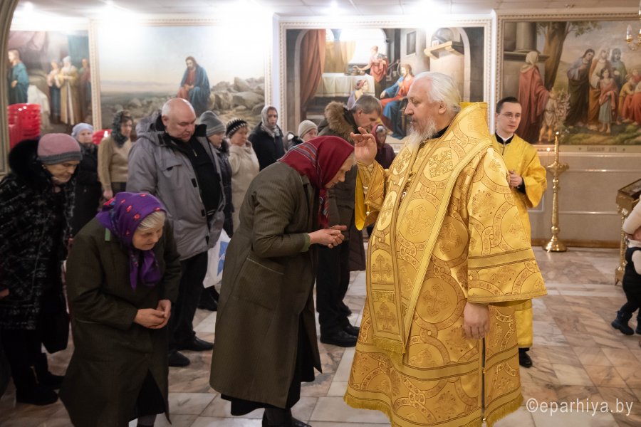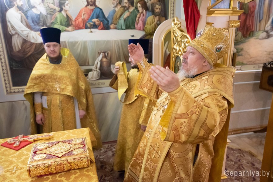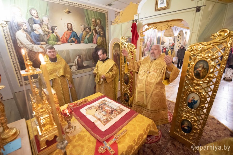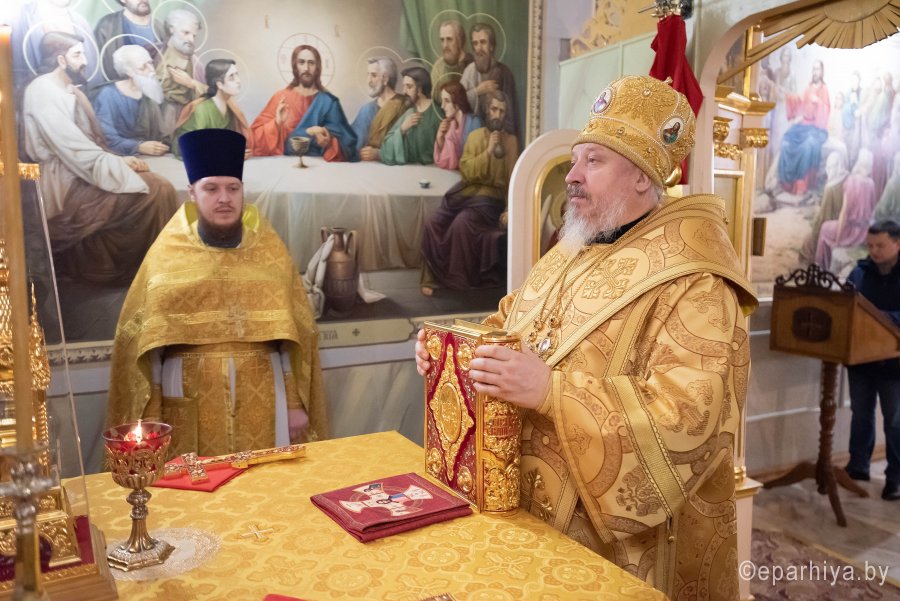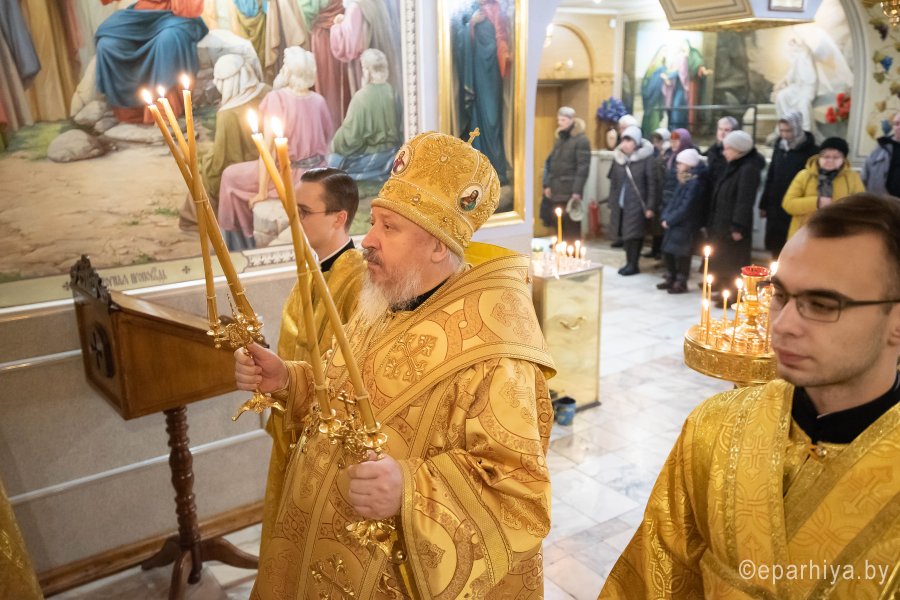 Божественную литургию в криптовом храме Петро-Павловского кафедрального собора г.Гомеля, освященного в честь Святой равноапостольной Марии Магдалины 30 декабря 2019г. в понедельник 29-й седмицы по Пятидесятнице совершил Высокопреосвященнейший Стефан архиепископ Гомельский и Жлобинский в сослужении духовенства собора. По окончании Литургии Владыка Стефан поздравил причастников с принятием Святых Христовых Таин и обратился к молящимся со словами Архипастырского назидания. |