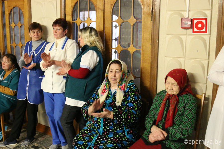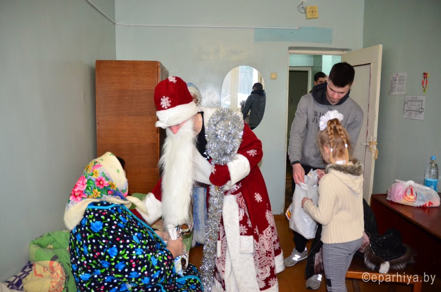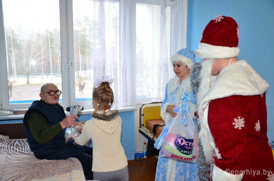 28 декабря сотрудники и волонтёры гомельских храмов святого Архангела Михаила, Грузинской иконы Божией Матери, Святой Живоначальной Троицы и курсанты военно-транспортного факультета БелГУТа вновь посетили пациентов отделения сестринского ухода Лечебно-профилактического учреждения «Светиловичская участковая больница», привезли им праздничное настроение и приятные подарки. Подопечные отделения, многие из которых годами находятся в четырех стенах, с нетерпением ждали гостей. Поздравления от Деда Мороза и Снегурочки, праздничный концерт заставили улыбнуться абсолютно всех. Подопечные всегда рады вниманию и заботе волонтёров, ведь они дарят не только праздник, но и полезные для ухода за пожилыми и инвалидами практичные вещи. Материал предоставлен приходом храма святого Архангела Михаила в г.Гомеле |