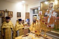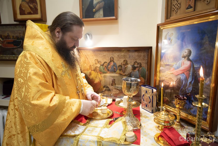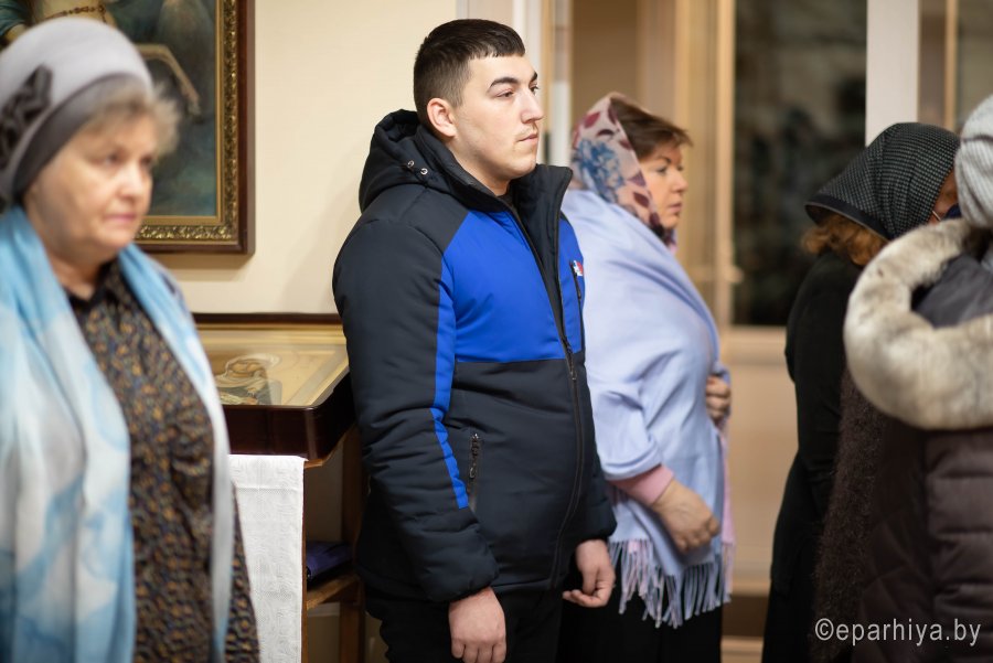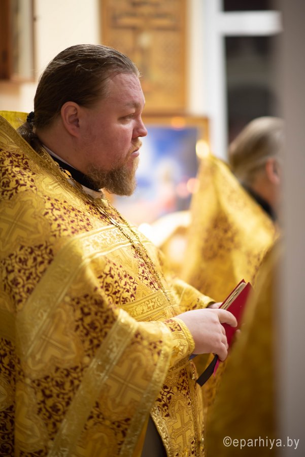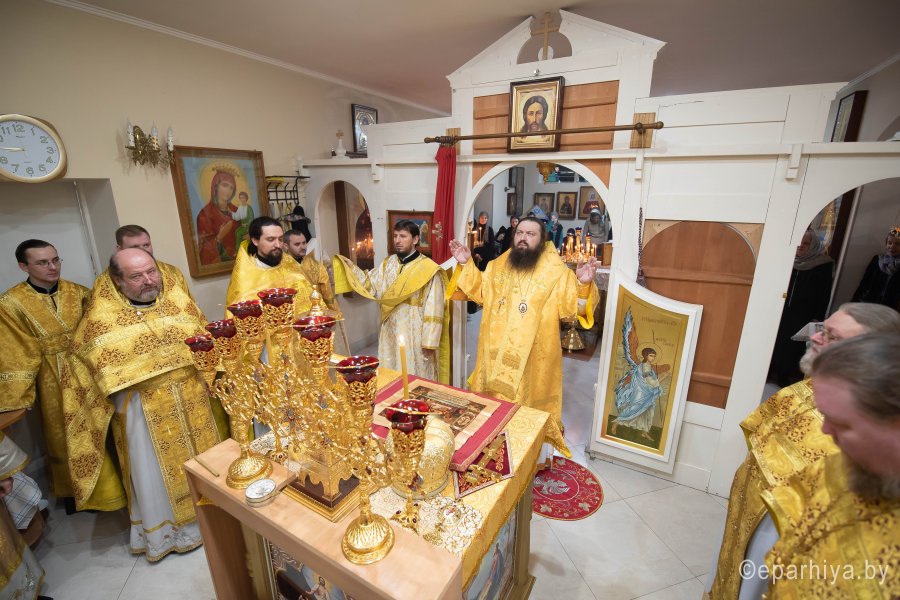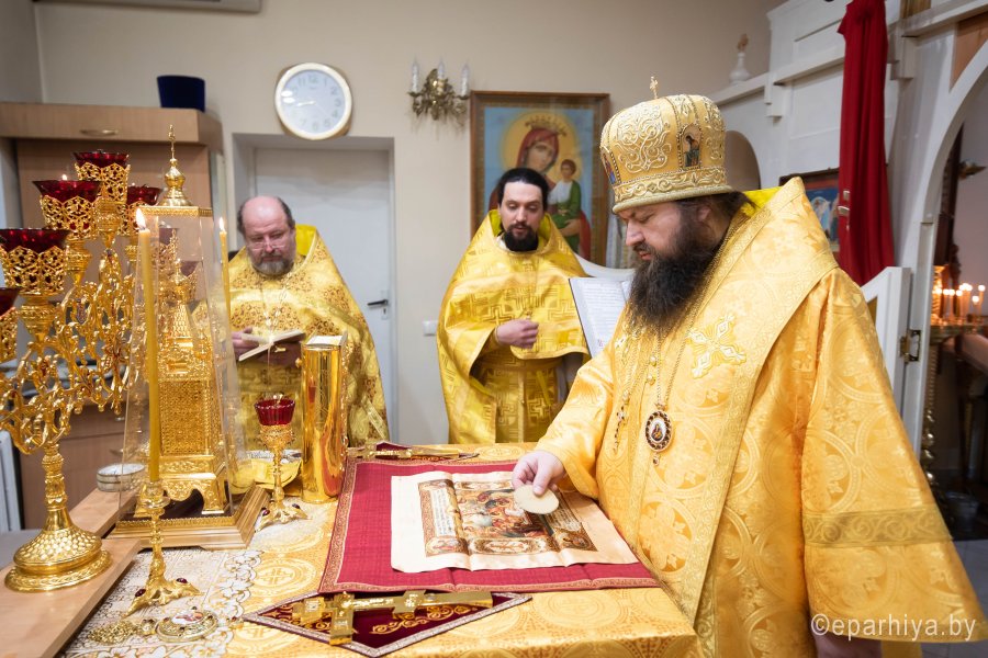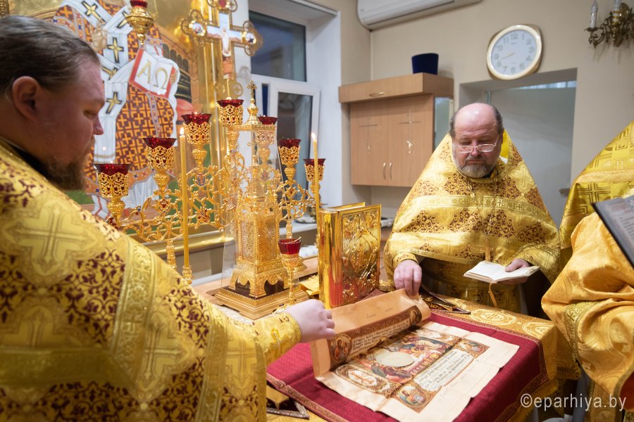 Божественную литургию в четверг 29-й седмицы по Пятидесятнице 2 января 2020г. в Тихвинском монастыре г.Гомеля совершили Высокопреосвященнейший Стефан архиепископ Гомельский и Жлобинский и епископ Светлогорский Амвросий, викарий Гомельской епархии в сослужении духовенства монастыря. За богослужением молились настоятельница обители игуменья Вера (Афонькина) с сестрами. По окончании богослужения Владыка поздравил причастников с принятием Святых Христовых Таин, обратился к молящимся со словами Архипастырского назидания и в память об этом дне раздал всем присутствующим иконки. |