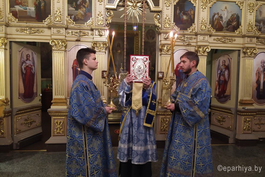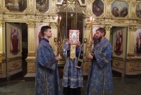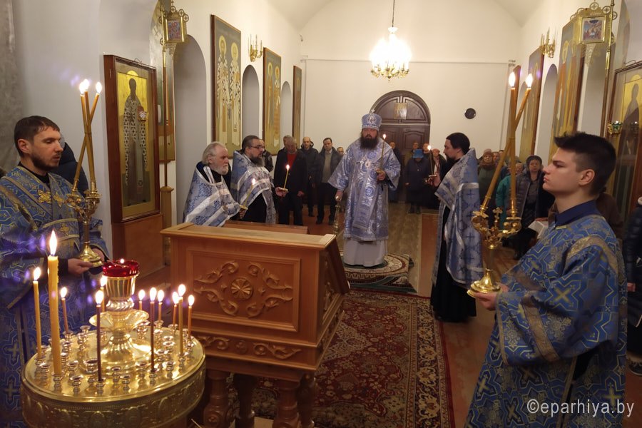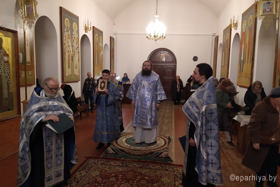 В среду вечером, 1 января, епископ Светлогорский Амвросий, викарий Гомельской епархии, совершил вечернее богослужение с акафистом Пресвятой Богородице перед чтимым списком иконы Божией Матери "Козельщанская" в Никольском храме монастырского комплекса города Гомеля. Владыке сослужили братия обители в священном сане. Пресс-служба Никольского монастыря |