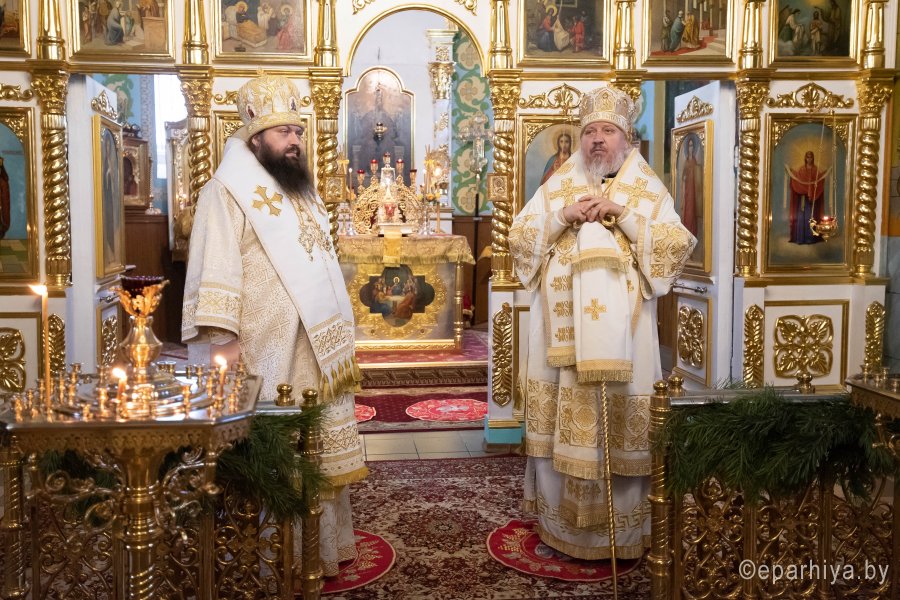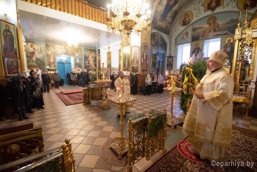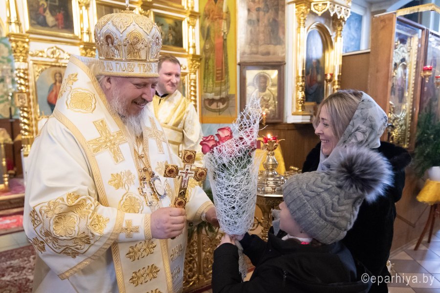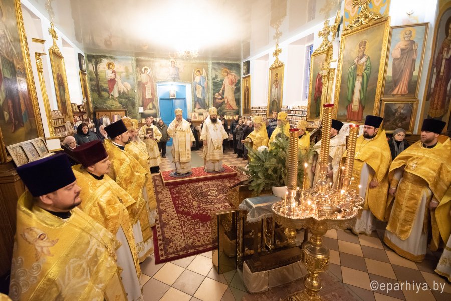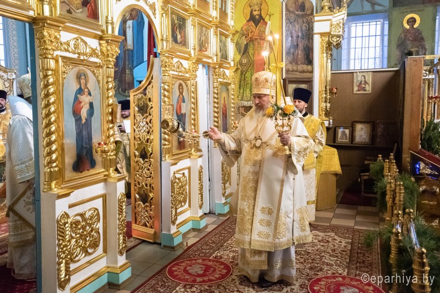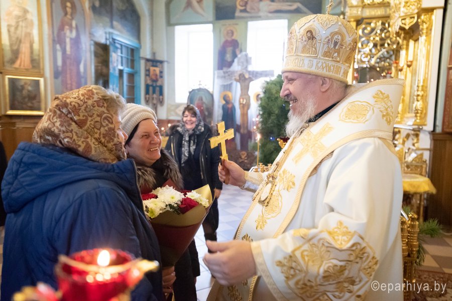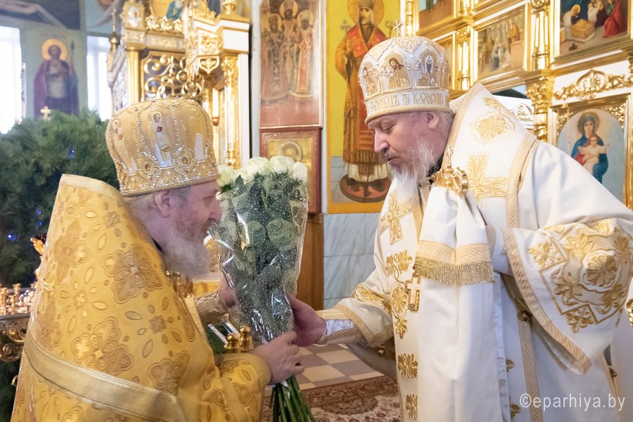 По доброй традиции 3 января 2020г., в день своего рождения, Высокопреосвященнейший Стефан, архиепископ Гомельский и Жлобинский посетил Покровский храм аг. Корма на территории Иоанно-Кормянского женского монастыря, чтобы совершить Божественную литургию, которую предворял акафист у мощей святого праведного Иоанна Кормянского. Высокопреосвященнейшему сослужили: епископ Светлогорский Амвросий, викарий Гомельской епархии, секретарь Гомельской епархии протоиерей Георгий Алампиев, благочинные округов Гомельской епархии, председатели епархиальных отделов, настоятели приходов и духовенство епархии. За богослужением молились игуменьи монастырей Гомельской епархии: Иоанна (Ярец) с сестрами Свято-Успенского женского монастыря д. Казимирово, Вера (Афонькина) с сестрами Свято-Тихвинского женского монастыря г.Гомеля и старшая монахиня Архелая (Новикова) с сестрами Иоанно-Кормянского женского монастыря. В завершении Литургии Владыка возглавил чин славления святителю Петру, митрополиту Московскому и всея Руси чудотворцу, день памяти которого почитается Православной Церковью 3 января. По окончании Литургии Преосвященный Амвросий, епископ Светлогорский, викарий Гомельской епархии от лица духовенства поздравил Владыку Стефана с Днем Рождения. В ответном слове Высокопреосвященнейший Стефан поблагодарил всех, кто разделил с ним молитву. |