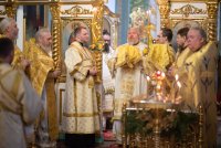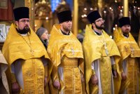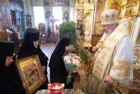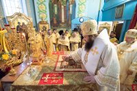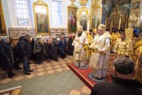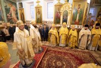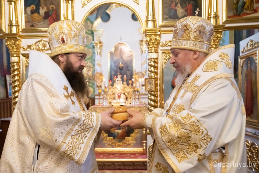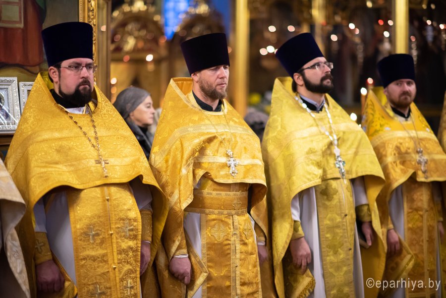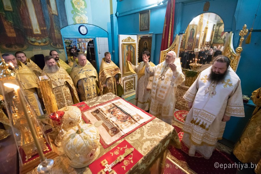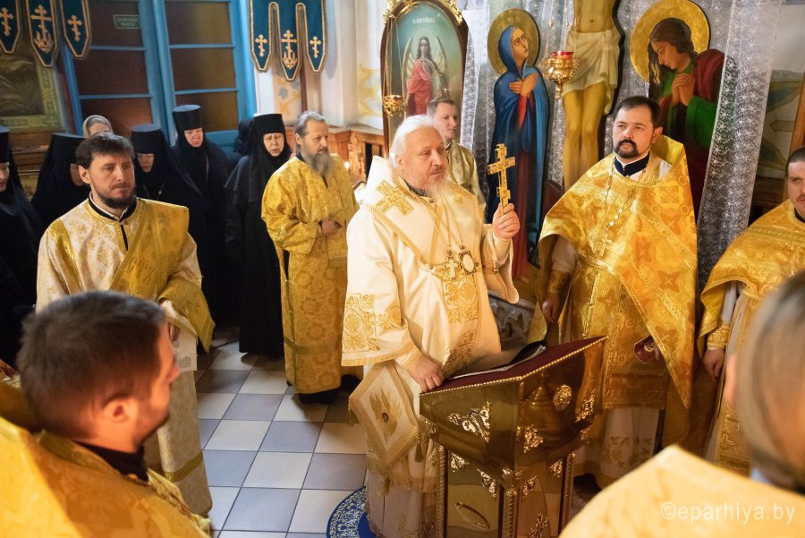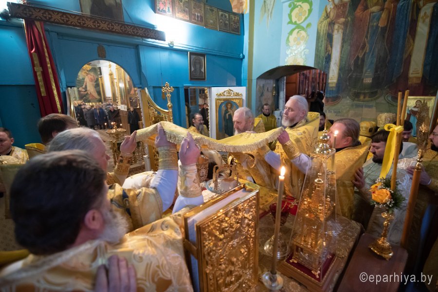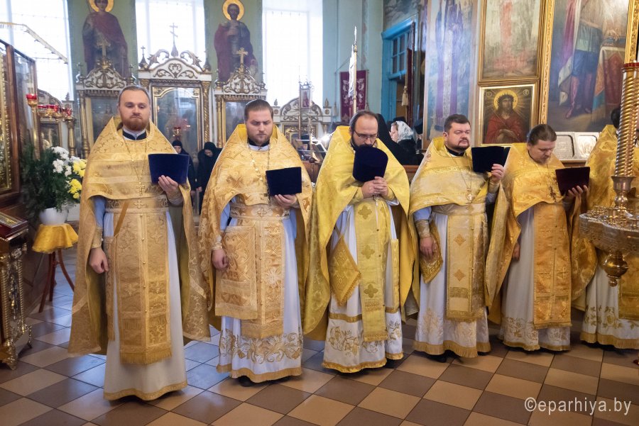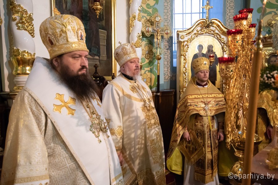 По доброй традиции 3 января 2020г., в день своего рождения, Высокопреосвященнейший Стефан, архиепископ Гомельский и Жлобинский посетил Покровский храм аг. Корма на территории Иоанно-Кормянского женского монастыря, чтобы совершить Божественную литургию, которую предворял акафист у мощей святого праведного Иоанна Кормянского. Высокопреосвященнейшему сослужили: епископ Светлогорский Амвросий, викарий Гомельской епархии, секретарь Гомельской епархии протоиерей Георгий Алампиев, благочинные округов Гомельской епархии, председатели епархиальных отделов, настоятели приходов и духовенство епархии. За богослужением молились игуменьи монастырей Гомельской епархии: Иоанна (Ярец) с сестрами Свято-Успенского женского монастыря д. Казимирово, Вера (Афонькина) с сестрами Свято-Тихвинского женского монастыря г.Гомеля и старшая монахиня Архелая (Новикова) с сестрами Иоанно-Кормянского женского монастыря. В завершении Литургии Владыка возглавил чин славления святителю Петру, митрополиту Московскому и всея Руси чудотворцу, день памяти которого почитается Православной Церковью 3 января. По окончании Литургии Преосвященный Амвросий, епископ Светлогорский, викарий Гомельской епархии от лица духовенства поздравил Владыку Стефана с Днем Рождения. В ответном слове Высокопреосвященнейший Стефан поблагодарил всех, кто разделил с ним молитву. |