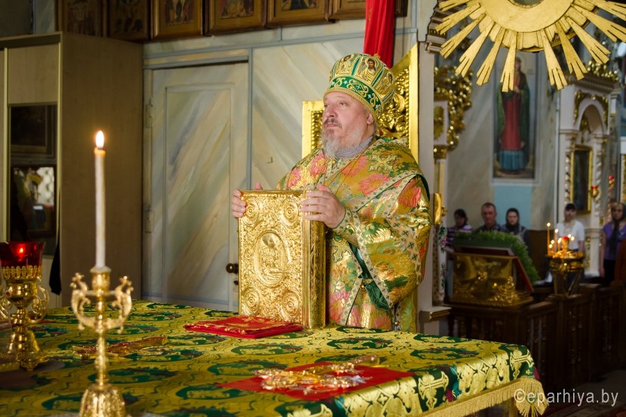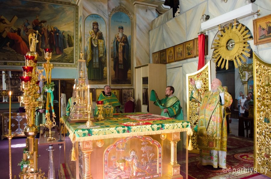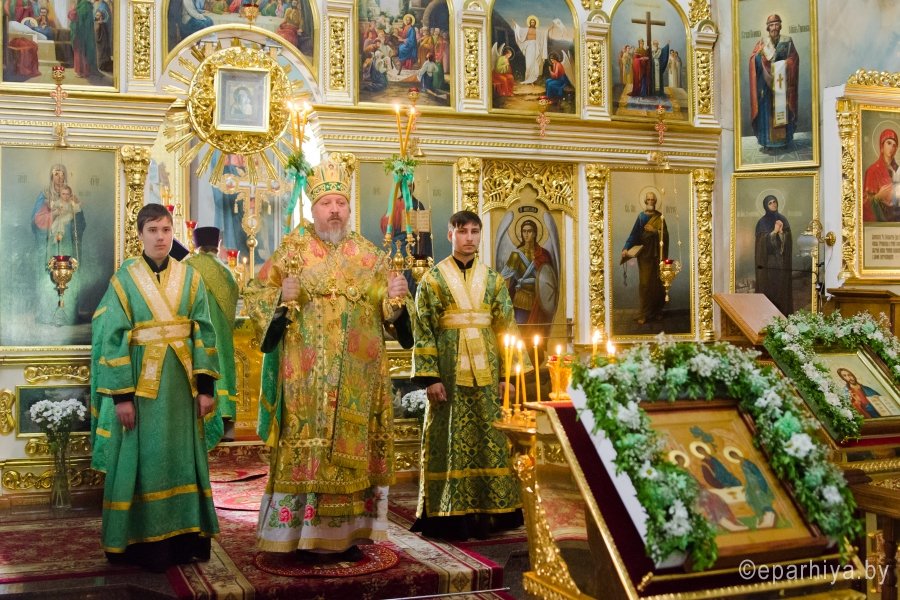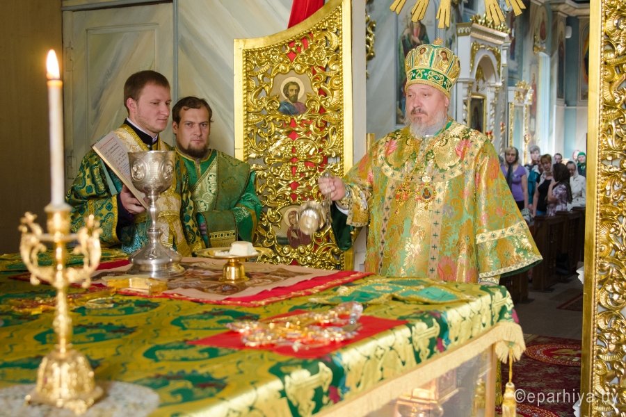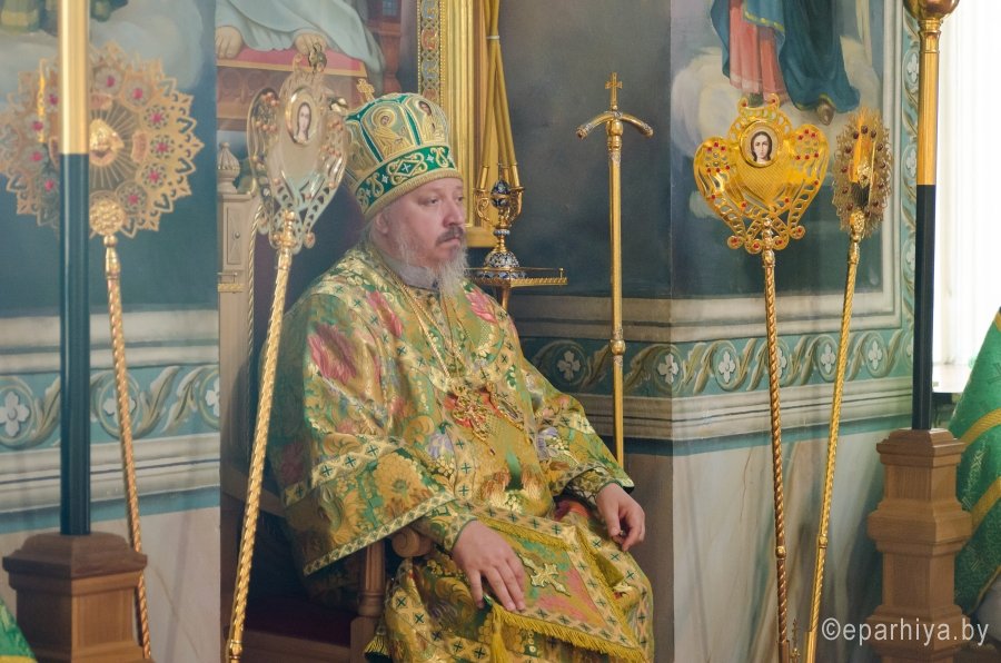 6 июня 2015г., в день отдания праздника Пятидесятницы, Преосвященнейший Стефан, в сослужении духовенства собора возглавил Божественную литургию в Свято-Петро-Павловском кафедральном соборе г.Гомеля. По окончании богослужения Владыка обратился к молящимся со словами Архипастырского наставления. |