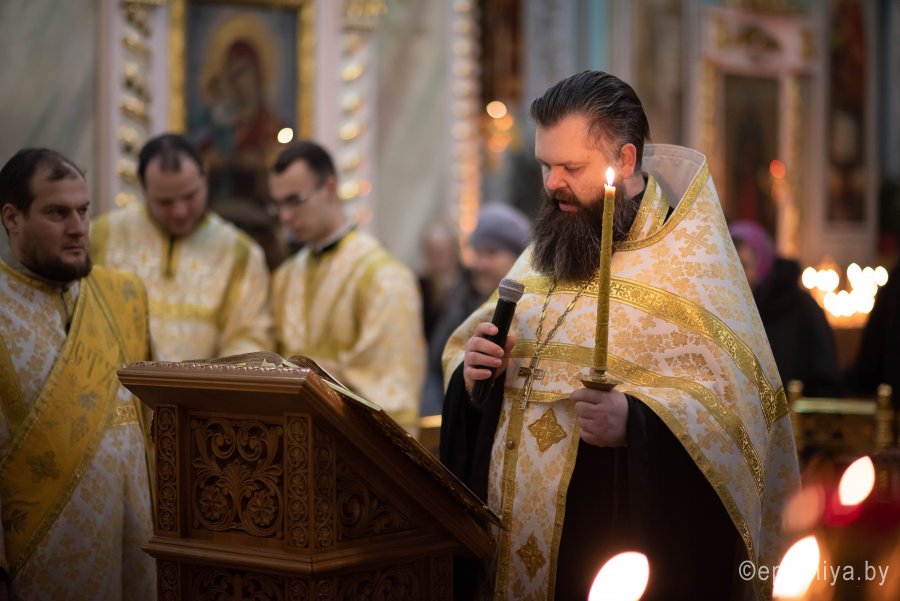 Уставные богослужения в Рождественский сочельник 6 января 2020г. возглавил Высокопреосвященнейший Стефан, архиепископ Гомельский и Жлобинский в Петро-Павловском кафедральном соборе г.Гомеля. Высокопреосвященнейшему сослужили: секретарь Гомельской епархии протоиерей Георгий Алампиев и духовенство собора. По окончании богослужения Владыка поздравил причастников с принятием Святых Христовых Таин и обратился к молящимся со словами Архипастырского назидания |