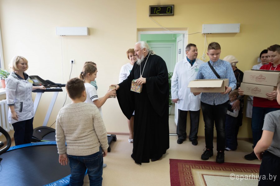 В преддверии светлого праздника Рождества Христова Гомельской епархией проводится множество социально-благотворительных мероприятий. В эти праздничные дни стало доброй традицией посещение Гомельской центральной городской детской клинической поликлиники. Сотрудничество Гомельской епархии и медучреждения длится уже не первый год. Высокопреосвященнейший Стефан, архиепископ Гомельский и Жлобинский совместно с председателем Информационного отдела Гомельской епархии протоиереем Олегом Костромой встретились с руководством поликлиники. В дар медучреждению был передан инвентарь для кабинета реабилитации - массажные столы и другое оборудование. Маленькие пациенты, пришедшие в этот день на прием, получили в подарок от Архиерея сладкие угощения. «Всегда приятно, когда дети, приходя на прием улыбаются и понимают, что могут получить качественную реабилитацию» – сказала слова благодарности главный врач Татьяна Ивановна Солодкая. В своей речи Владыка Стефан отметил, что творя дела добра, мы уподобляемся волхвам, и так же как они более двух тысяч лет назад несли свои дары новорожденному Младенцу, мы творя дела милосердия приносим свои дары Христу. |