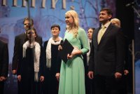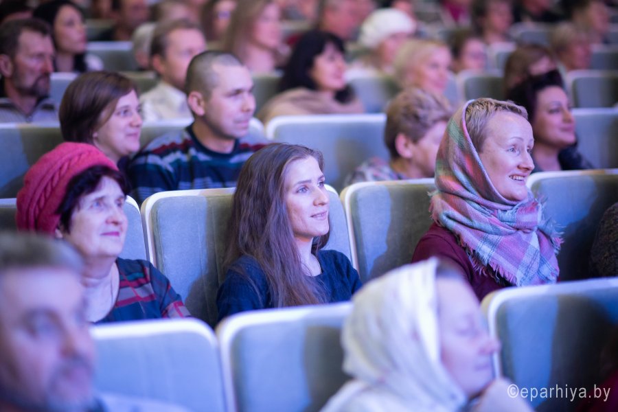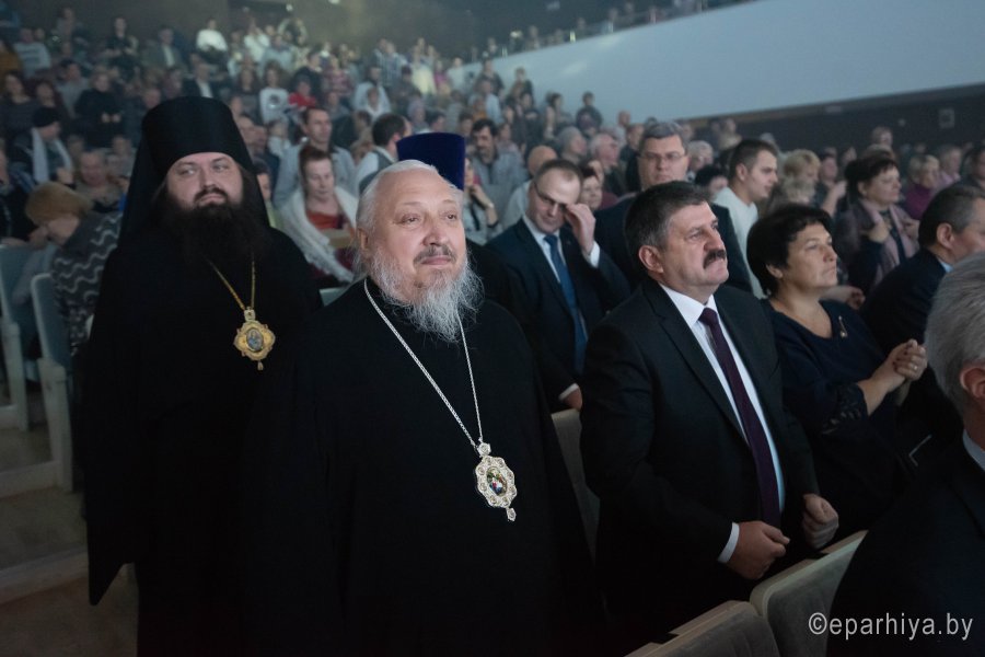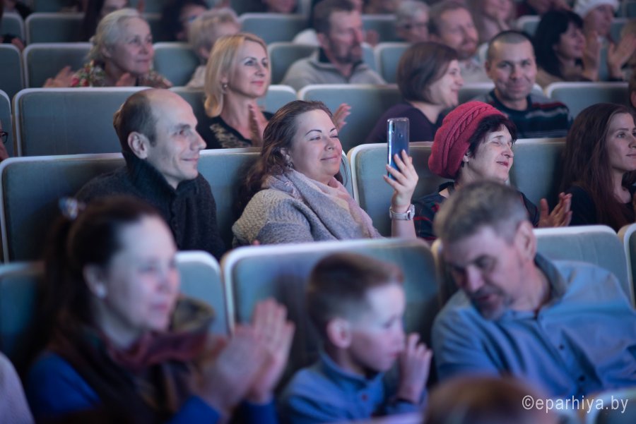 Большой юбилейный концерт прошёл в Гомельском областном общественно-культурном центре. Уже много лет подряд Рождественский концерт собирает огромное количество зрителей, а в год, когда Гомельская епархия празднует свой юбилей, зрительный зал не смог уместить всех желающих. Словами поздравления с Рождеством Христовым открыл праздничное мероприятие Высокопреосвященнейший Стефан, архиепископ Гомельский и Жлобинский. Владыка призвал всех собравшихся вспомнить события, произошедшие более двух тысяч лет назад, и пожелал всем хранить в своих сердцах свет радости - радости Рождества Христова. Почетными гостями концерта стали: преосвященный Амвросий епископ светлогорский, викарий Гомельской епархии, председатель Гомельского облисполкома Соловей Геннадий Михайлович, председатель Гомельского горисполкома Кириченко Пётр Алексеевич, представители администрации города, а также представители других религиозных конфессий. Праздничным настроением зрительный зал наполнили артисты и творческие коллективы города и области, а особым подарком стали концертные номера исполненные с сурдопереводом. |