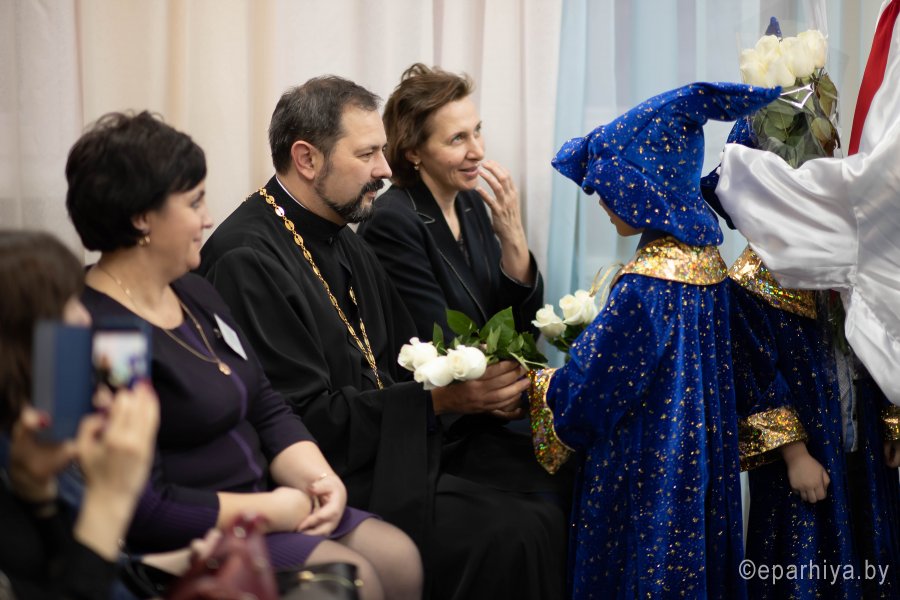 10 января в ГУО «Ясли-сад №170 г.Гомеля» состоялся методический семинар «Путешествие в Рождество» для учреждений дошкольного образования, реализующих инновационный проект «Внедрение модели формирования культуры межличностных отношений дошкольников и младших школьников на православных традициях и ценностях белорусского народы в условиях государственного двуязычия». Семинар открылся приветственным словом архиепископа Гомельского и Жлобинского Стефана к участникам мероприятия. Далее был организован мастер-класс по росписи рождественских пряников на базе УО «Гомельский государственный профессионально-технический колледж кулинарии», который также является инновационной площадкой по духовно-нравственному воспитанию. В рамках семинара с сообщением о значении и символизме иконы Рождества Христова выступил председатель отдела религиозного образования и катехизции Гомельской епархии протоиерей Артемий Кривицкий, о православных и языческих традициях праздника рассказал иерей Вячеслав Сердюков, клирик прихода храма иконы Божией Матери «Скоропослушница» в г.Гомеле. Для участников семинара была проведена игра «Сакрэты беларускай мовы», которую представила диктор Гомельского телевидения Светлана Князева, а игру «Покажи Рождество» провела педагог организатор ГУО «Средняя школа №12 г.Гомеля» Ирина Тишкова. В рамках открытого микрофона, с рассказом о совместных просветительских мероприятиях, выступила координатор отдела религиозного образования и катехизации Гомельской епархии Н.А. Босовец. В ходе семинара прозвучали колядные песнопения хора Свято-Никольского мужского монастыря в г.Гомеле, рождественские мелодии ансамбля скрипачей ГУО «Средняя школа №30 г.Гомеля». Завершился семинар Рождественским утренником воспитанников ГУО «Ясли-сад №170 г.Гомеля». |